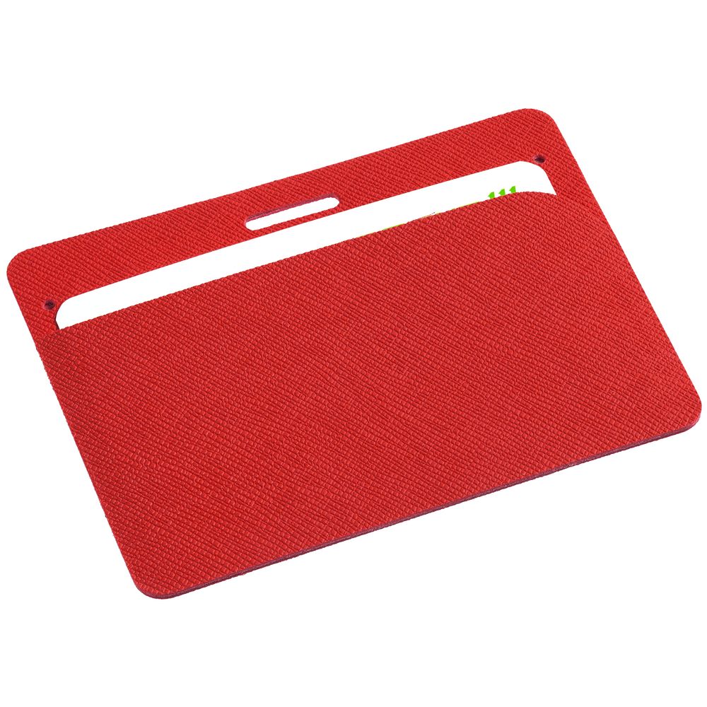 Чехол для карточки с пластиковым окошком из искусственного материала, имитирующего сафьяновую кожу.