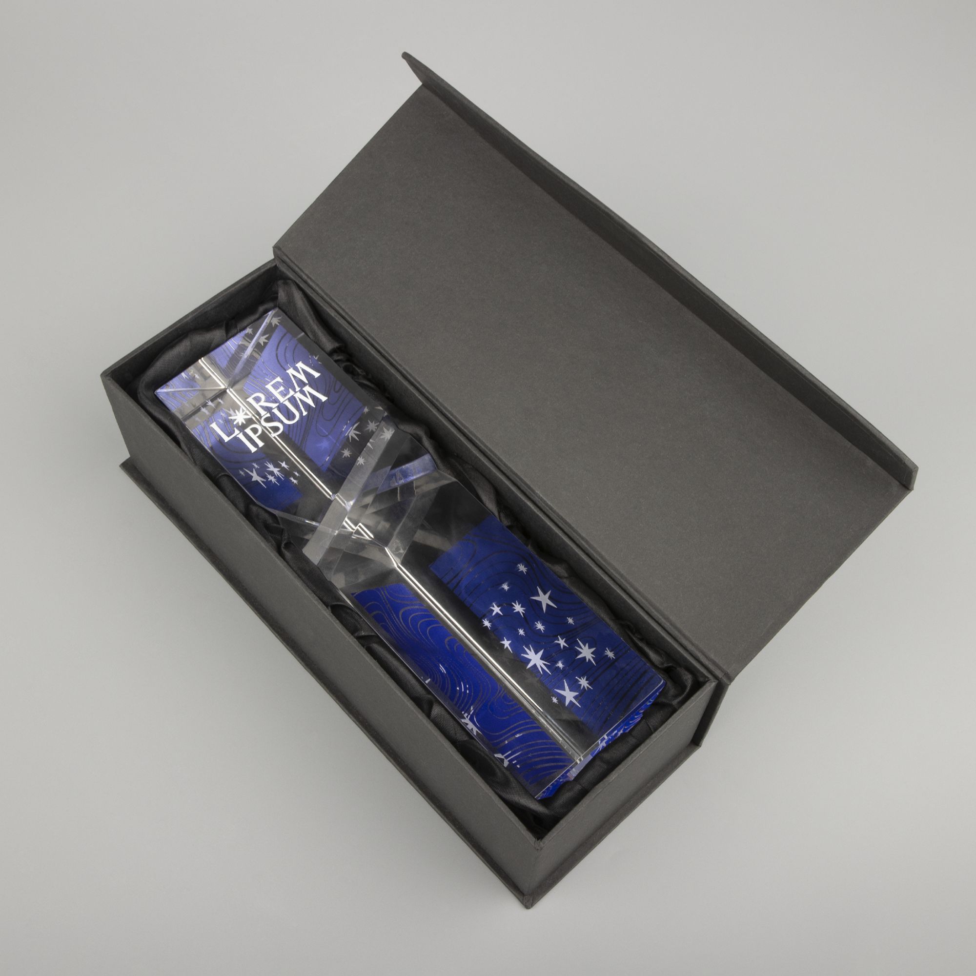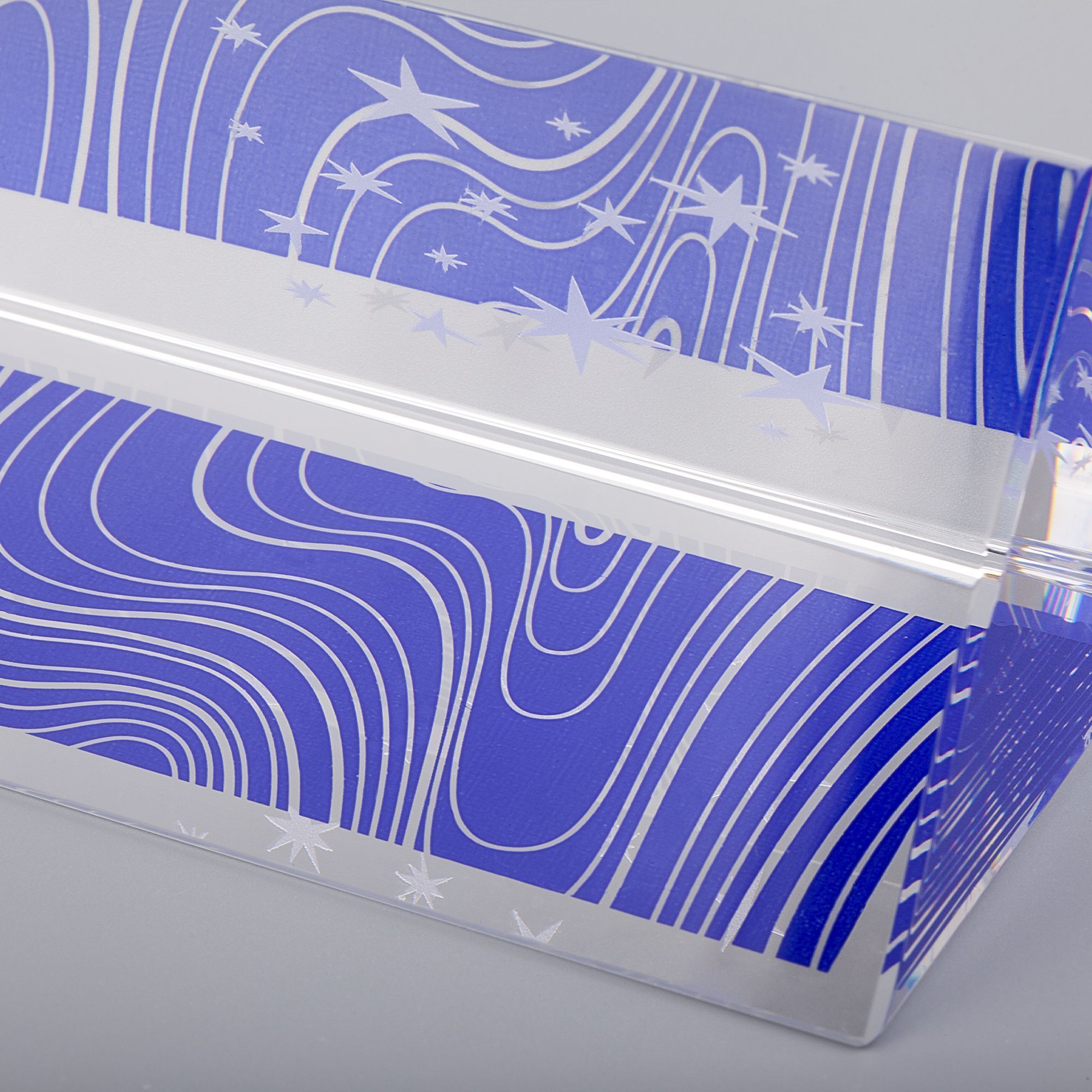 Стела изготовлена из стекла К9, в основе которого лежит оптическое боросиликатное стекло. Эту марку стекла отличает низкий процент посторонних включений, высокий показатель преломления и высокая прозрачность — идеальные качества для изготовления наград премиального уровня.Поставляется в подарочной коробке.