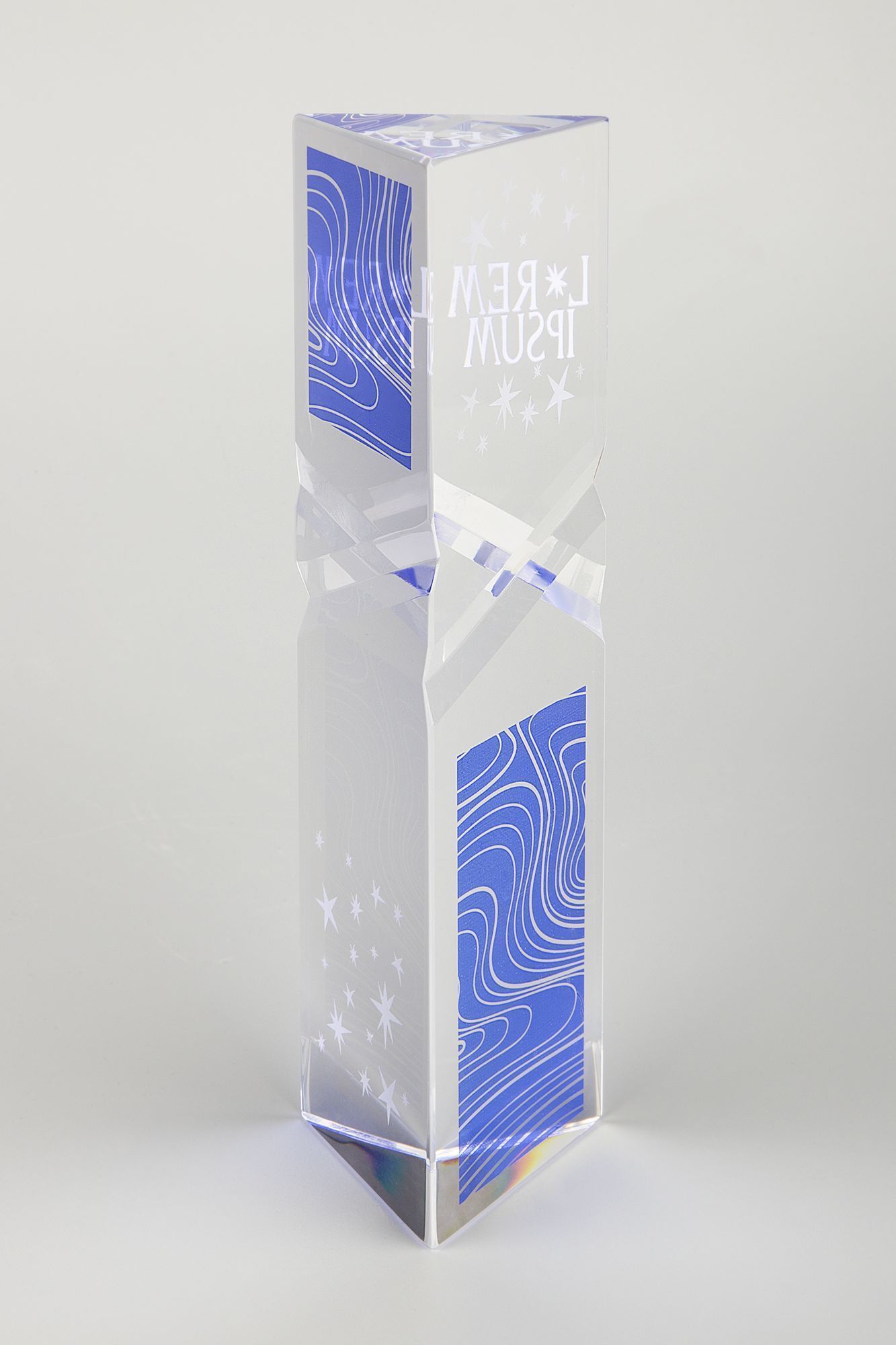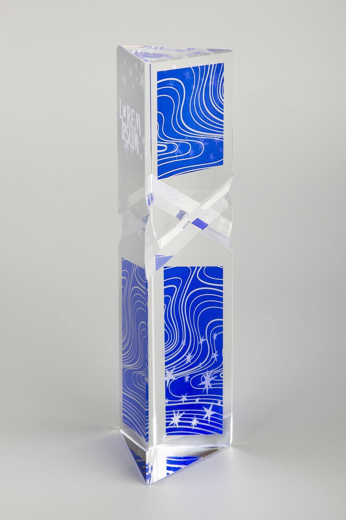Эффектная стела-башня Prismart — тот случай, когда гордиться хочется не только достижениями, но и самой наградой! Благодаря необычному исполнению она создает своеобразную оптическую иллюзию: треугольные вырезы посередине будто делят саму стелу пополам и завораживающе отражаются в гранях.