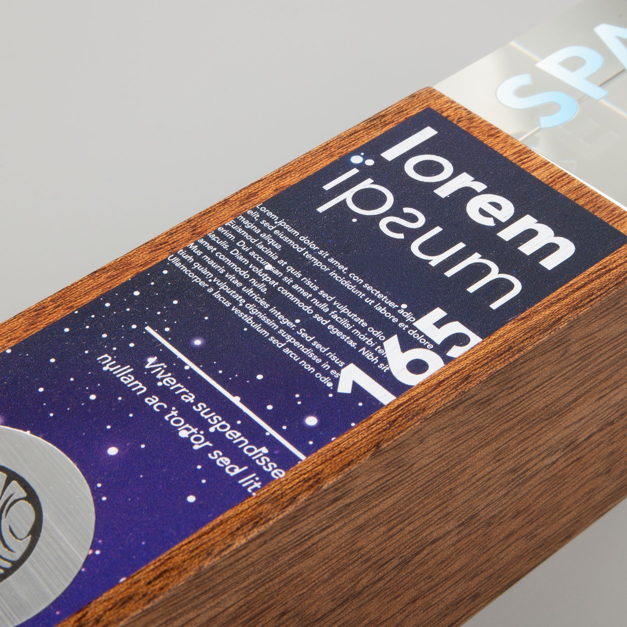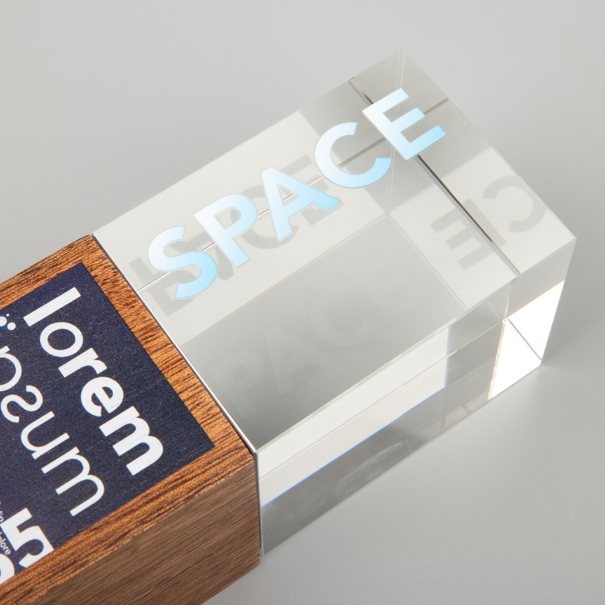 Навершие изготовлено из стекла К9, в основе которого лежит оптическое боросиликатное стекло. Эту марку стекла отличает низкий процент посторонних включений, высокий показатель преломления и высокая прозрачность — идеальные качества для изготовления наград премиального уровня.