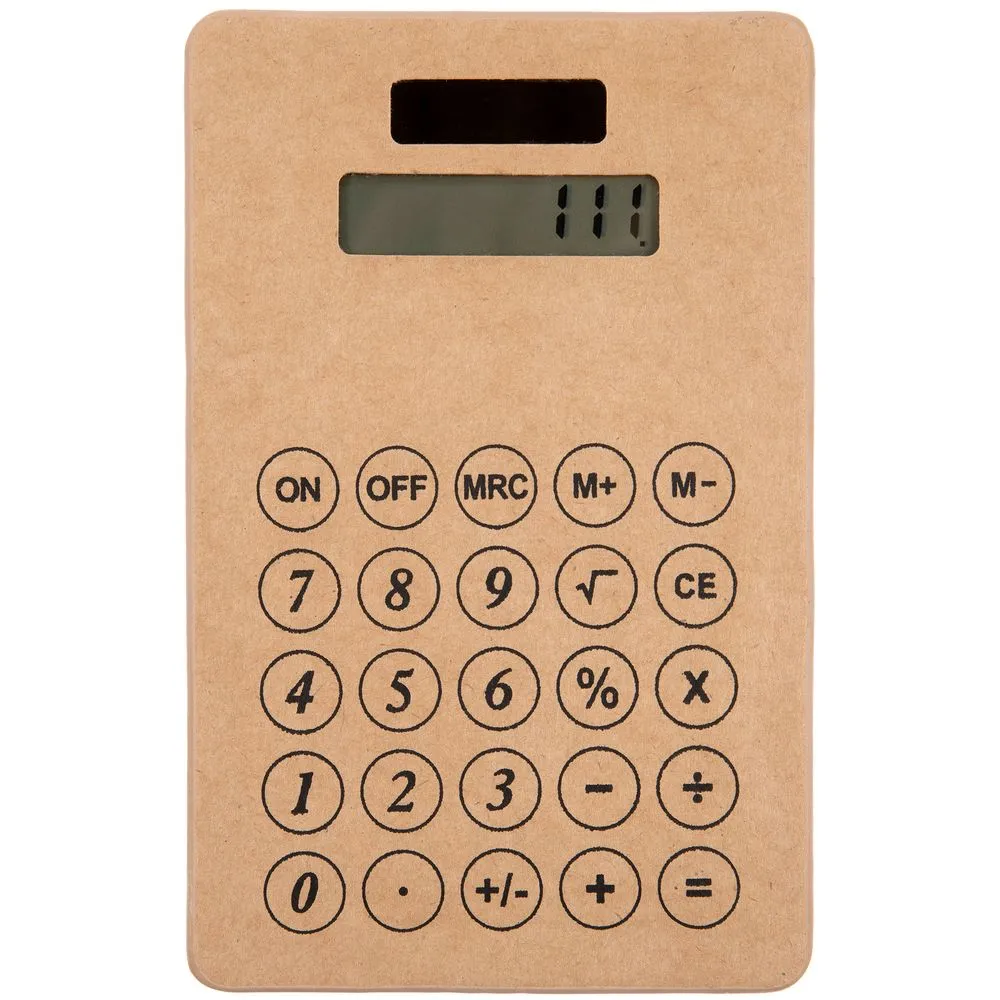 Компактный калькулятор из крафтового картона с крупными клавишами.