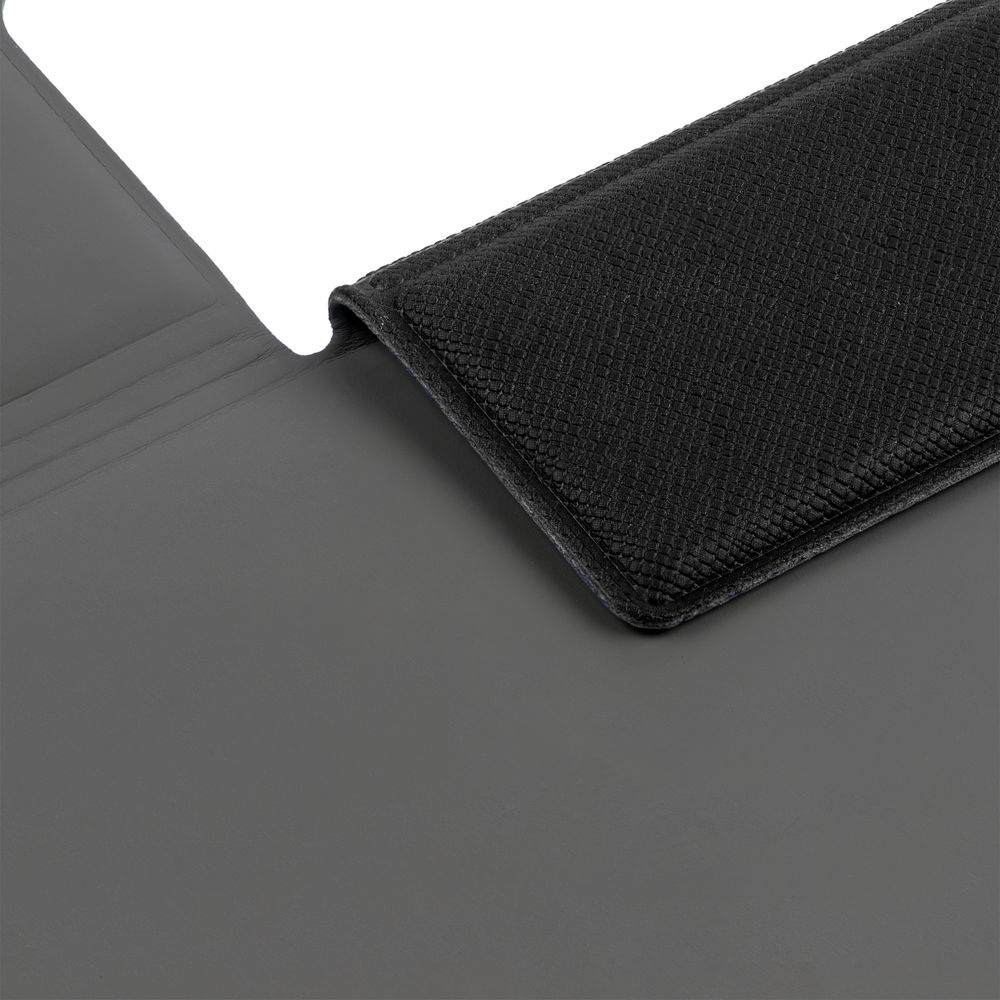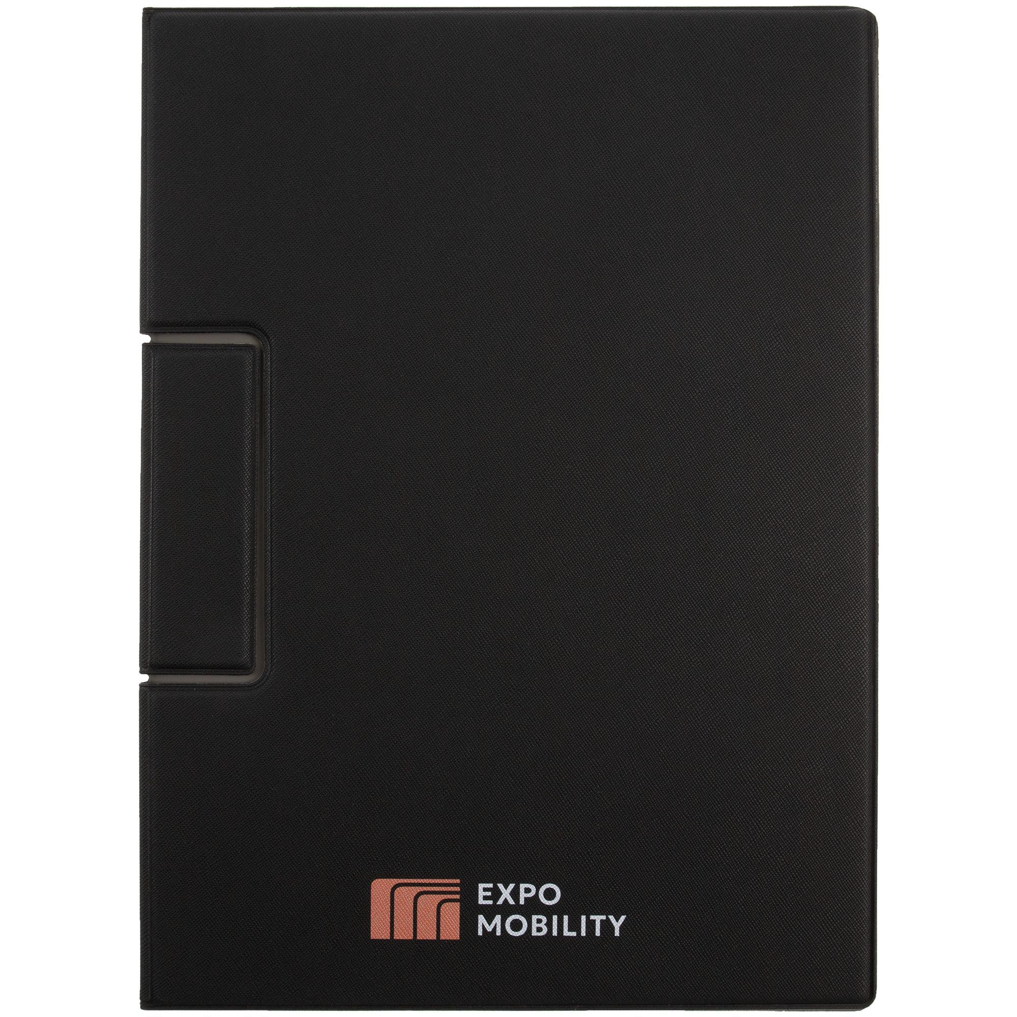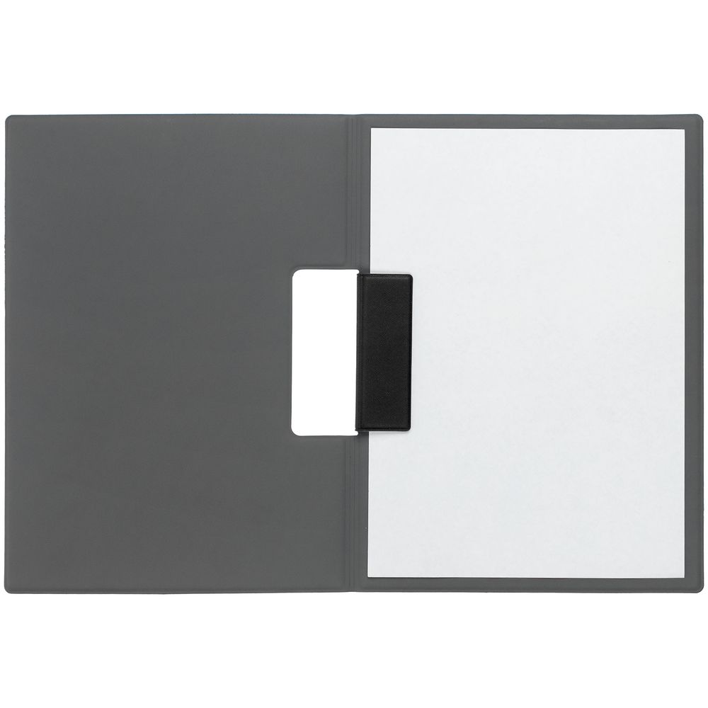 Папку можно использовать в стандартном вертикальном формате или перегнуть обложку и поставить в качестве таблички горизонтально. Магнитный клип удерживает до 10 листов.