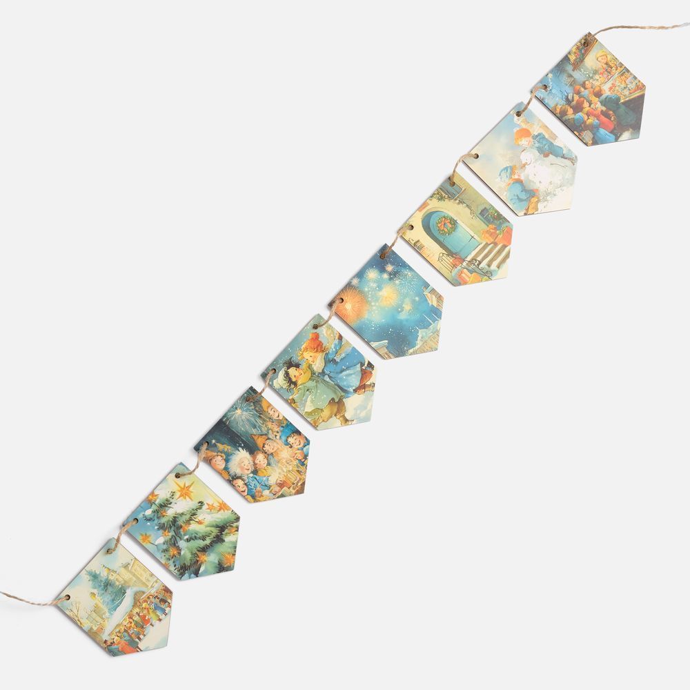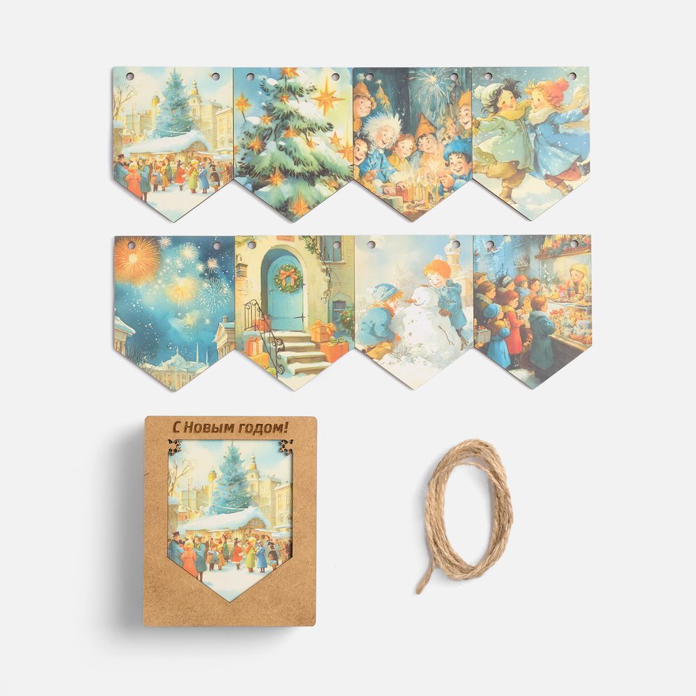 Гирлянда «Праздничные мотивы» станет прекрасным элементом новогоднего декора: ею можно украсить елку, камин, стену, окно или рабочее пространство. Благодаря прочной основе из дерева и плотному джутовому шнуру она прослужит не один сезон.8 флажков с джутовой веревочкой упакованы в подарочную шкатулку для хранения.