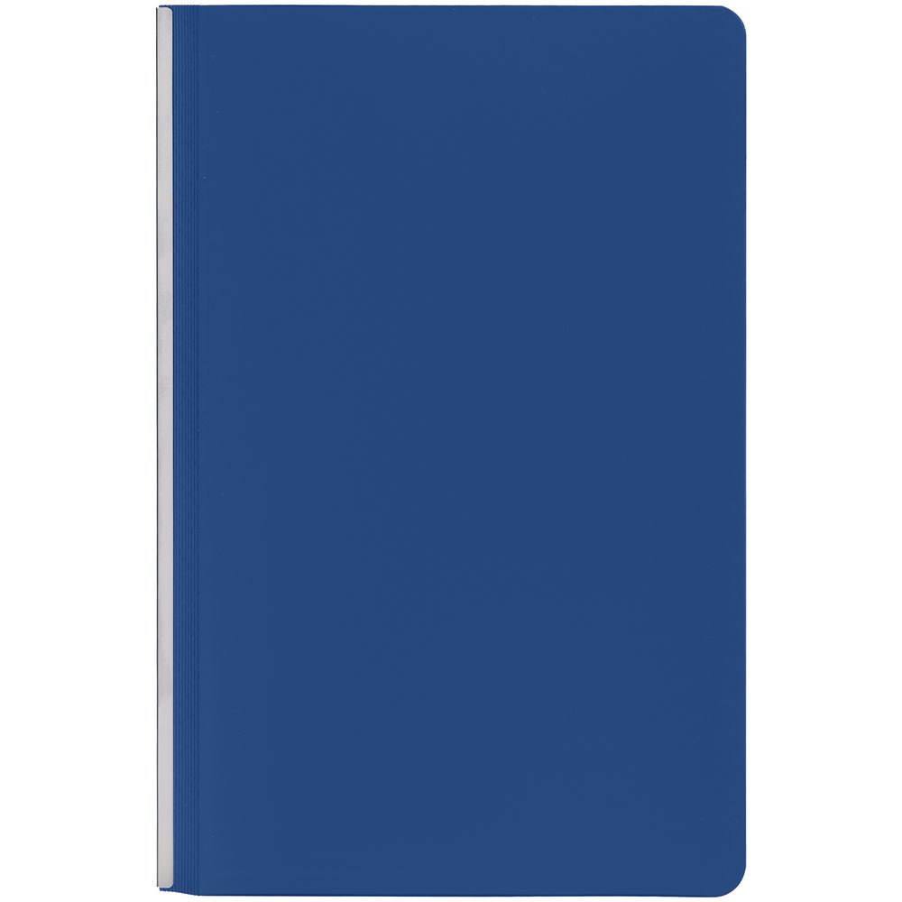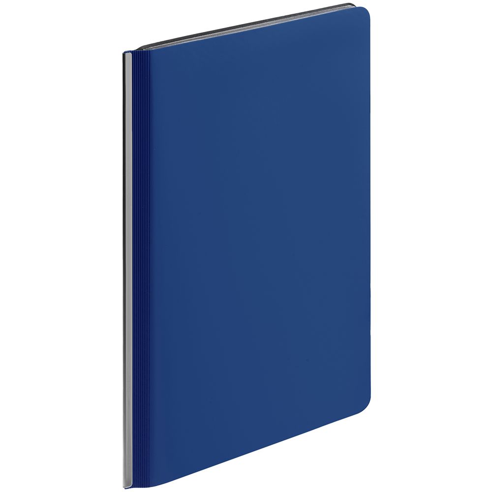 Ежедневник с гибкой обложкой и металлическим корешком, выполнен из материала Soft Touch Ultra, синий НН, дополнен серебристым обрезом блока и ляссе.