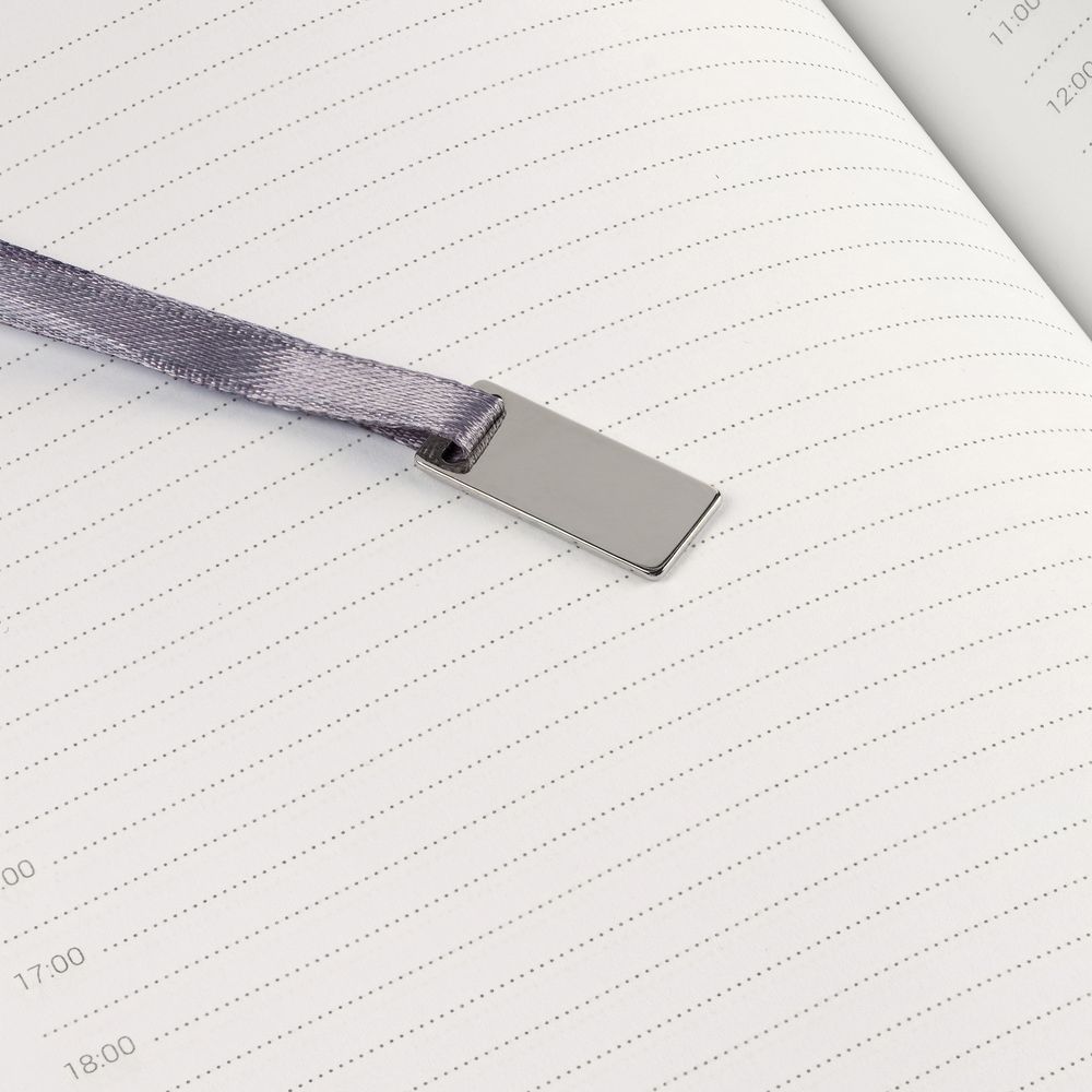 Ежедневник в гибкой суперобложке c карманом на молнии, выполнен из материала Nubuck, темно-синий ХХ. Дополнен капталом и металлической шильдой на ляссе серого цвета.