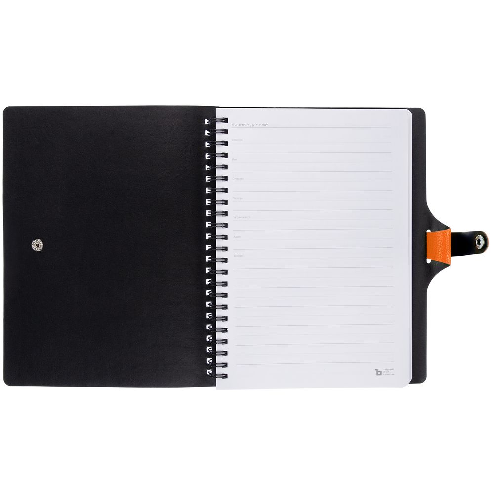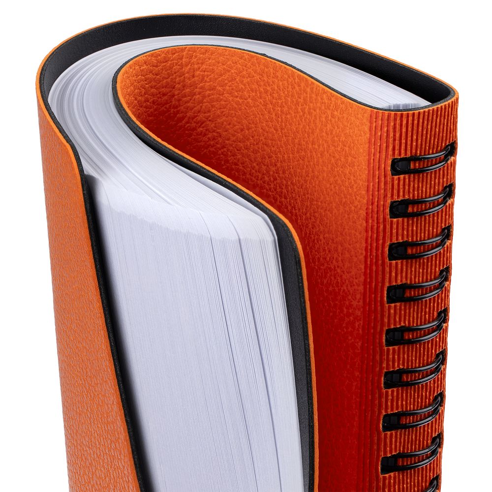 Ежедневник с гибкой обложкой, выполнен из материалов La Fite, оранжевый ОО и Waltz черный АА.
