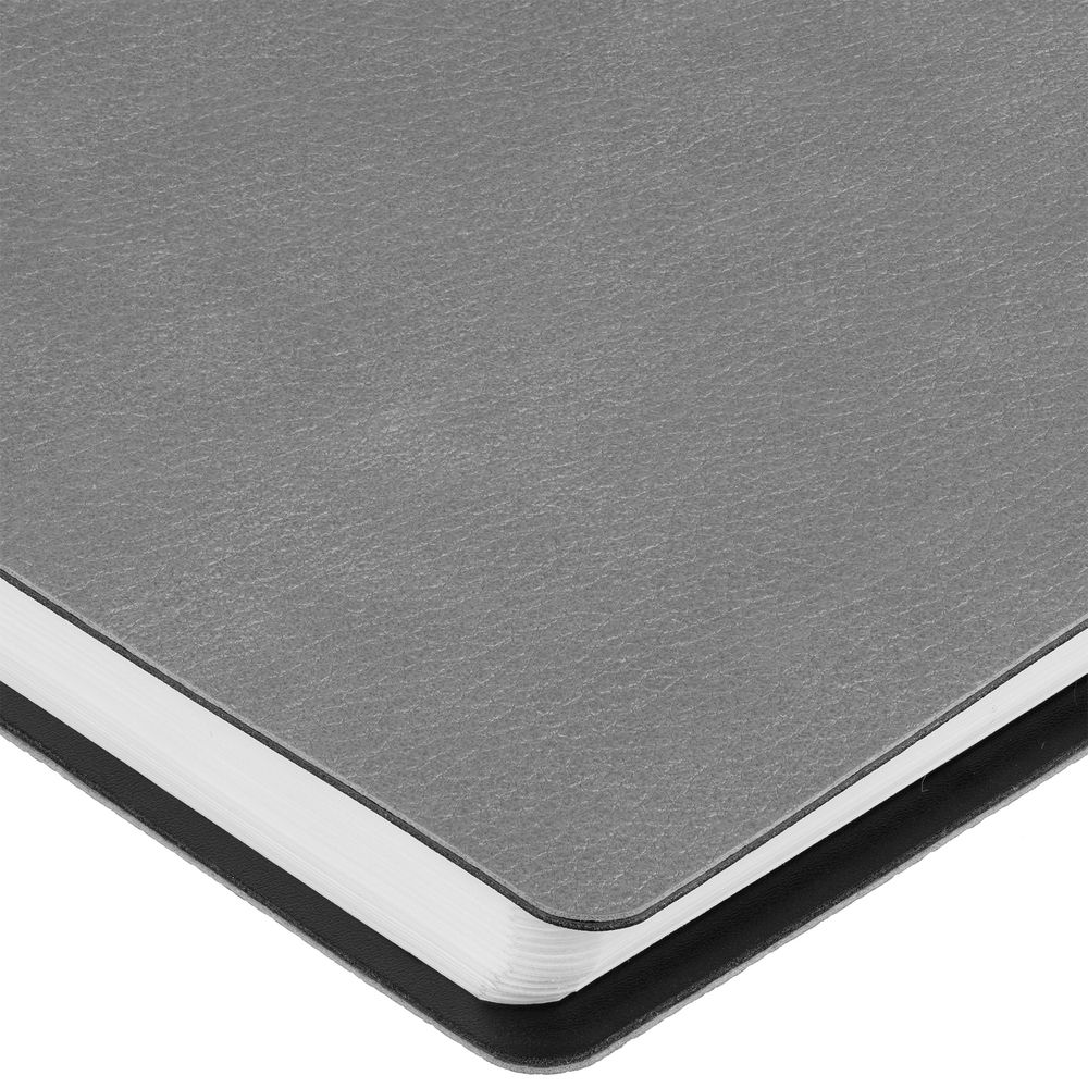 Ежедневник с гибкой обложкой, выполнен из материалов La Fite, серый СС и Waltz черный АА.
