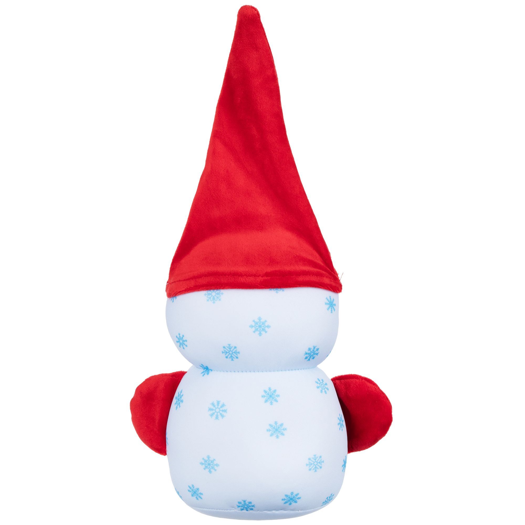 Шапочка и ручки у снеговика сделаны из однотонной красной ткани типа «велюр». Другие цвета выбрать нельзя.