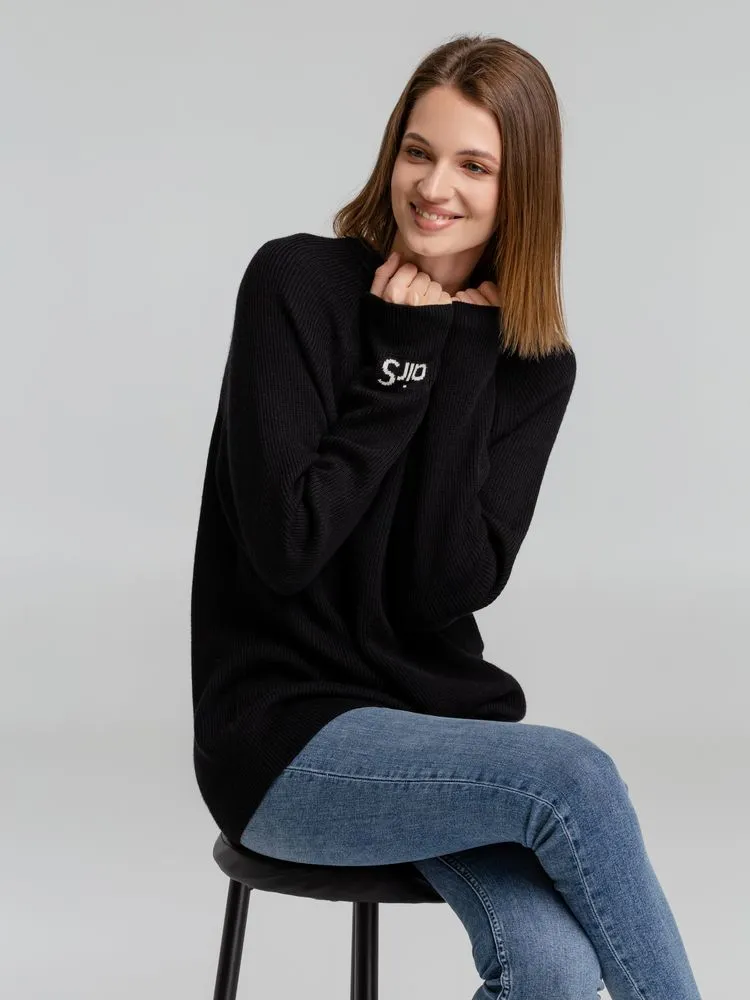 Свитер с вывязанным логотипом в фирменной цветовой гамме.