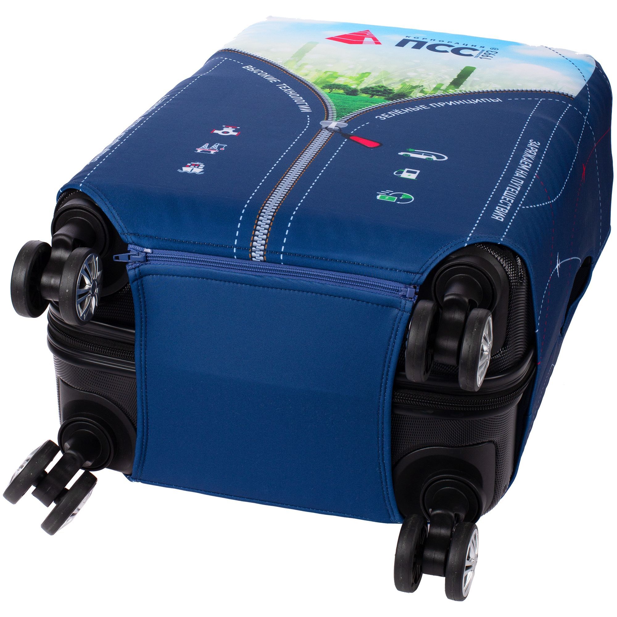 Полноцветная сублимационная печать на чехле входит в стоимость изделия.За дополнительную плату чехол можно упаковать в мешочек из бифлекса с полноцветной печатью. Стоимость мешочка 300 рублей за штуку.Чехол подходит для пластиковых и тканевых чемоданов, сумок. Закрывается на молнию.