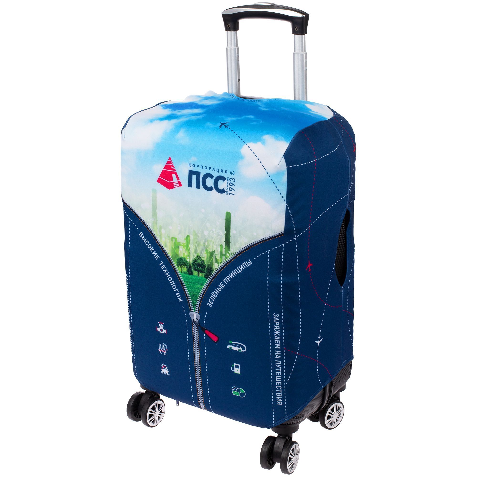 Чехол для чемодана — прекрасный подарок от компаний, связанных с туризмом, путешествиями, переездами и перелетами. Это отличная рекламная поверхность, которая сделает ваше маркетинговое сообщение заметным для тысяч путешественников.Он придает багажу неповторимый вид, поэтому владельцу чемодана будет гораздо проще его узнать. Чехол защищает багаж от вскрытия, а чемодан — от раскрытия при сильном падении. В сложенном виде компактен, занимает минимум места.