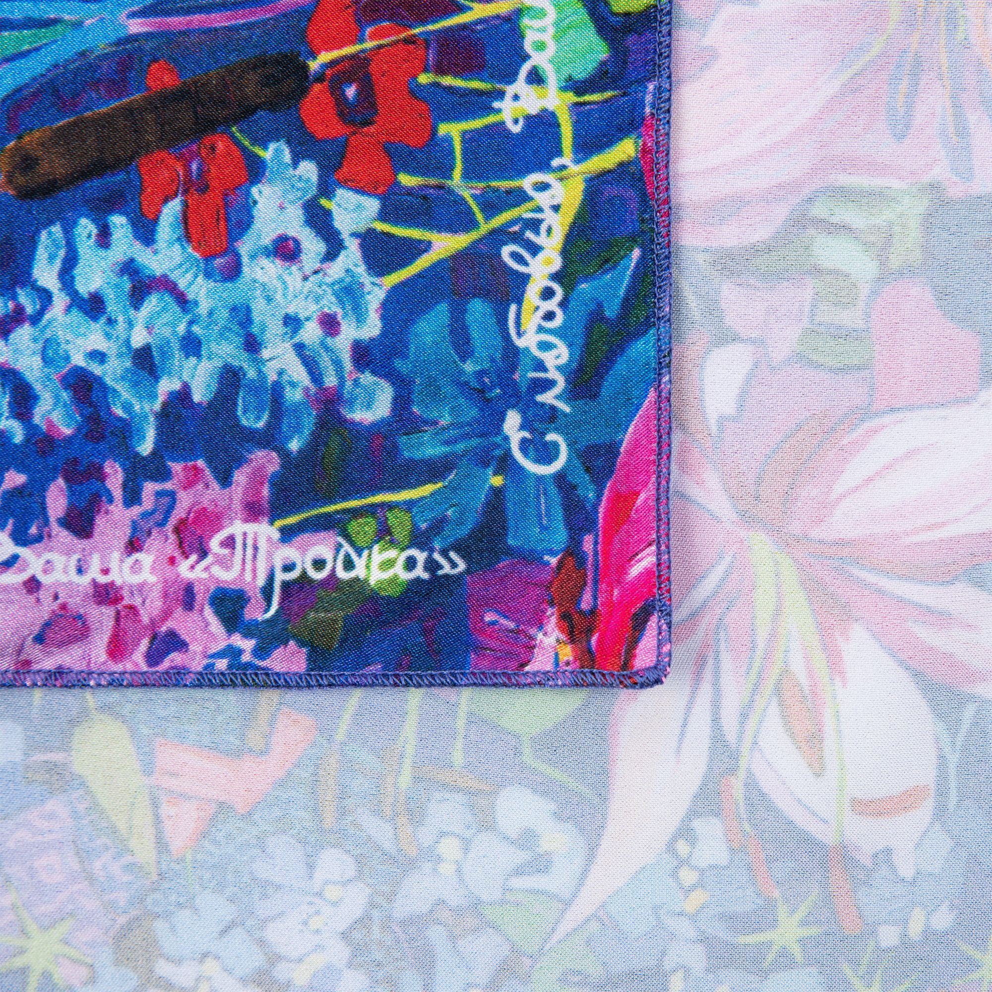 Платок из шармуса, подходящего для сублимационной печати. Края обработаны оверлоком.