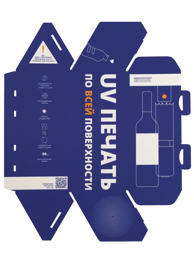 Уникальная возможность оперативно получить коробку с полной запечаткой при небольшом тираже. Коробка изготавливается из микрогофрокартона с белым лайнером на лицевой и изнаночной сторонах.