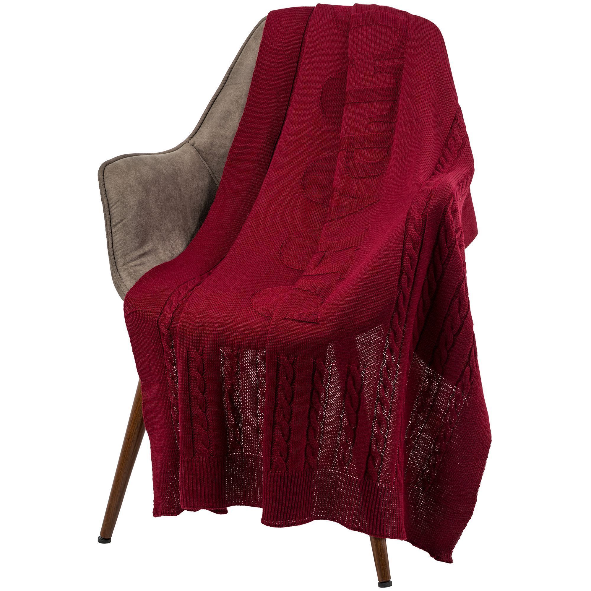Плед с вывязанным логотипом и рельефным узором в фирменном цвете вашей компании.