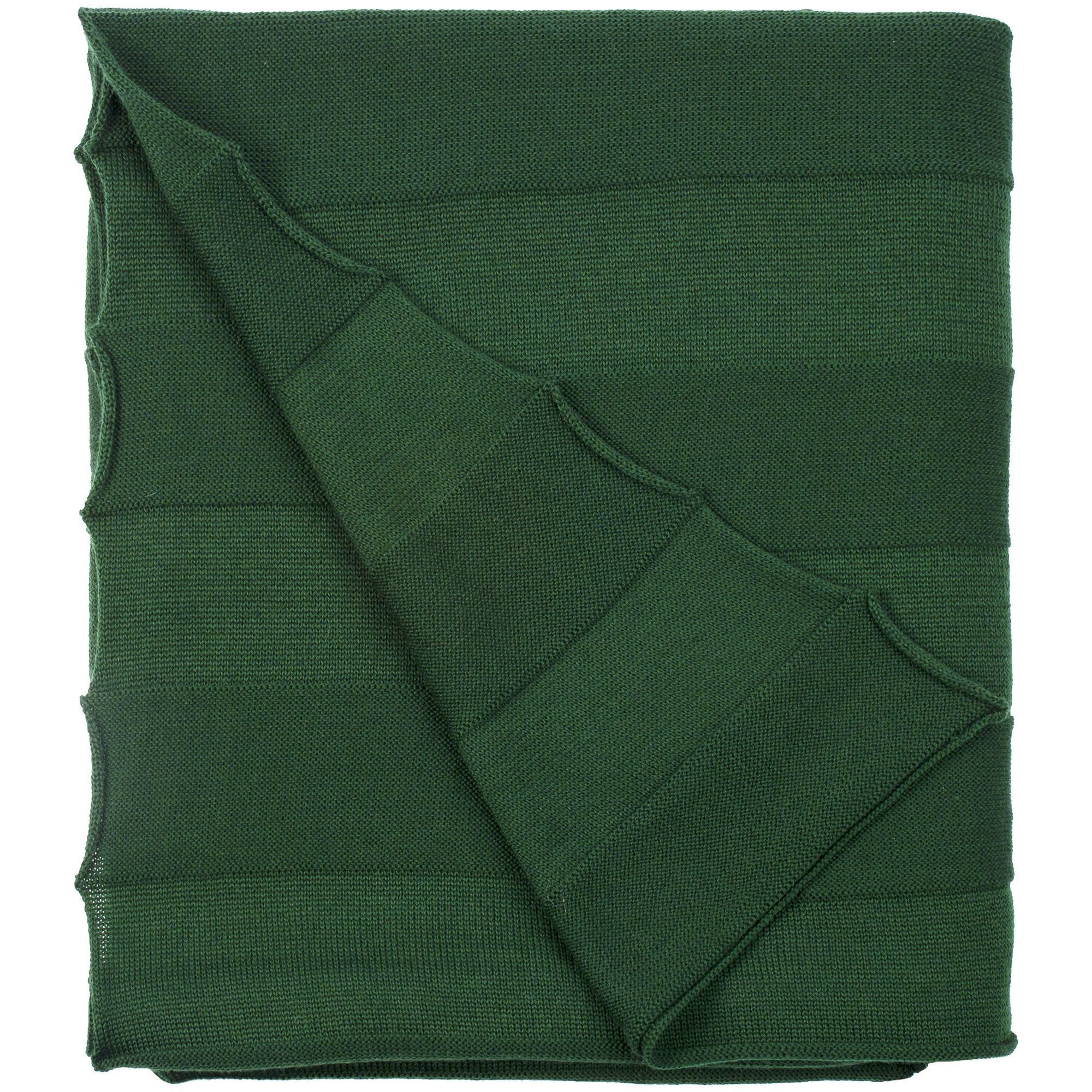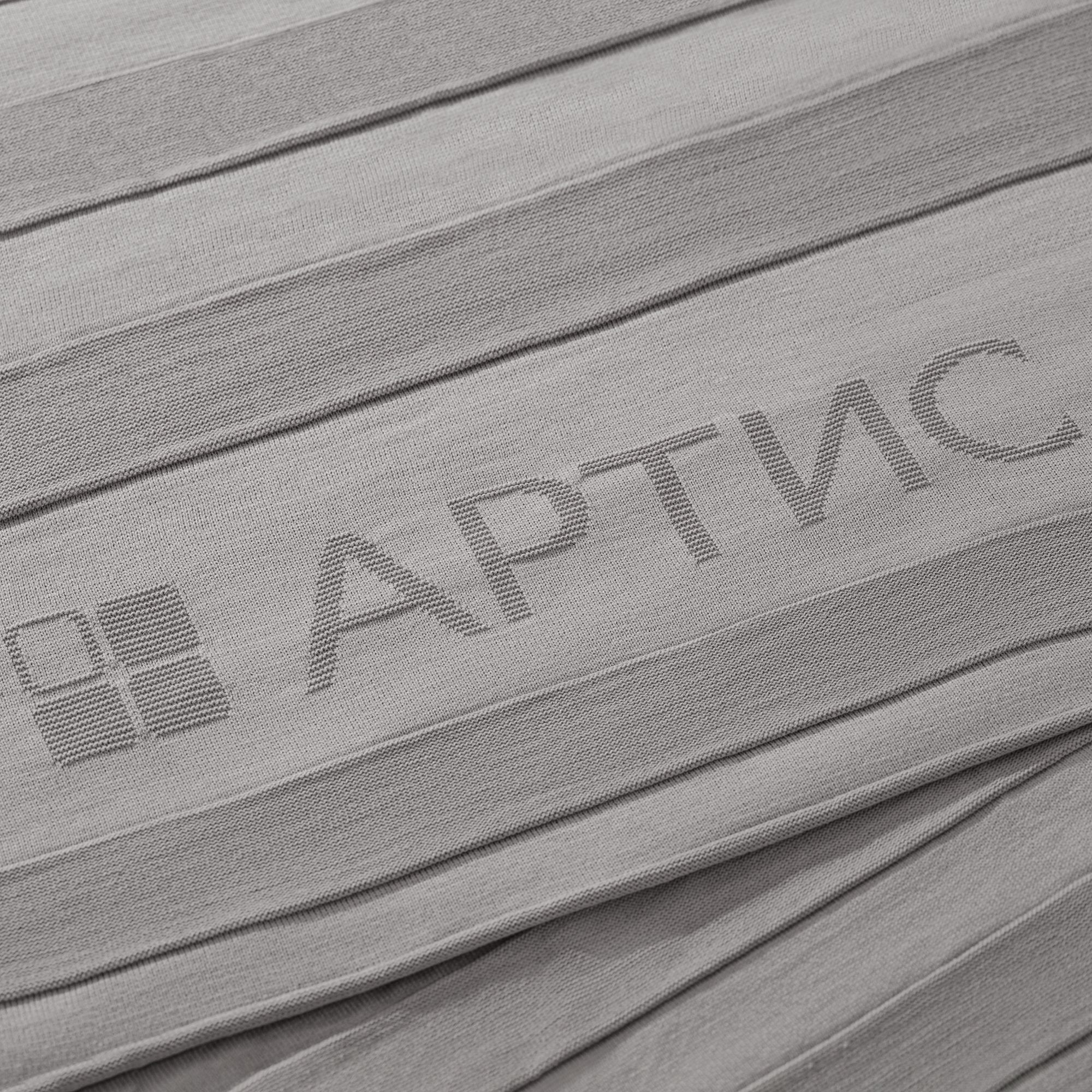 Модель: однотонный плед с фактурной вязкой, которая позволяет сделать его воздушным и объемным. Чередуя различные типы петель на гладком полотне, можно вывязать любую графику — логотип, текст, товарный знак.