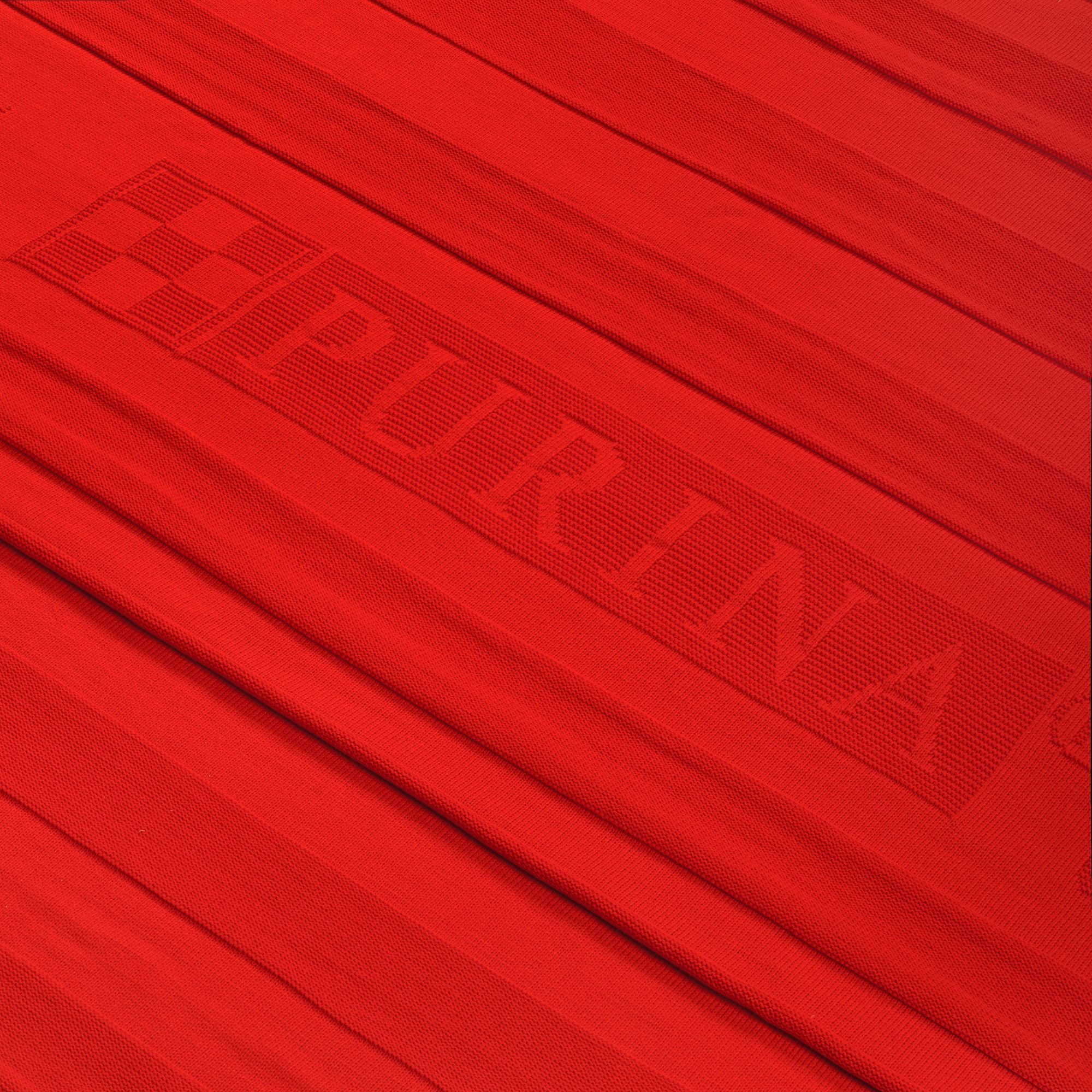 Плед с вывязанным логотипом и рельефным узором в фирменном цвете вашей компании.