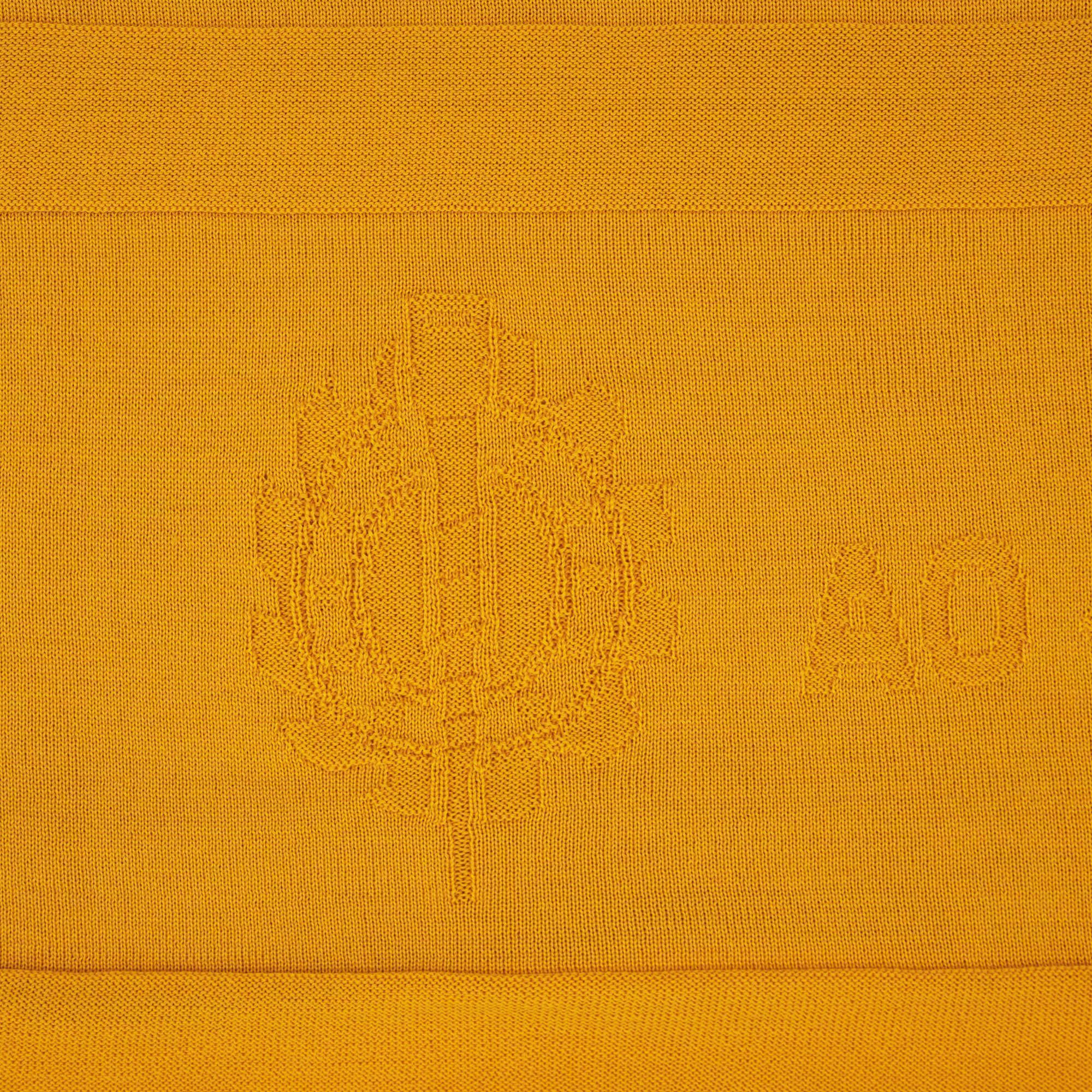 Плед с вывязанным логотипом и рельефным узором в фирменном цвете вашей компании.
