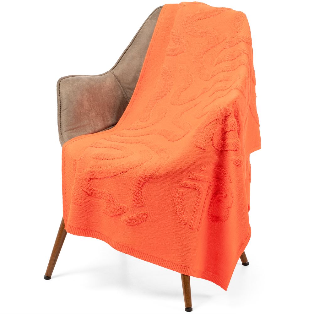 Плед с вывязанным логотипом и рельефным узором в фирменном цвете вашей компании.