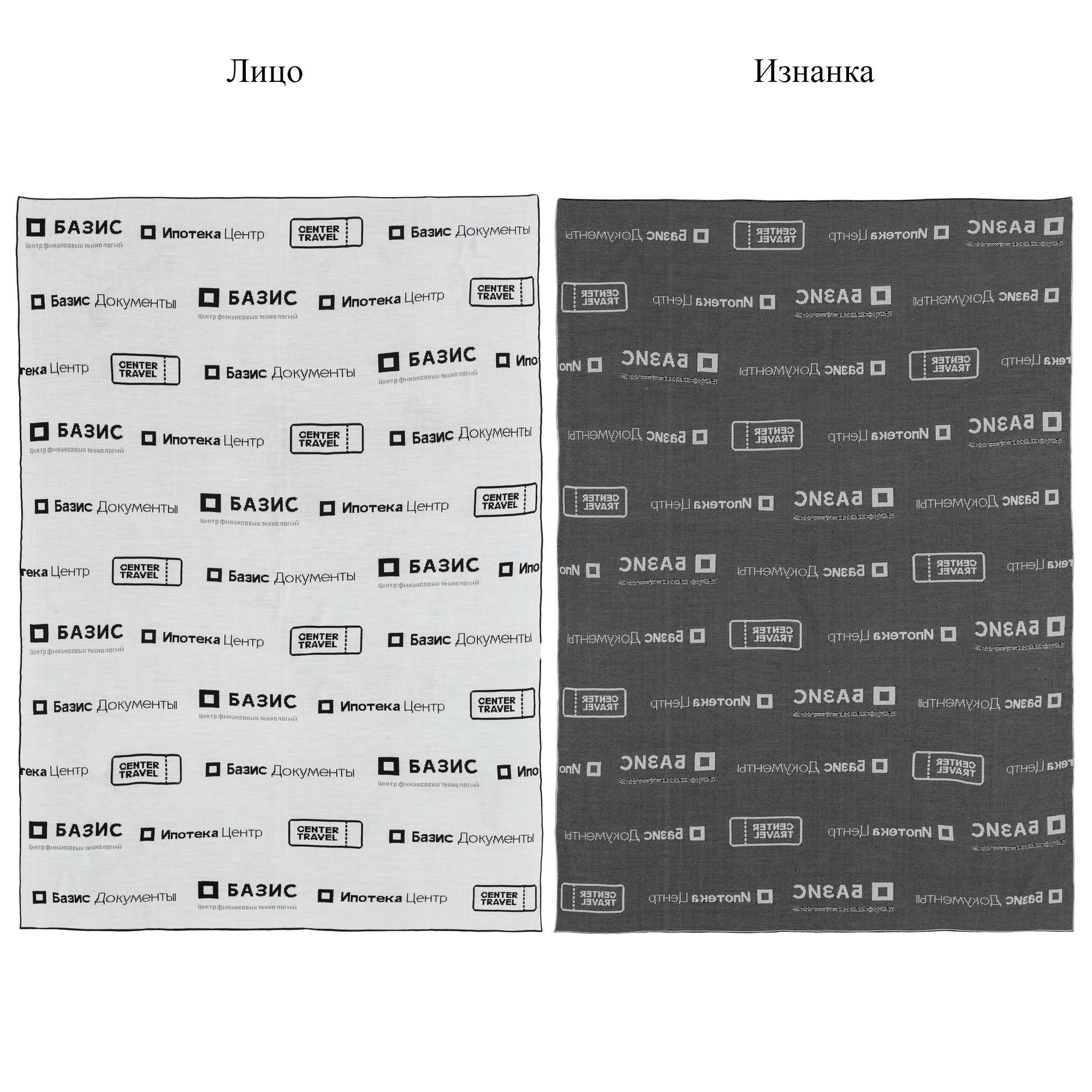 Плед с вывязанным логотипом и индивидуальным рисунком в фирменной цветовой гамме.