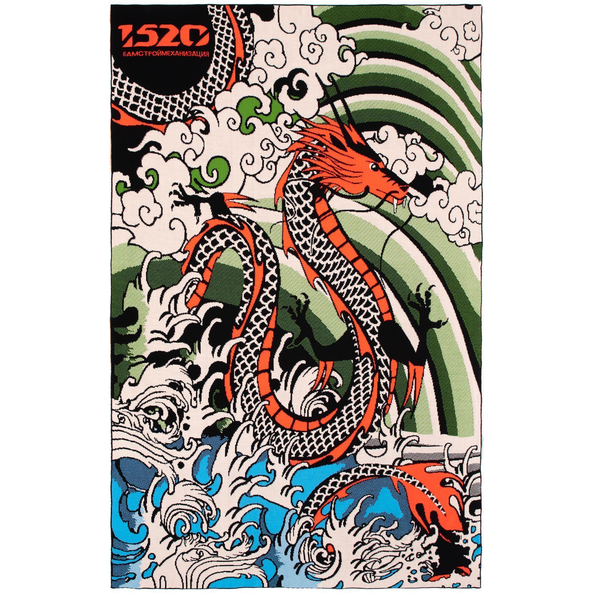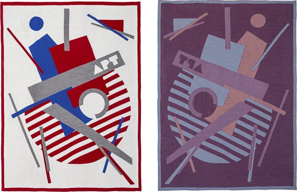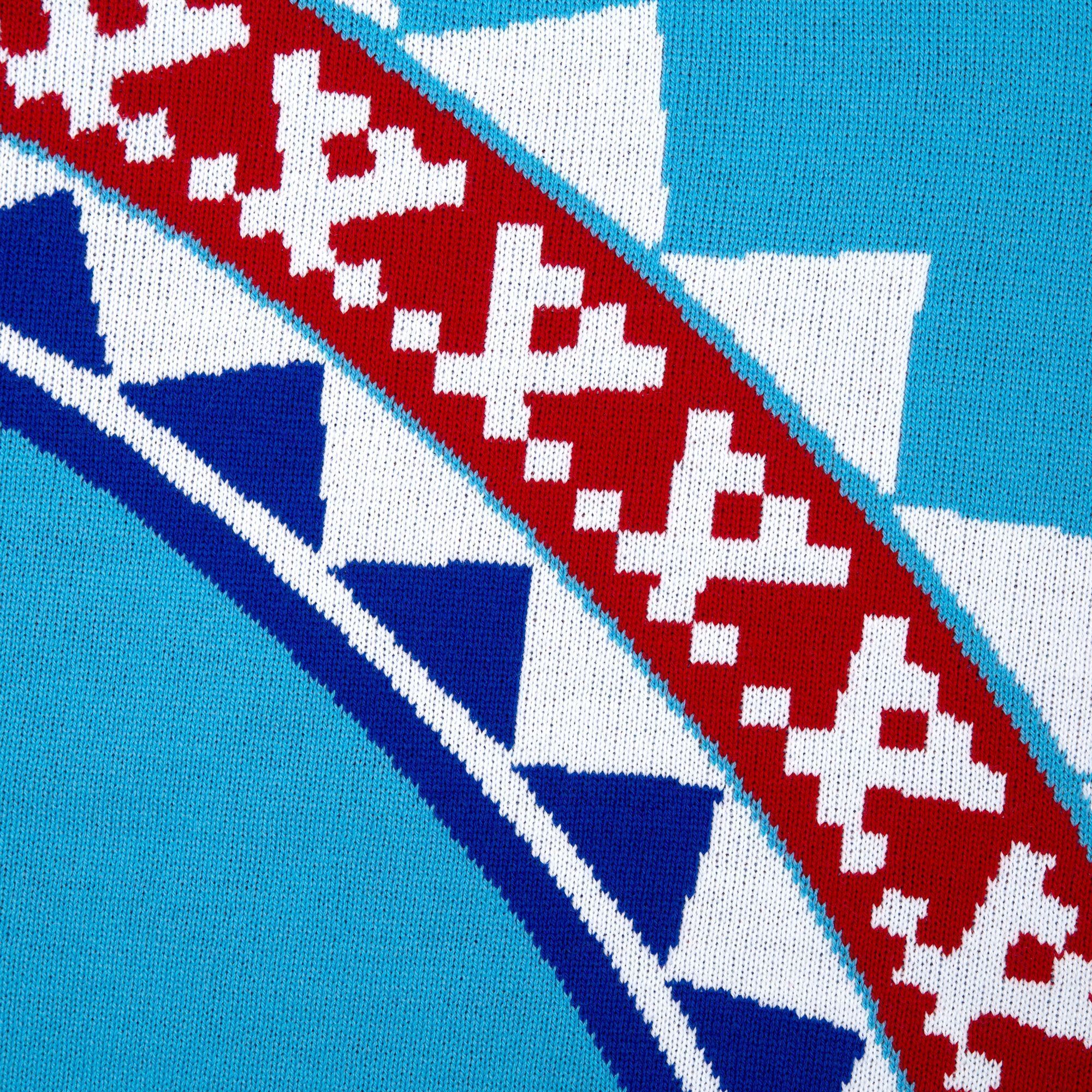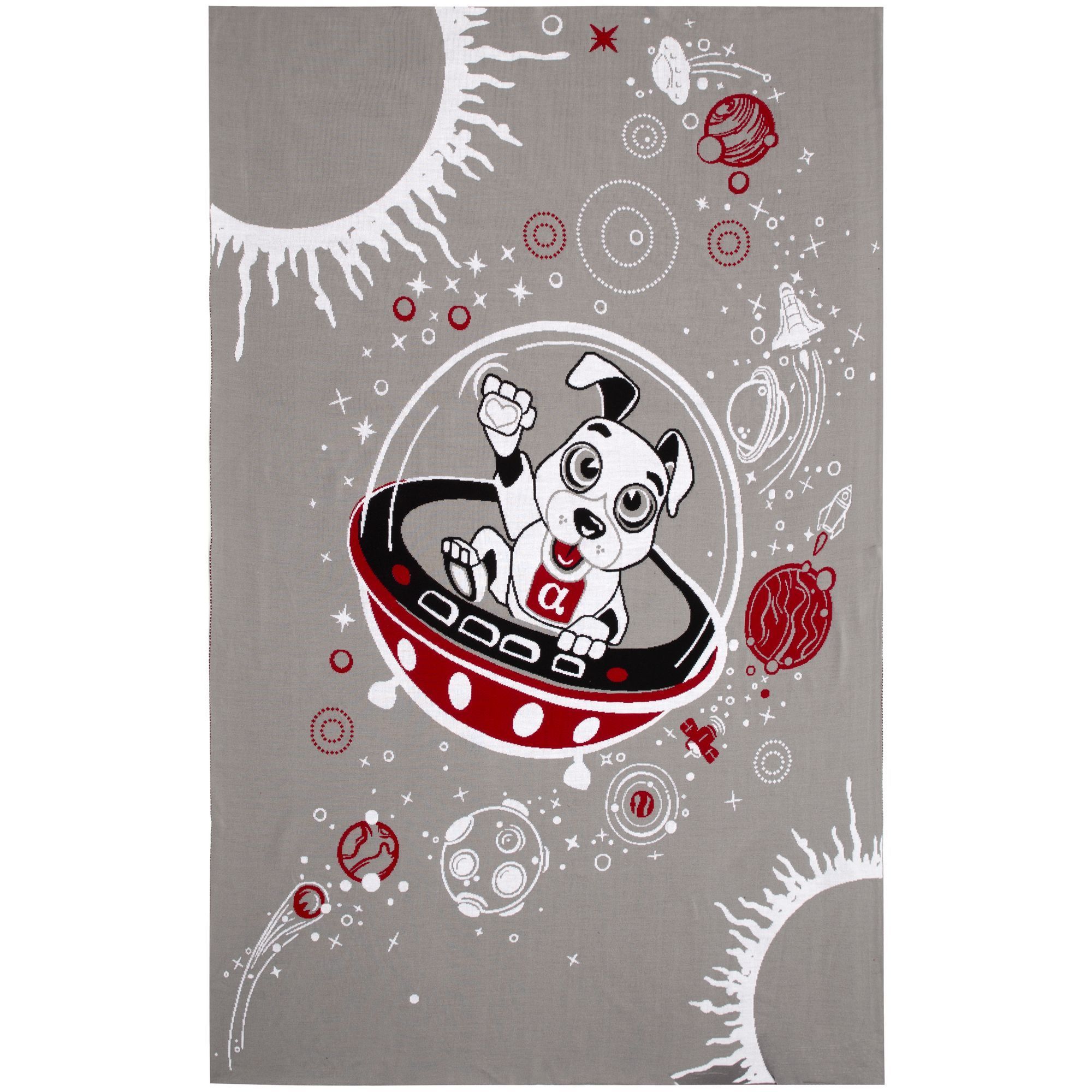 Плед с вывязанным логотипом и индивидуальным рисунком в фирменной цветовой гамме.