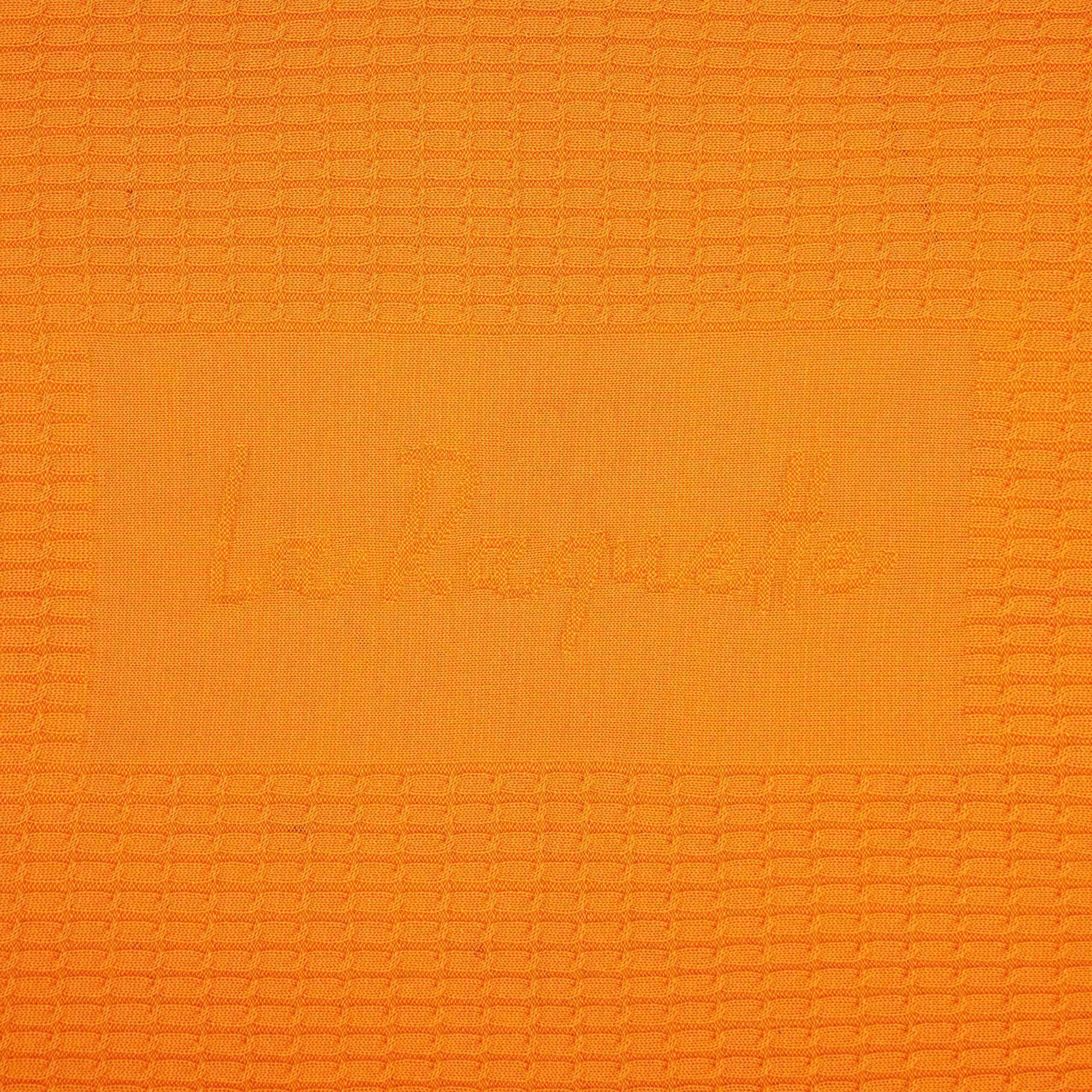 Модель: однотонный плед с фактурной вязкой, которая позволяет сделать его воздушным и объемным. Чередуя различные типы петель на гладком полотне, можно вывязать любую графику — логотип, текст, товарный знак.