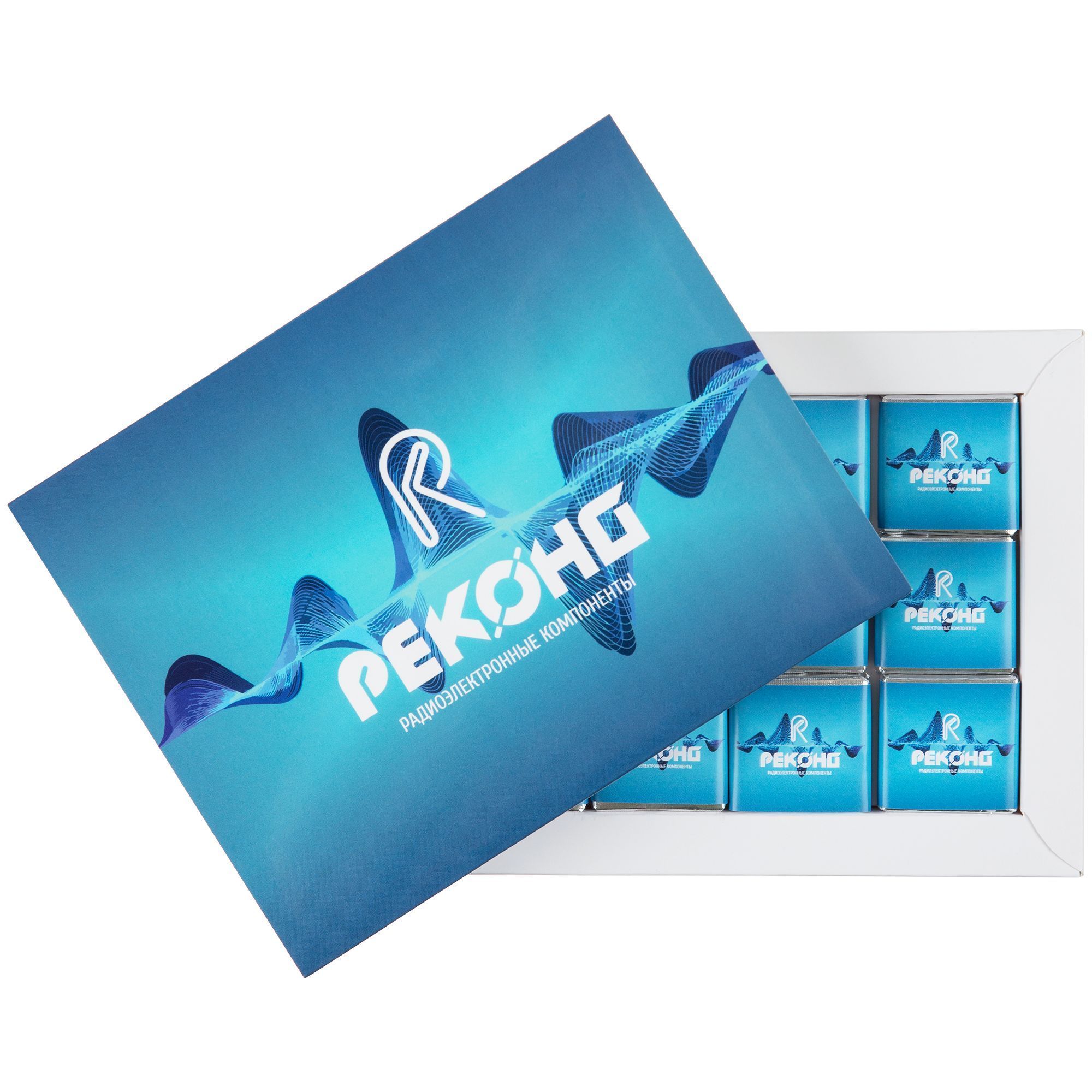Набор из 12 плиток шоколада. Упакован в коробку-пенал из картона.