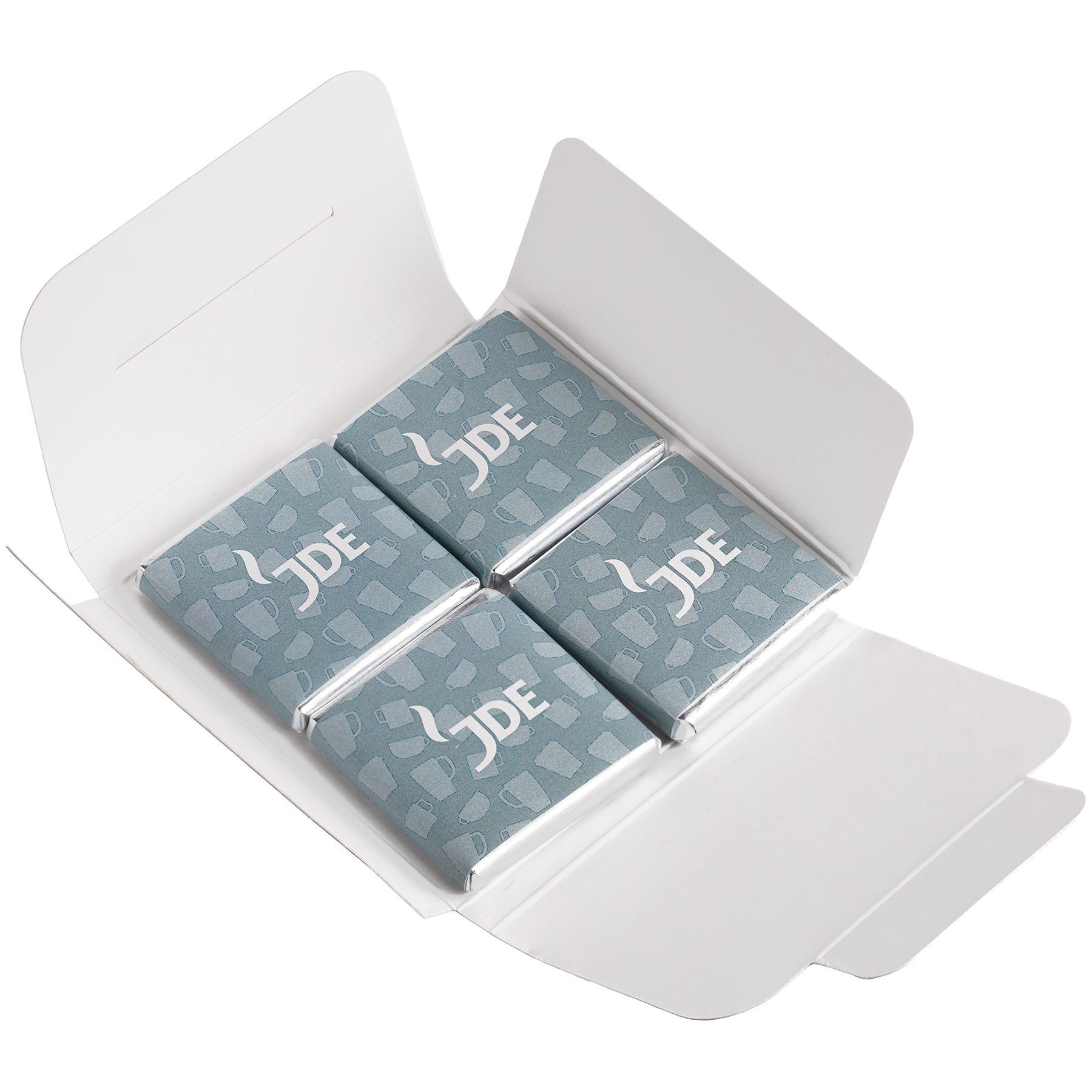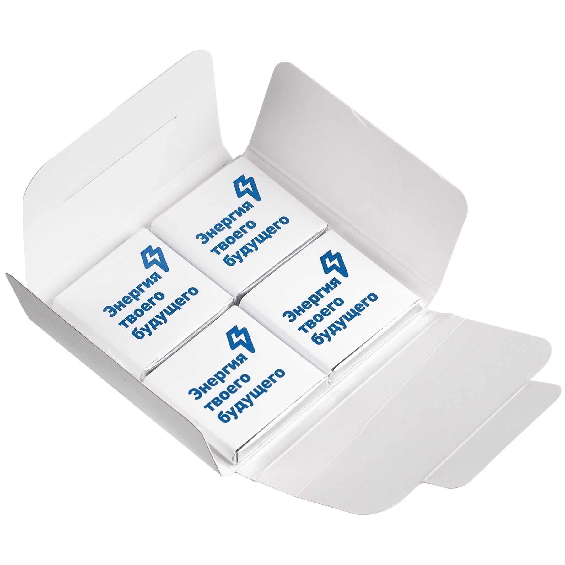 Набор из четырех плиток упакован в небольшую коробку в виде конверта.