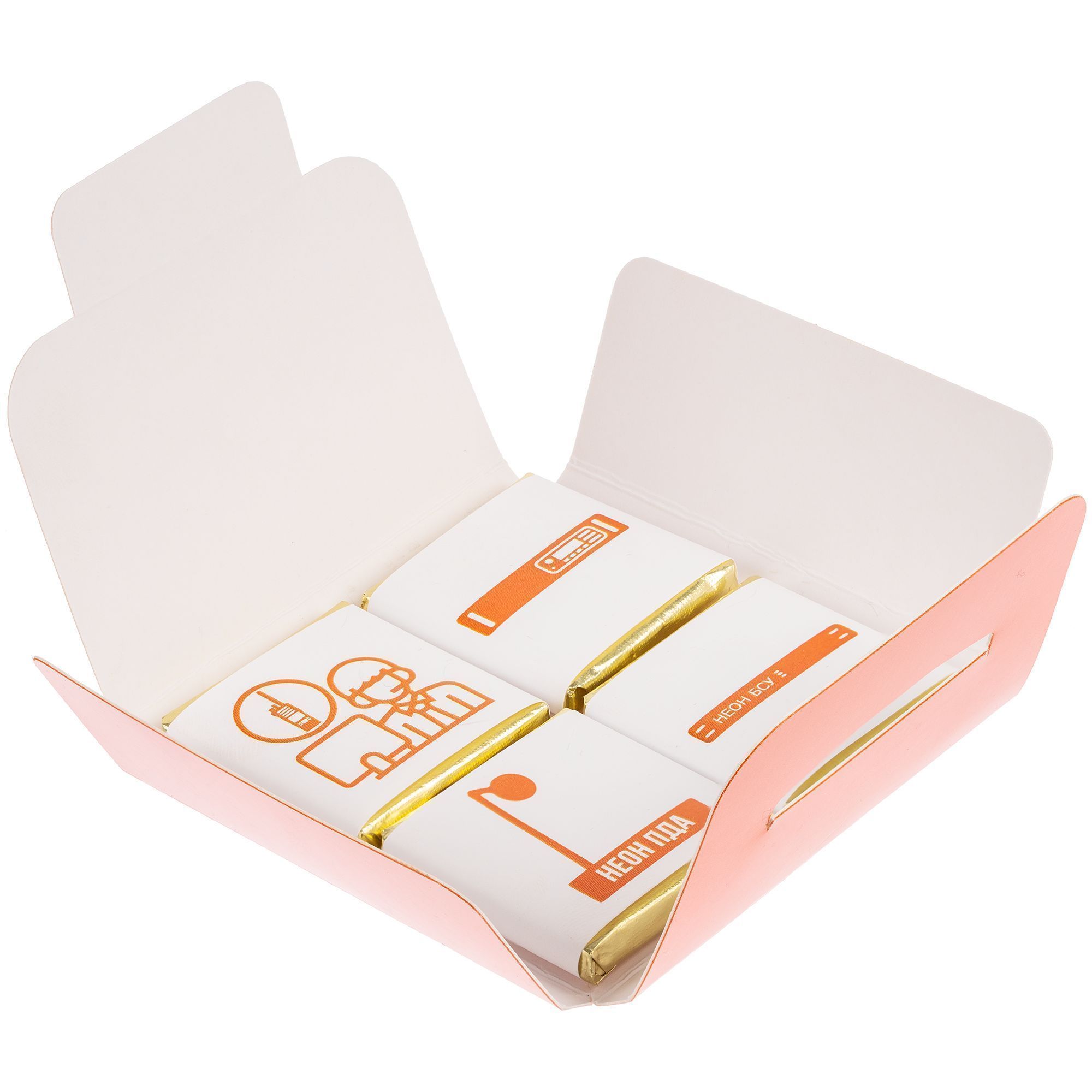 - Обертка с полноцветной печатью на каждой плитке шоколада.