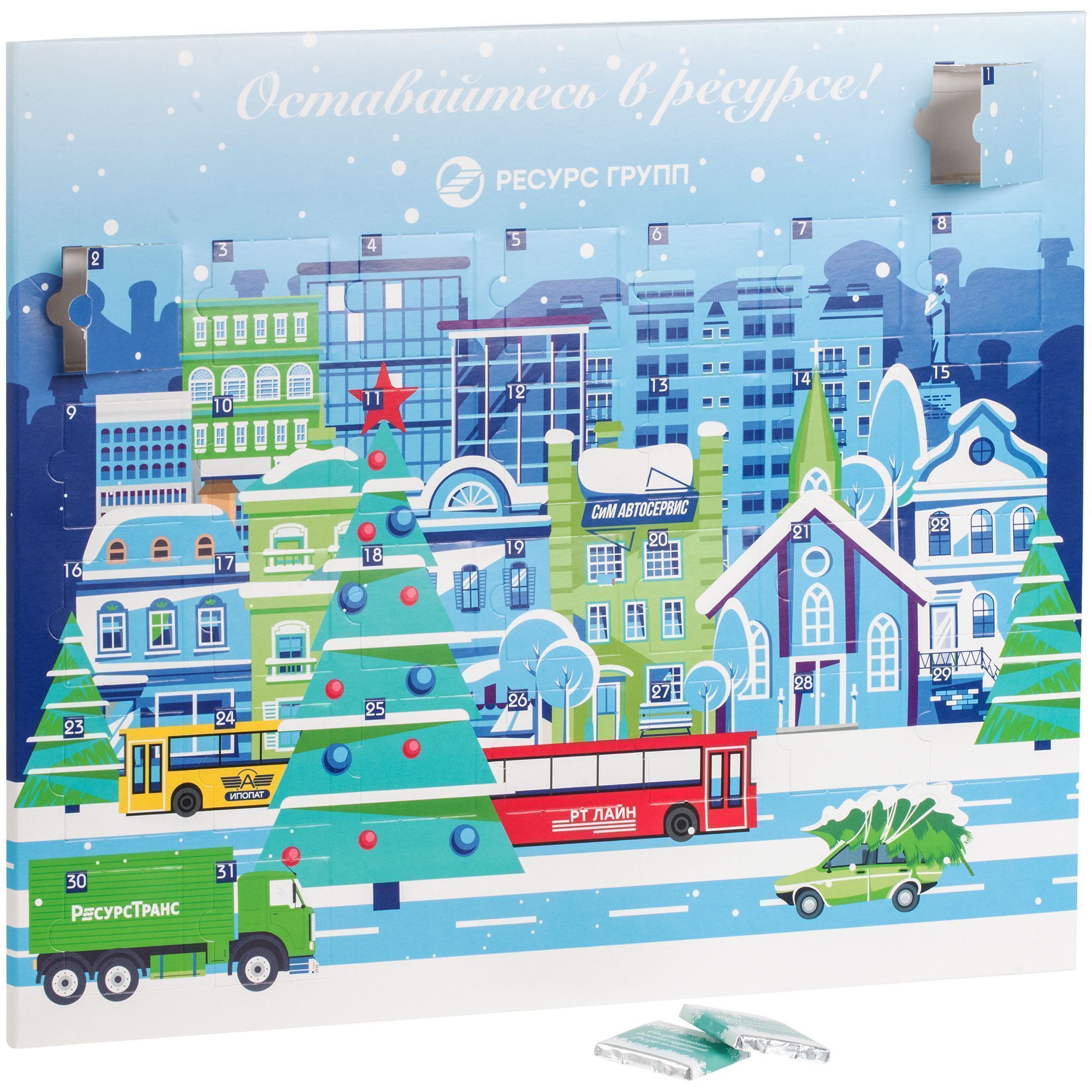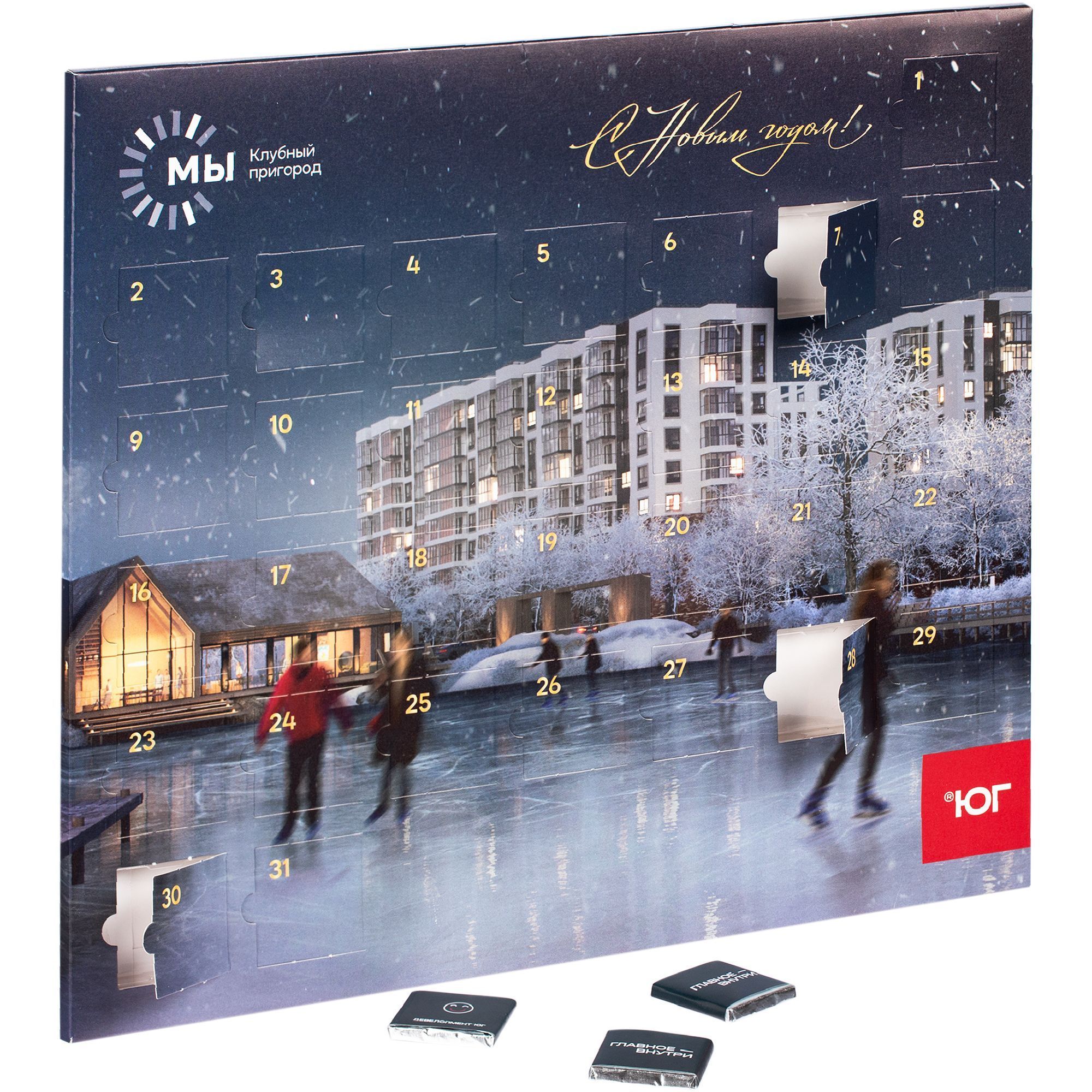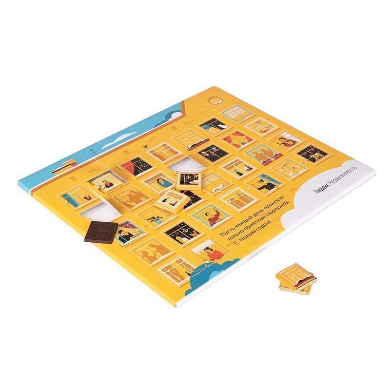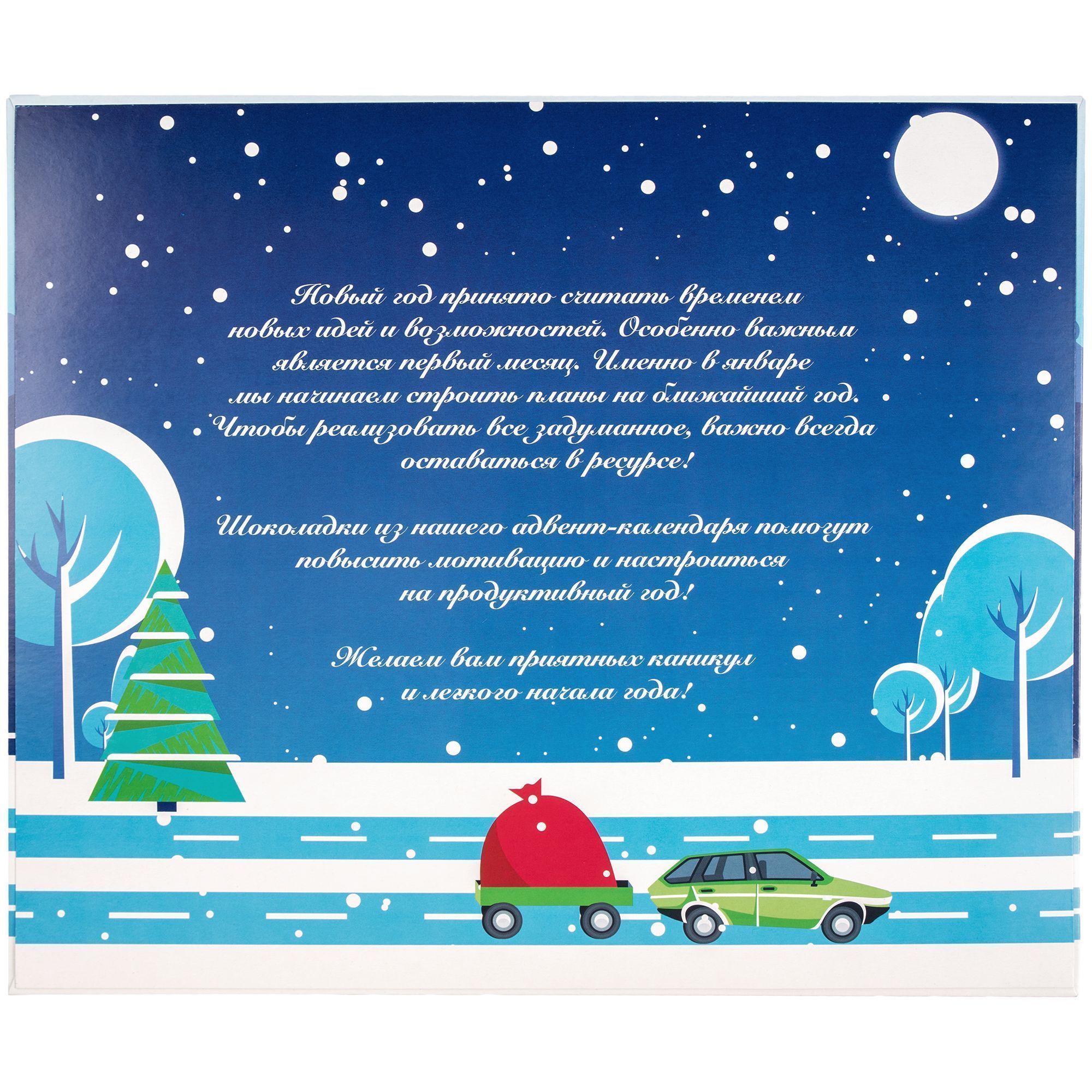 Набор из 31 плитки шоколада в коробке в виде адвент-календаря.