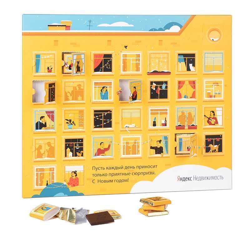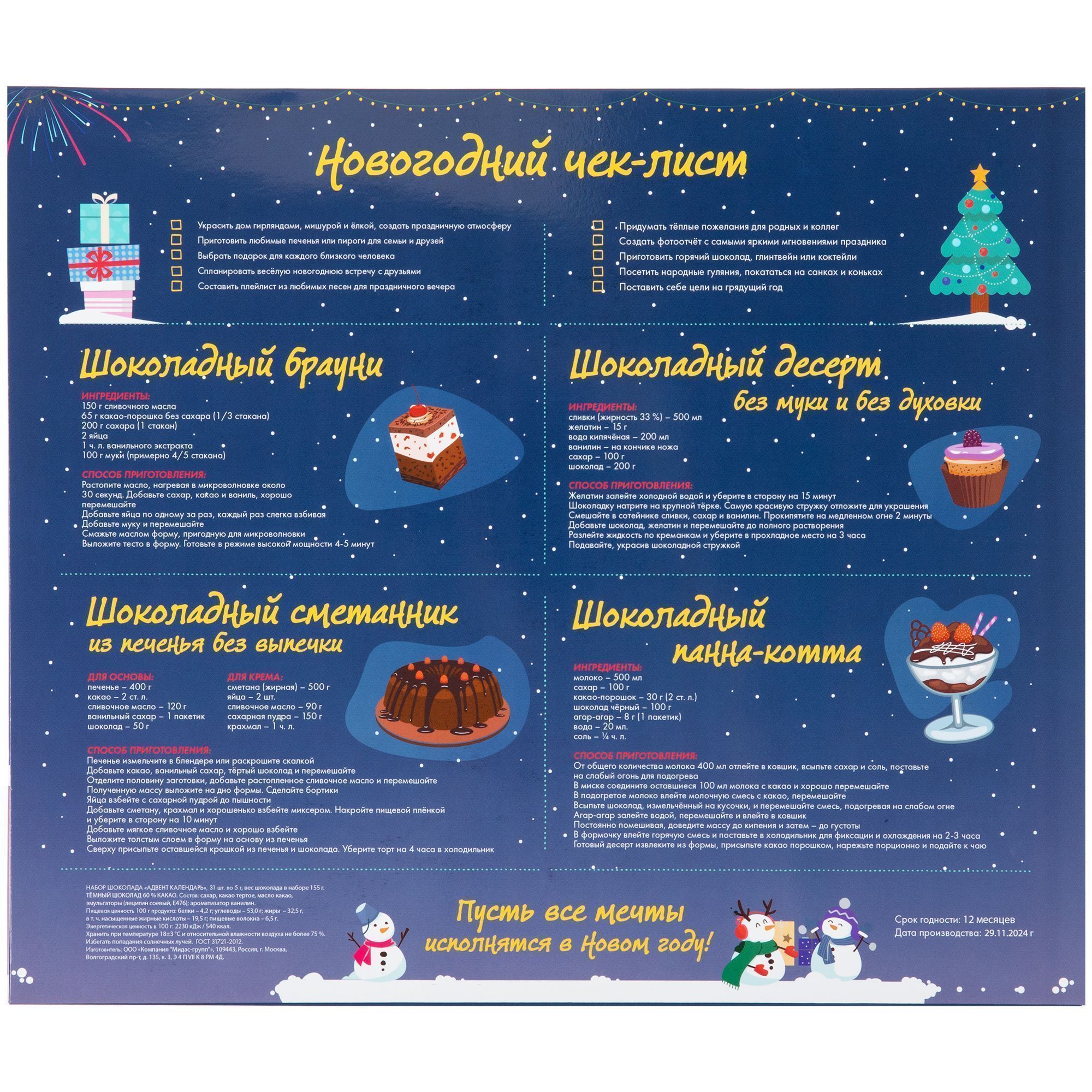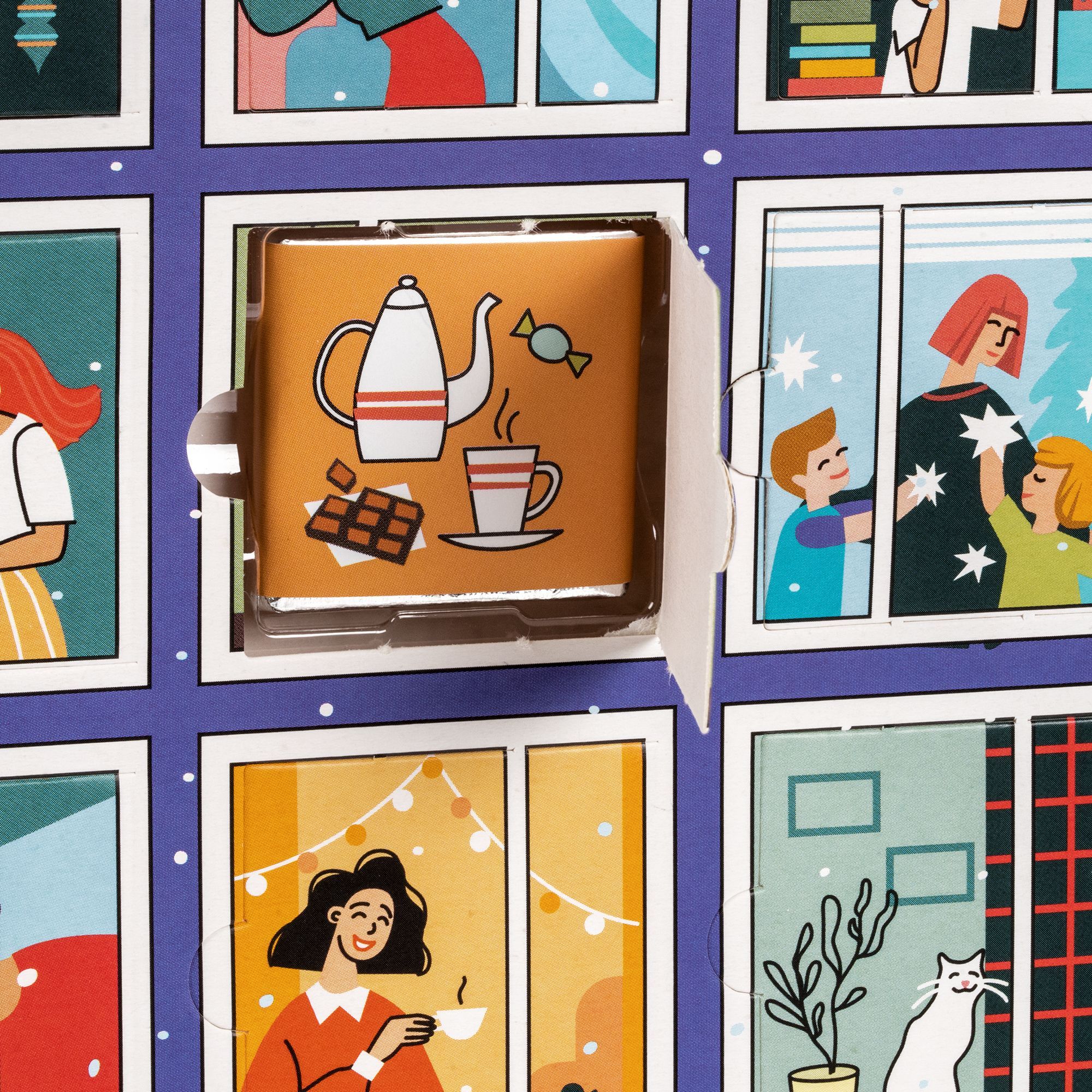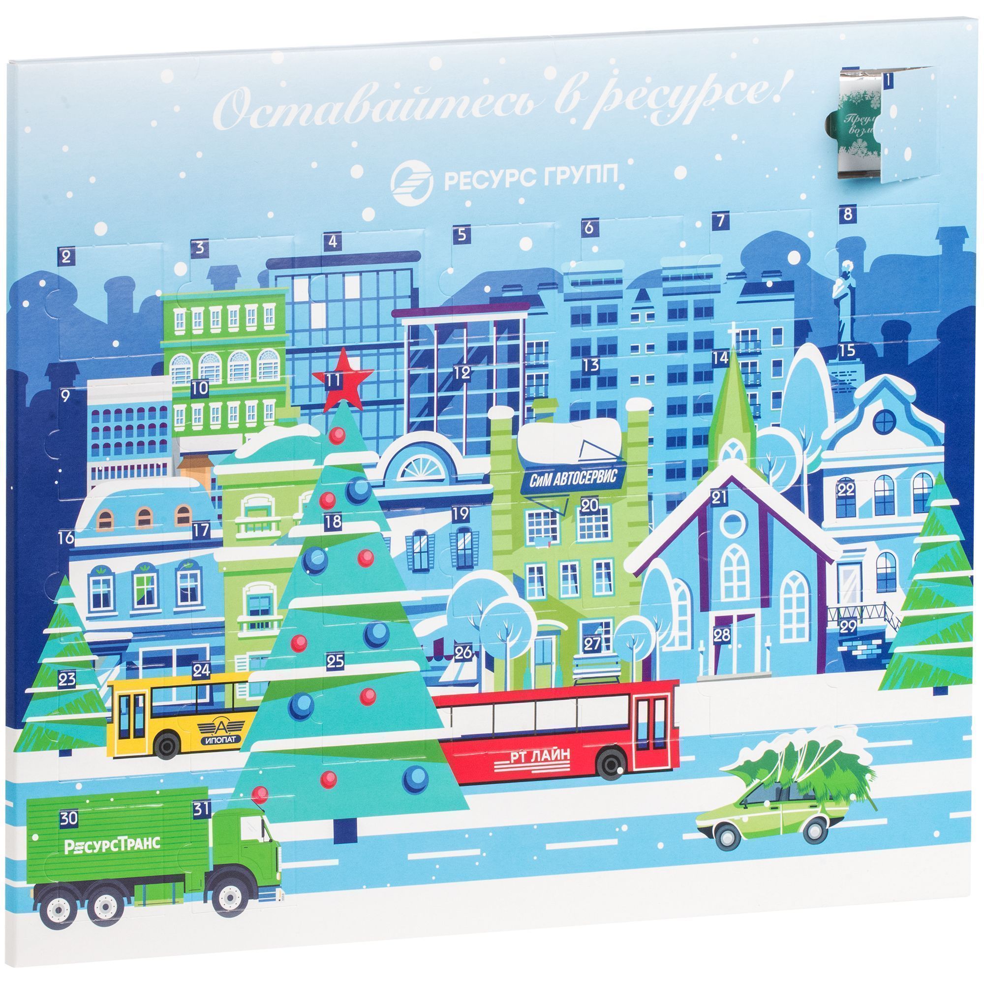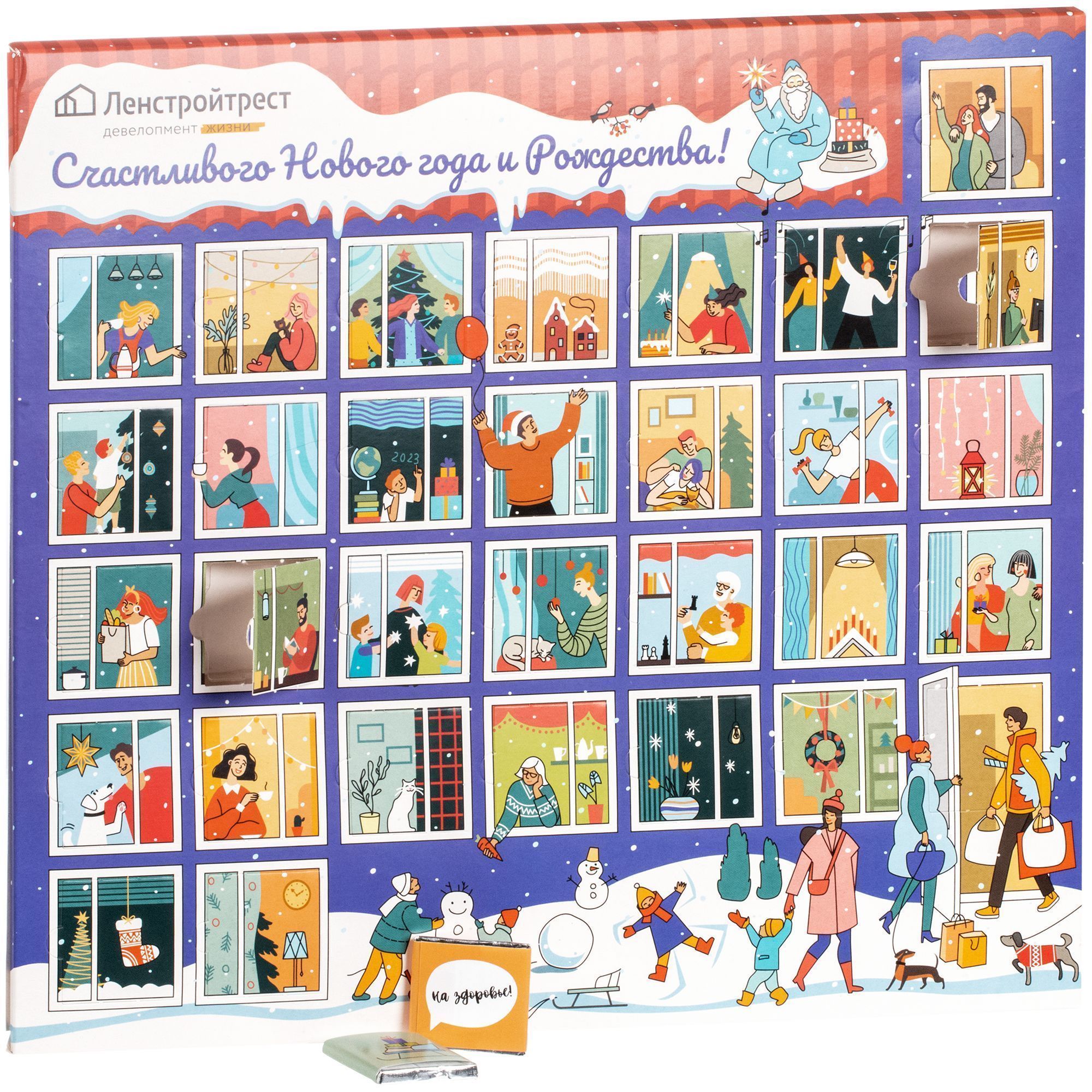 Набор из 31 плитки шоколада в коробке в виде адвент-календаря.