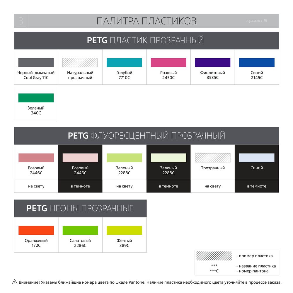 • Цвет и тип пластика. Варианты цветов можно посмотреть в разделе «Фотографии».