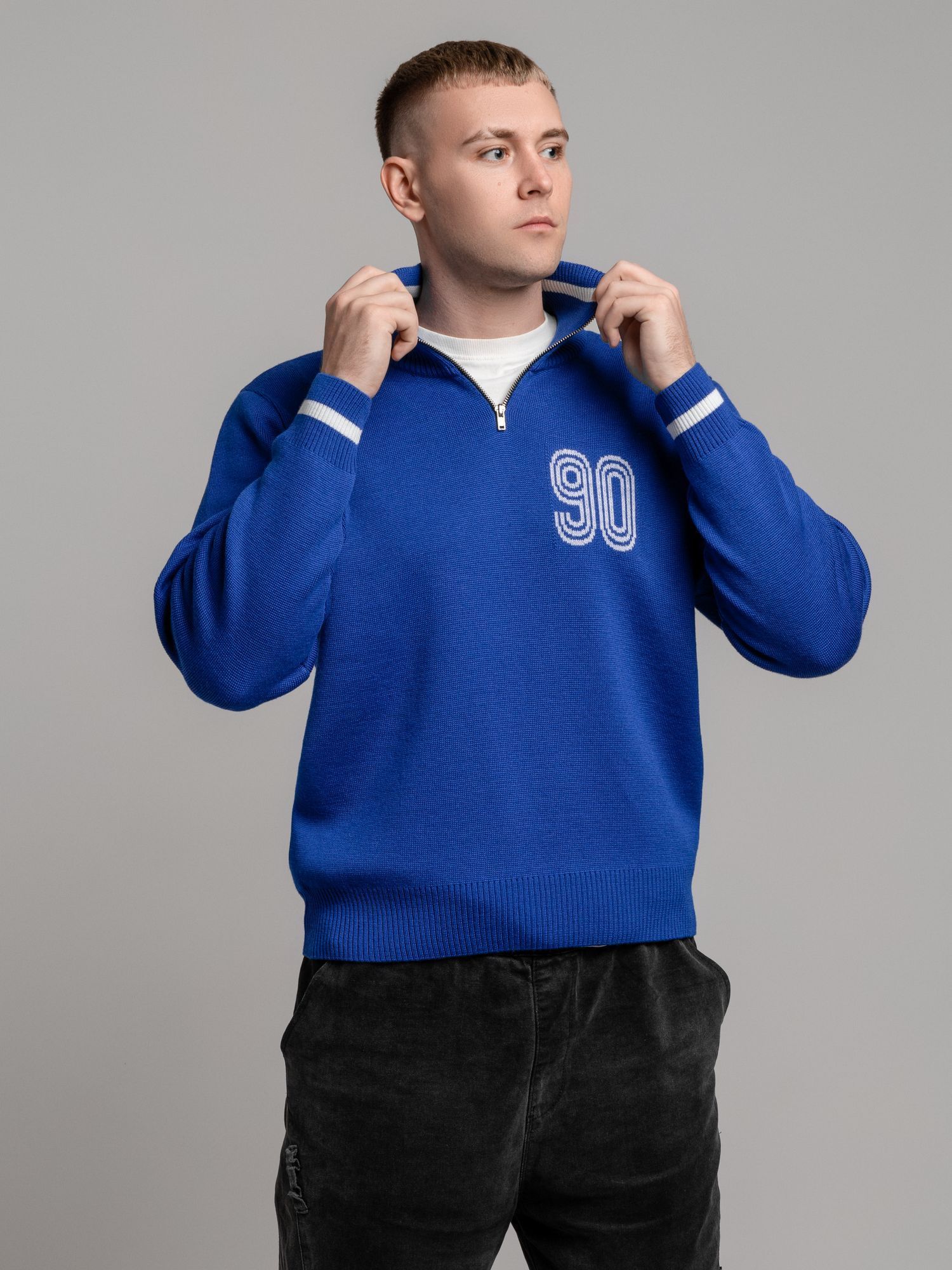 Модель: олимпийка унисекс жаккардовой вязки, ворот застегивается на молнию, гладкая поверхность.