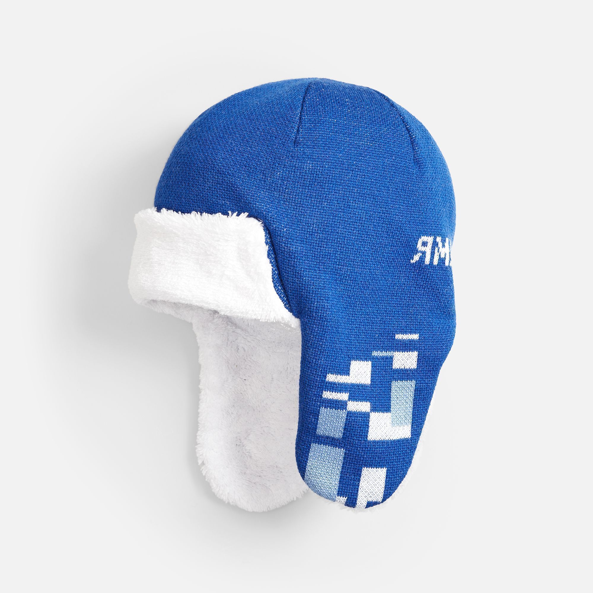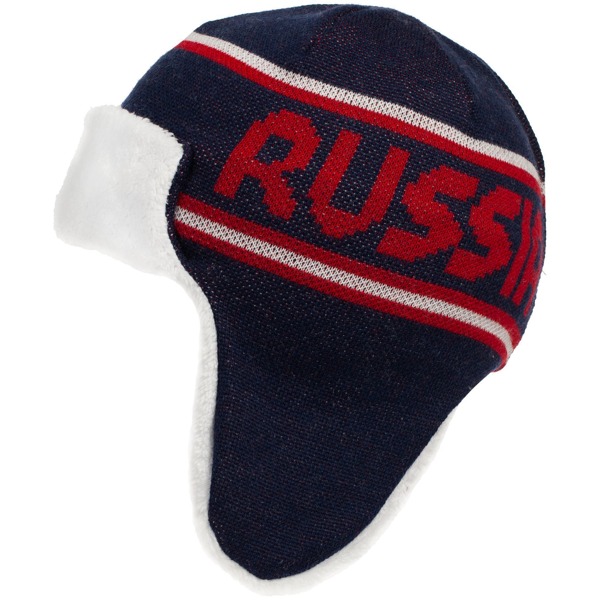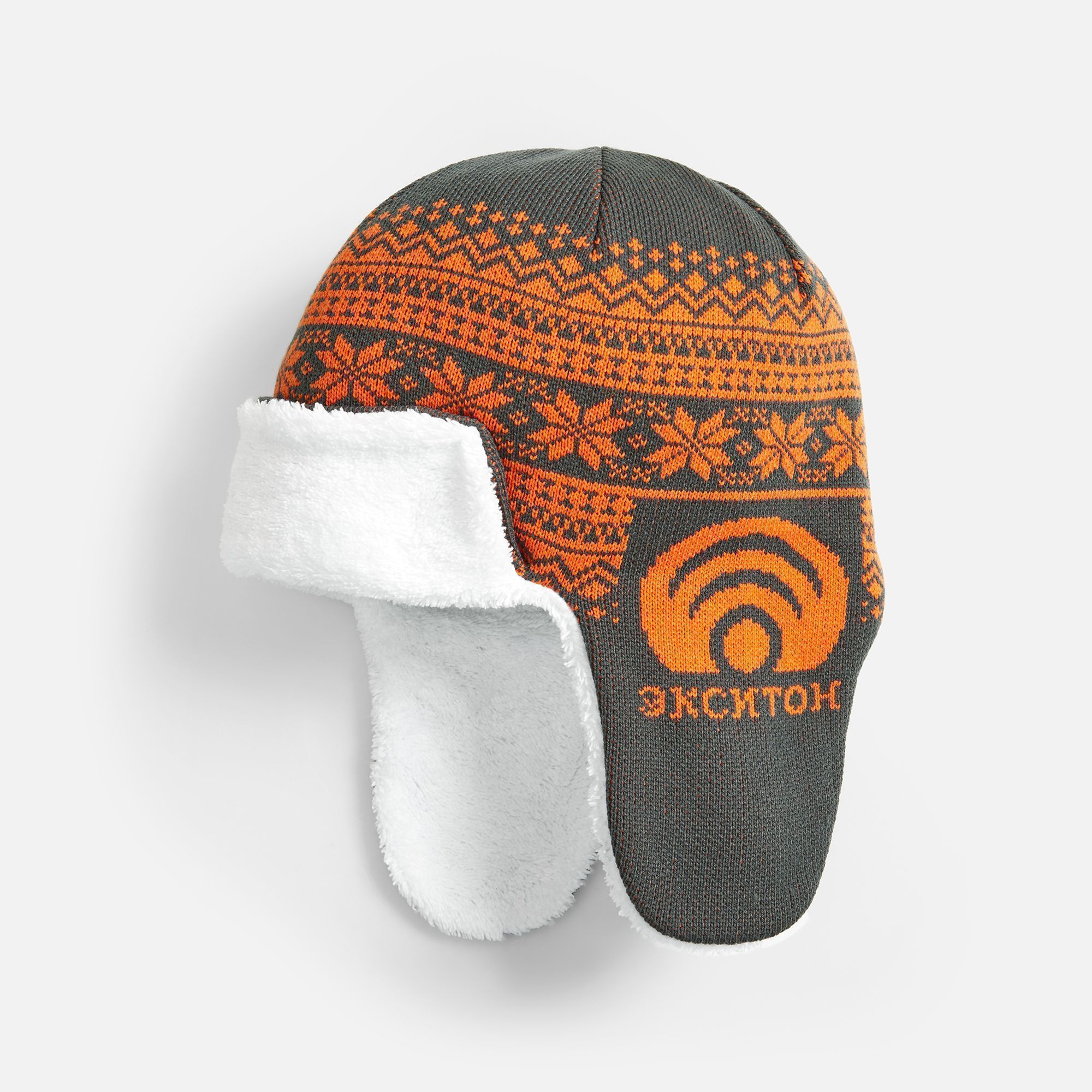 Шапка с вывязанным логотипом и индивидуальным рисунком в фирменной цветовой гамме.
