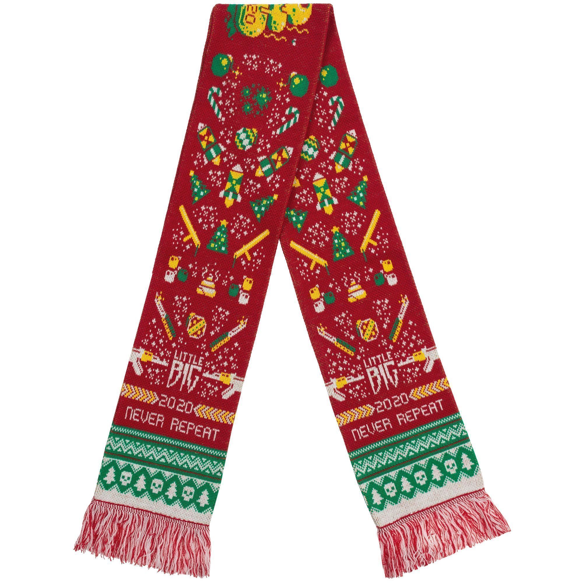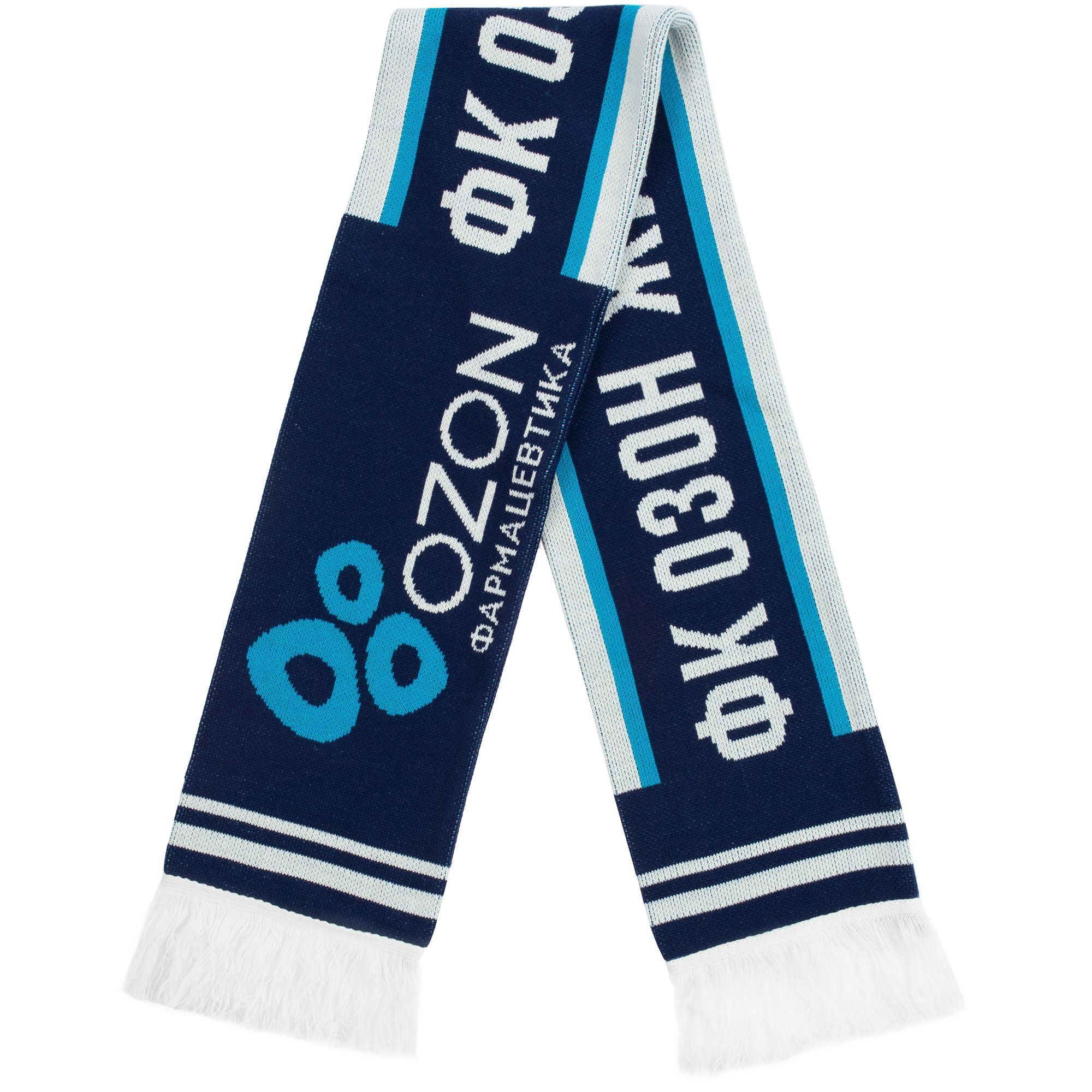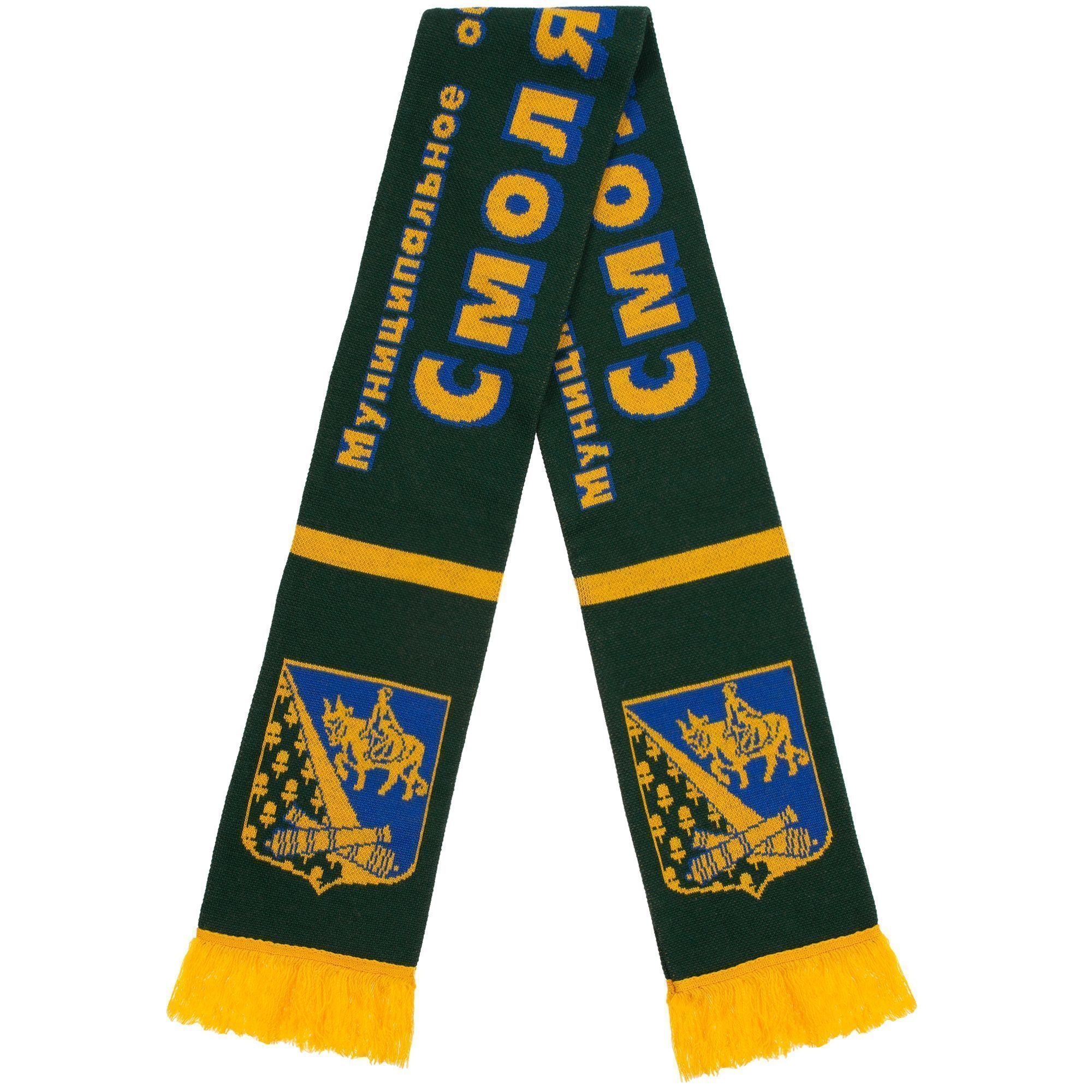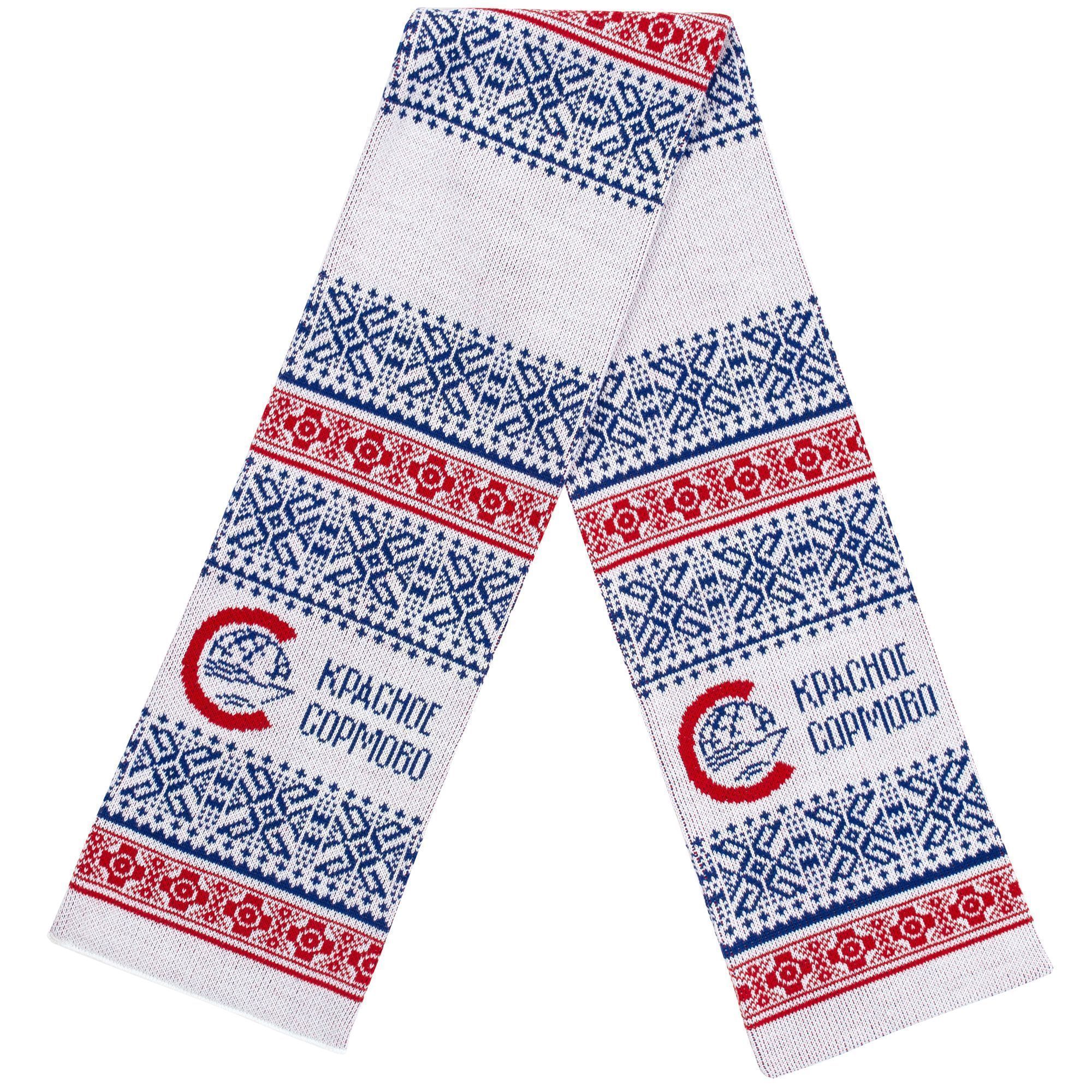 Шарф с вывязанным логотипом и индивидуальным рисунком в фирменной цветовой гамме.
