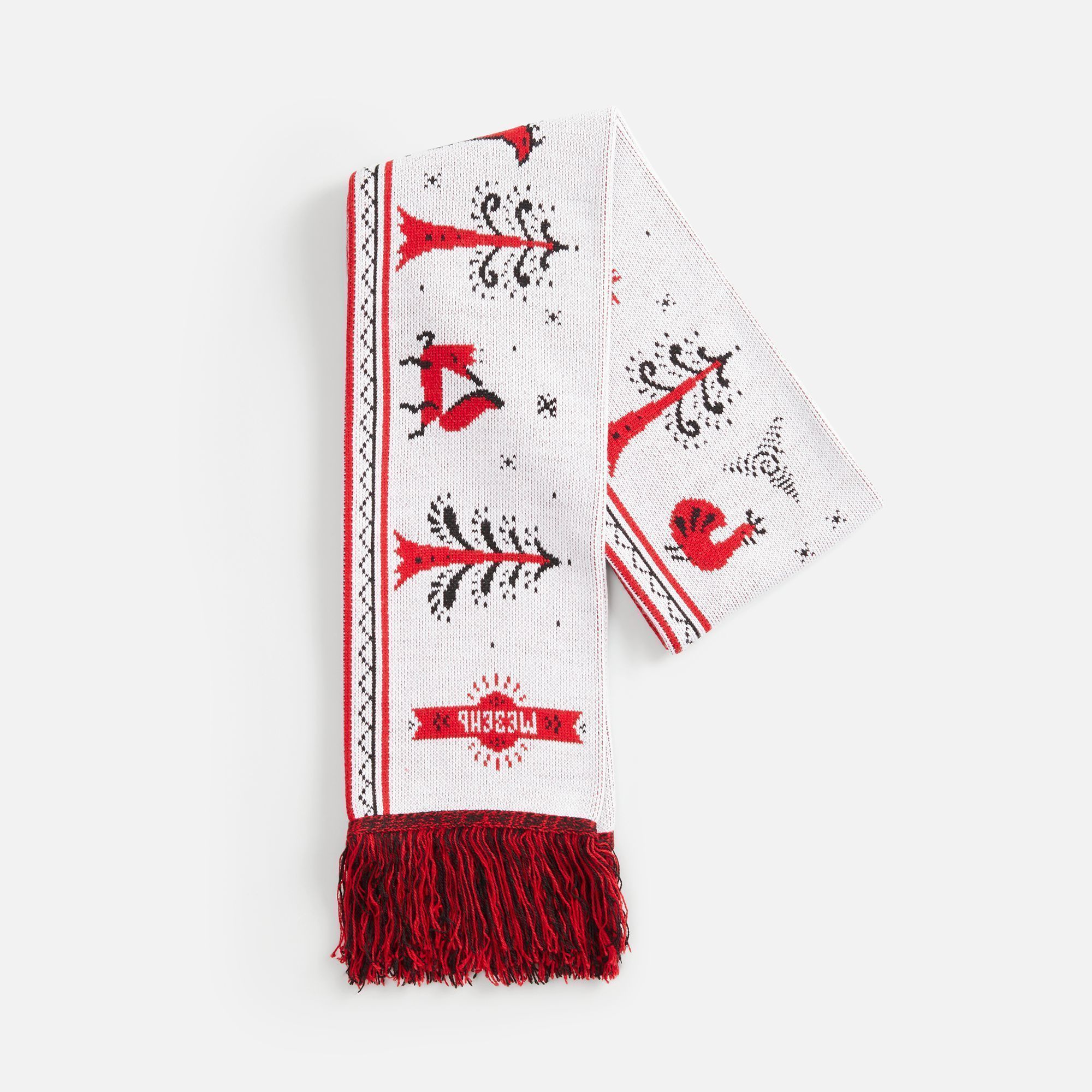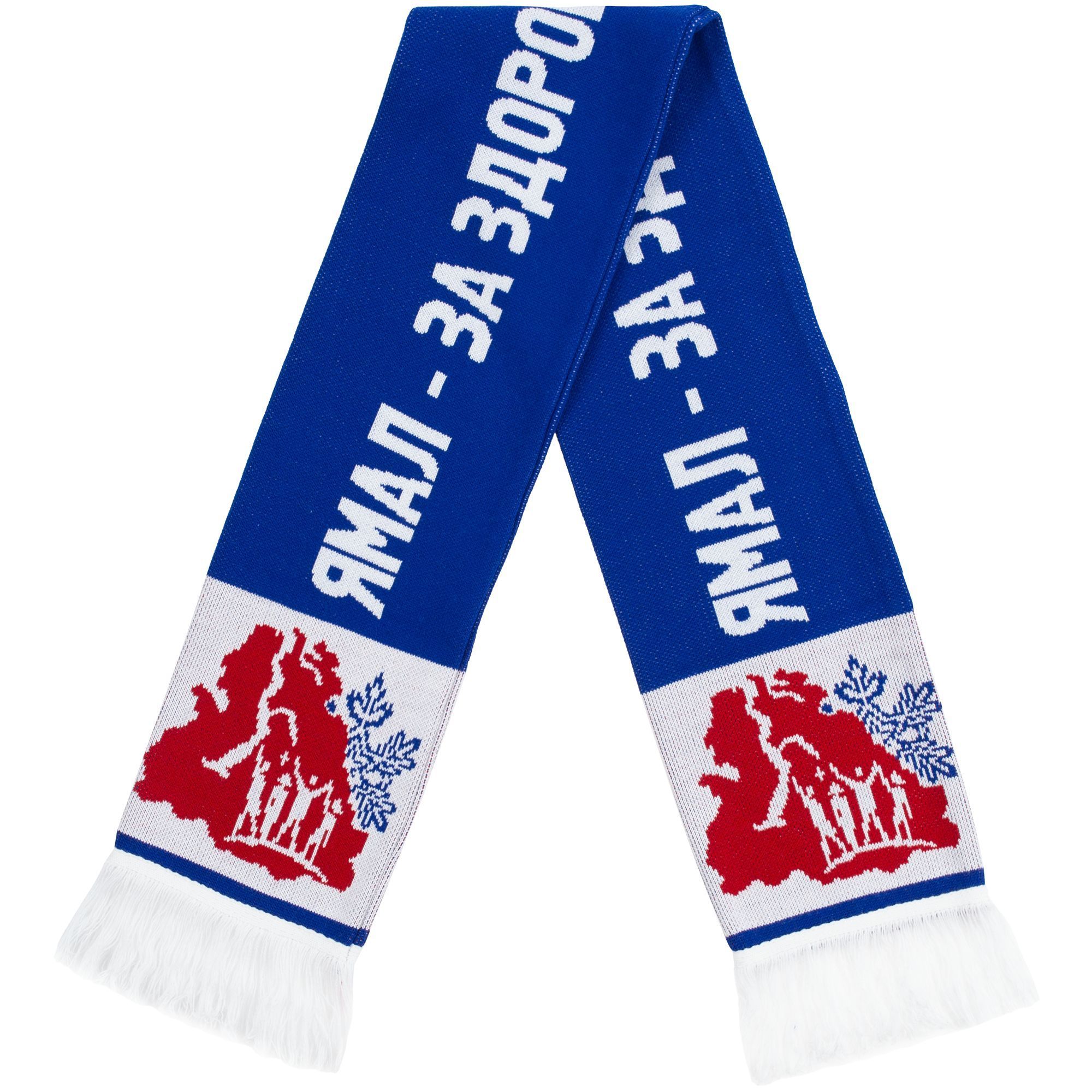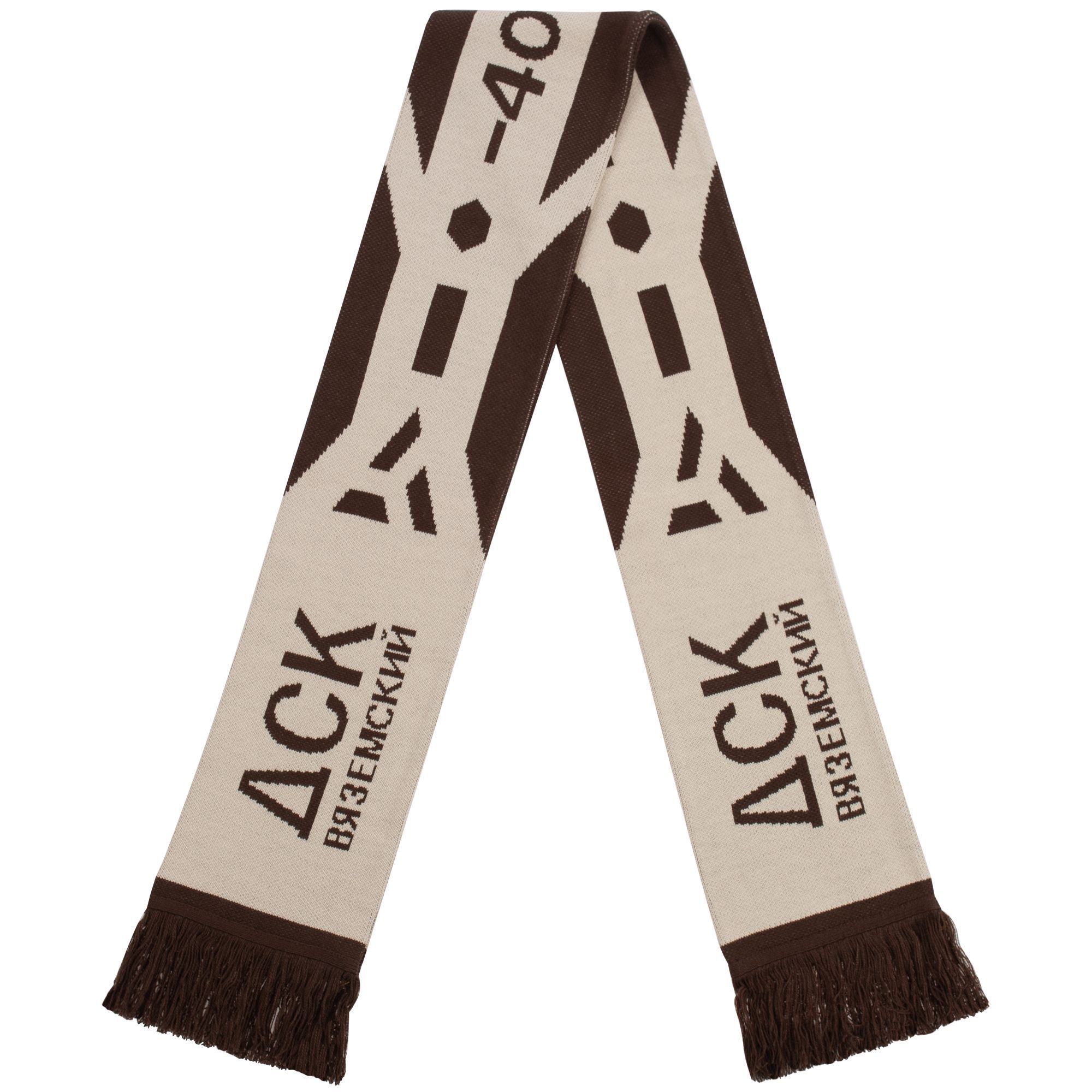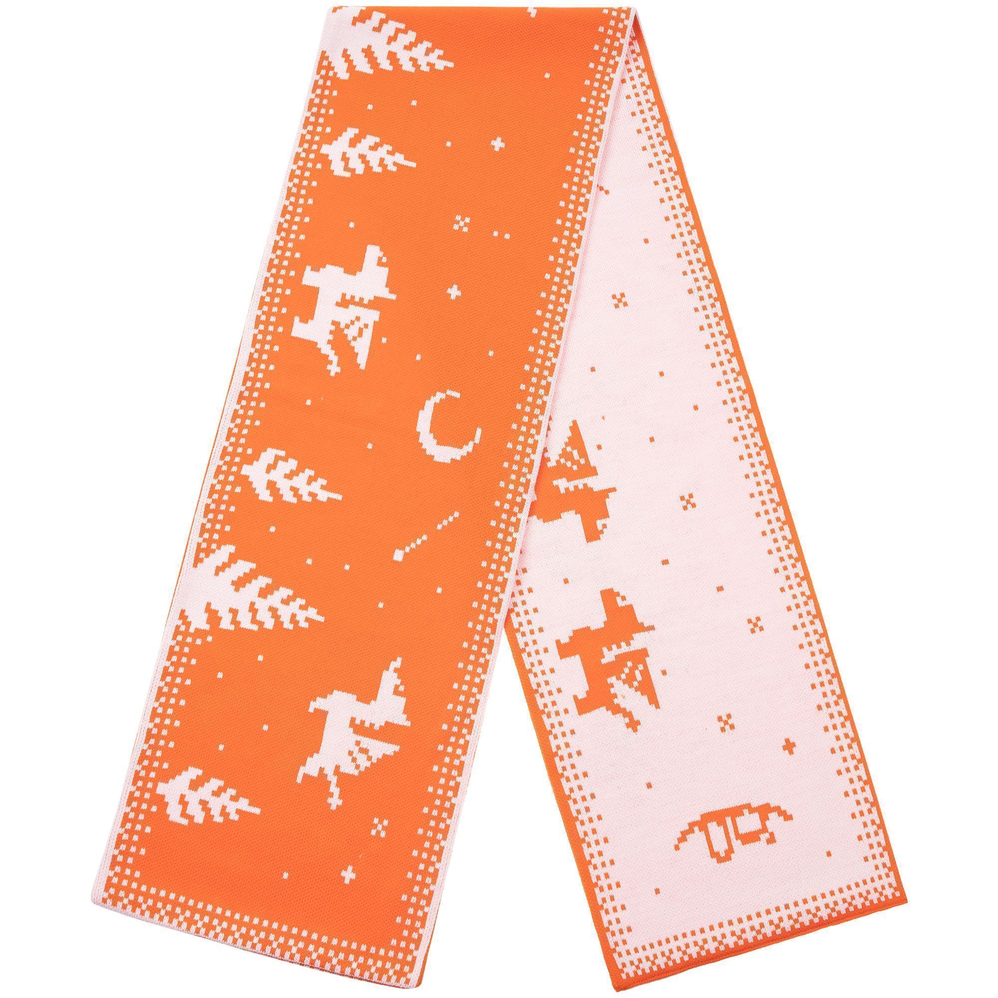 Шарф с вывязанным логотипом и индивидуальным рисунком в фирменной цветовой гамме.