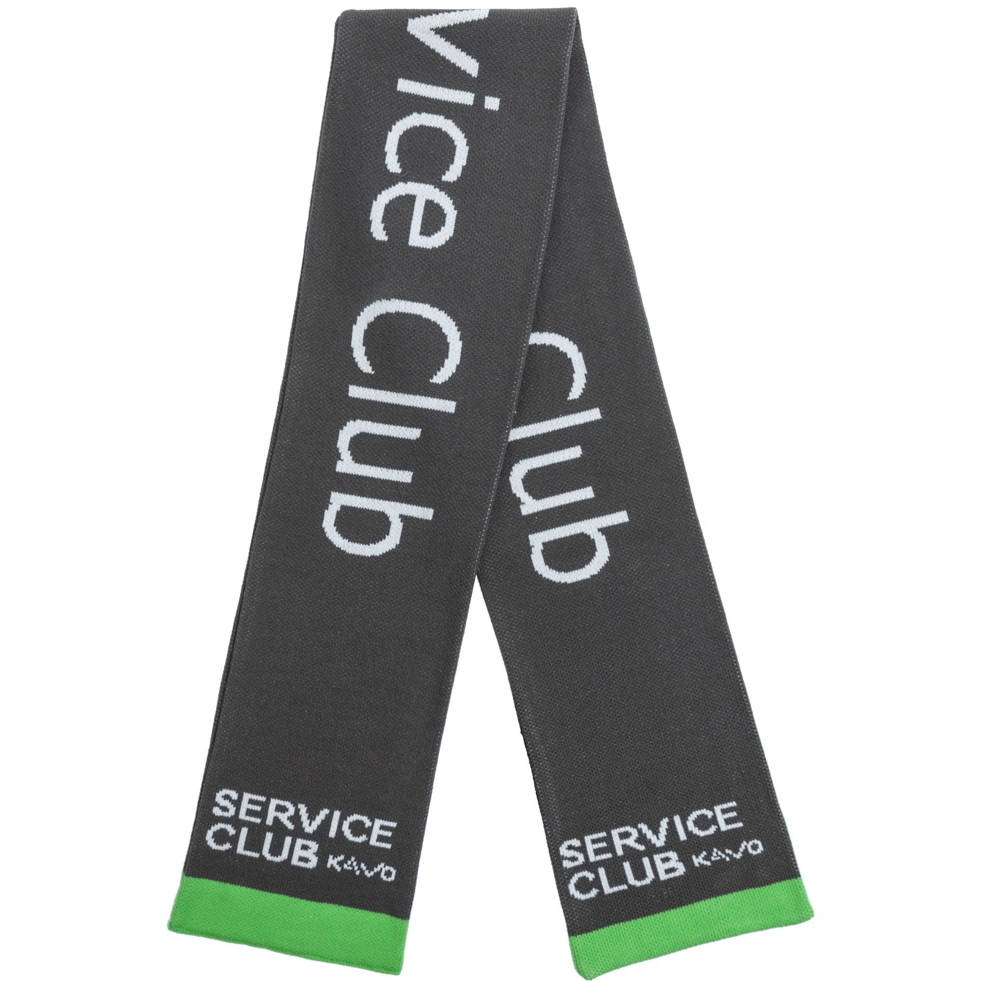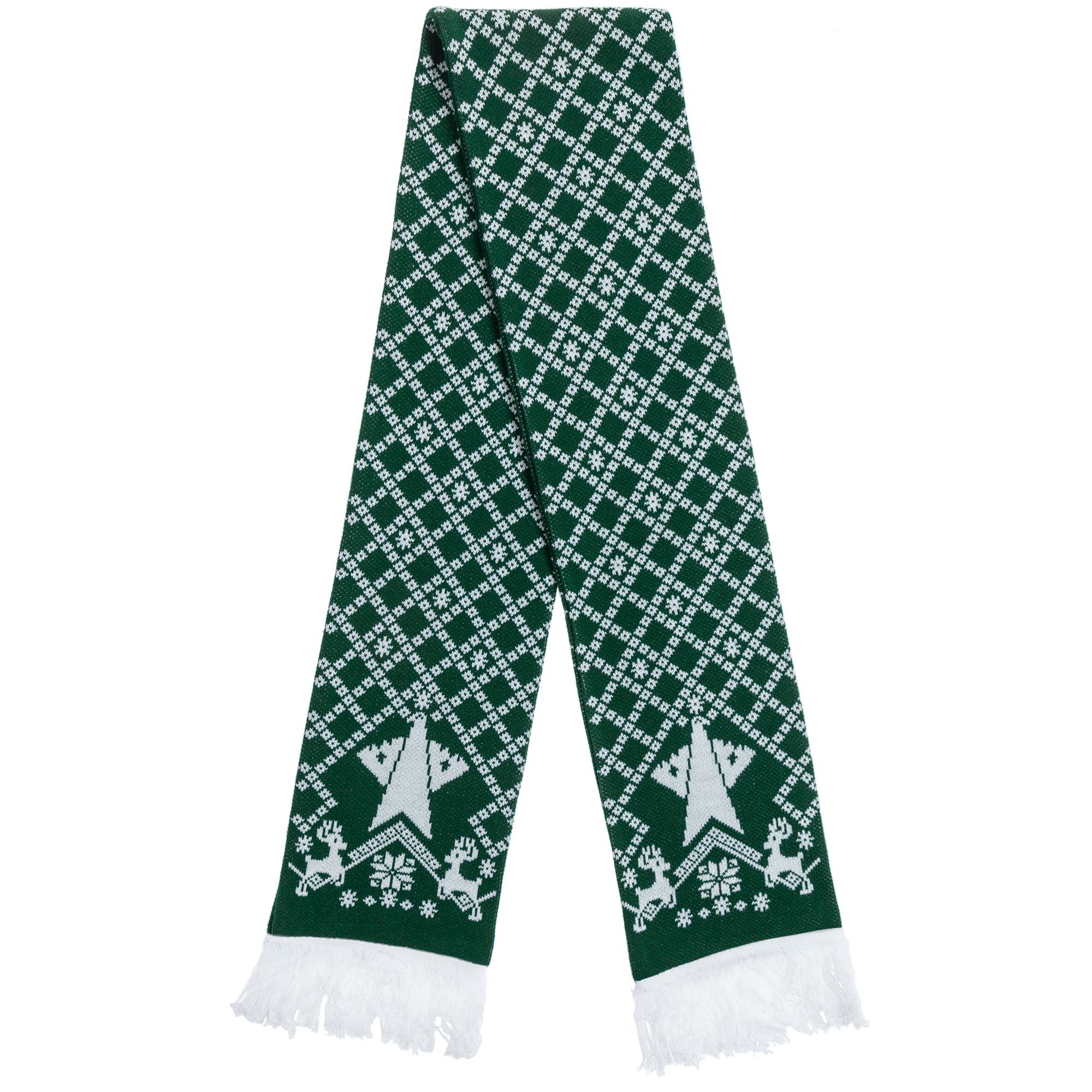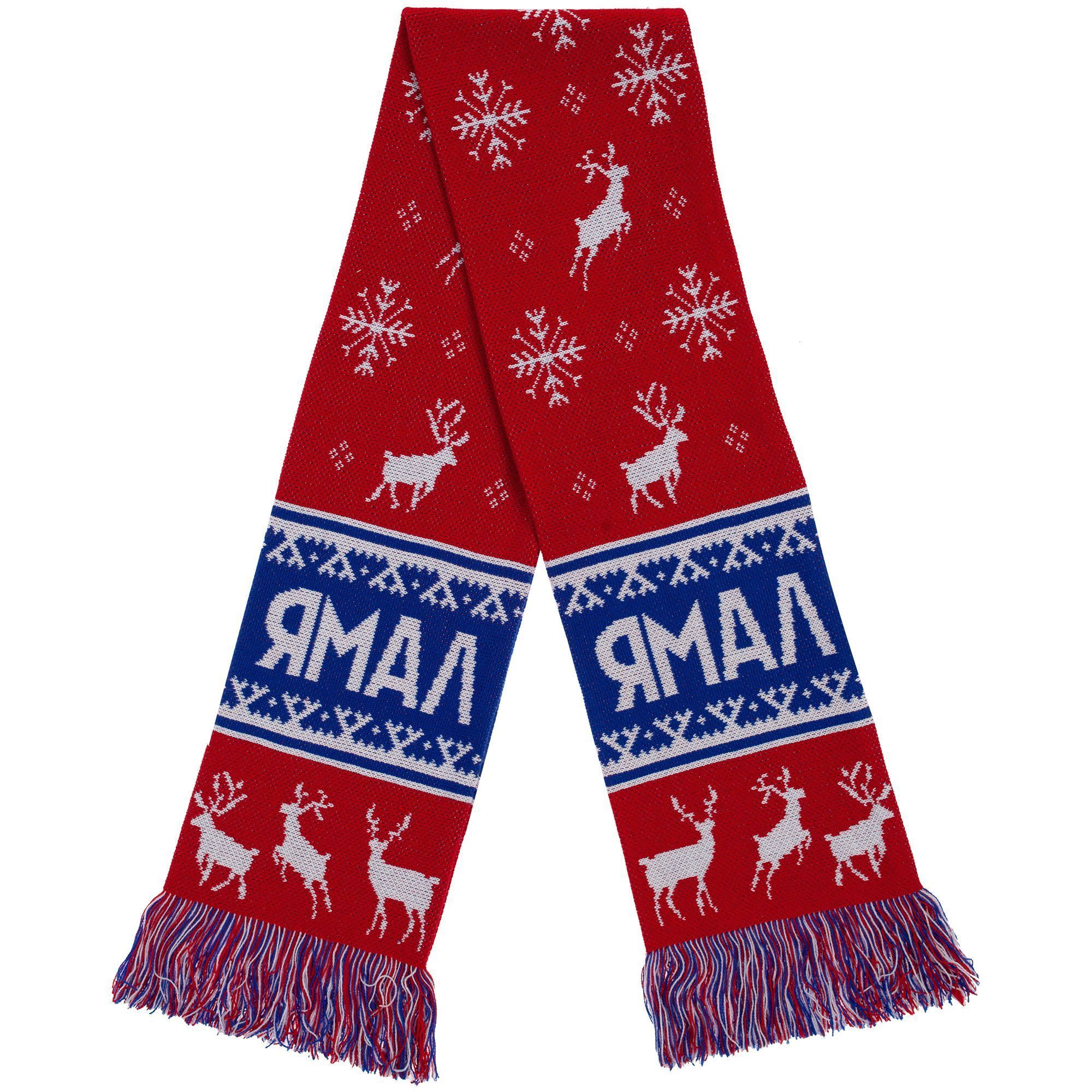 Шарф с вывязанным логотипом и индивидуальным рисунком в фирменной цветовой гамме.