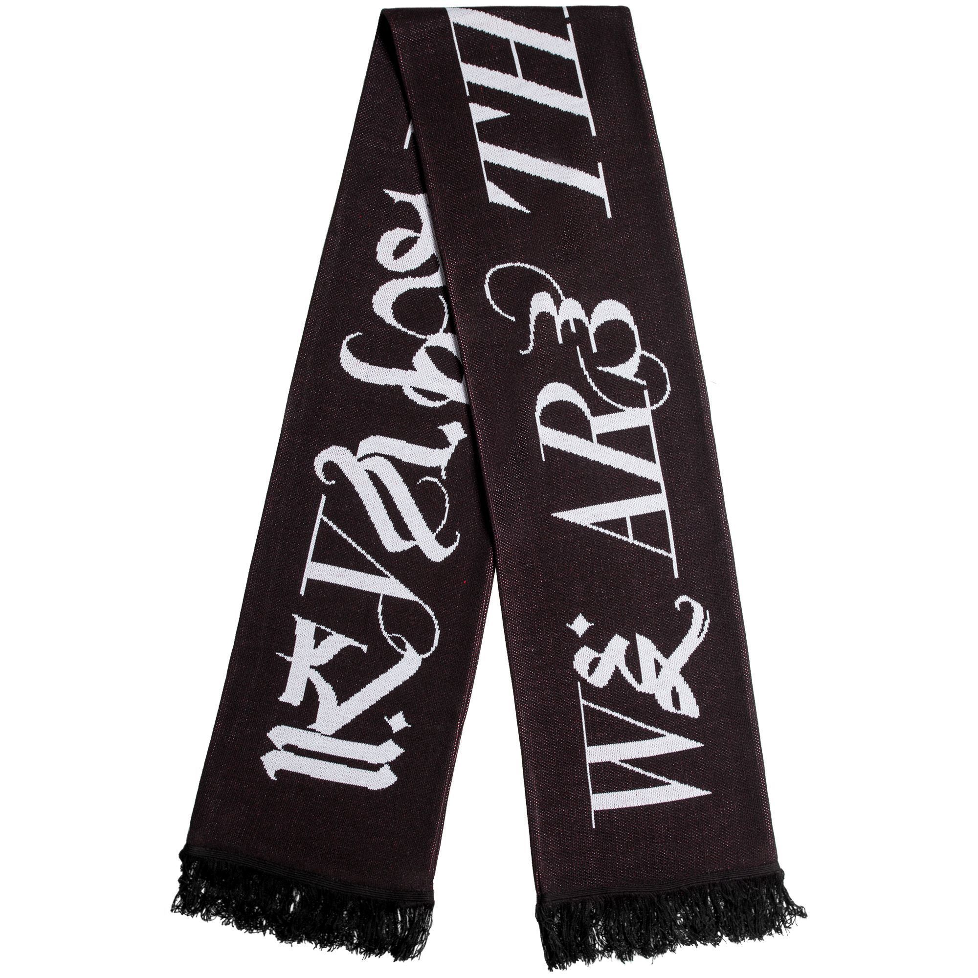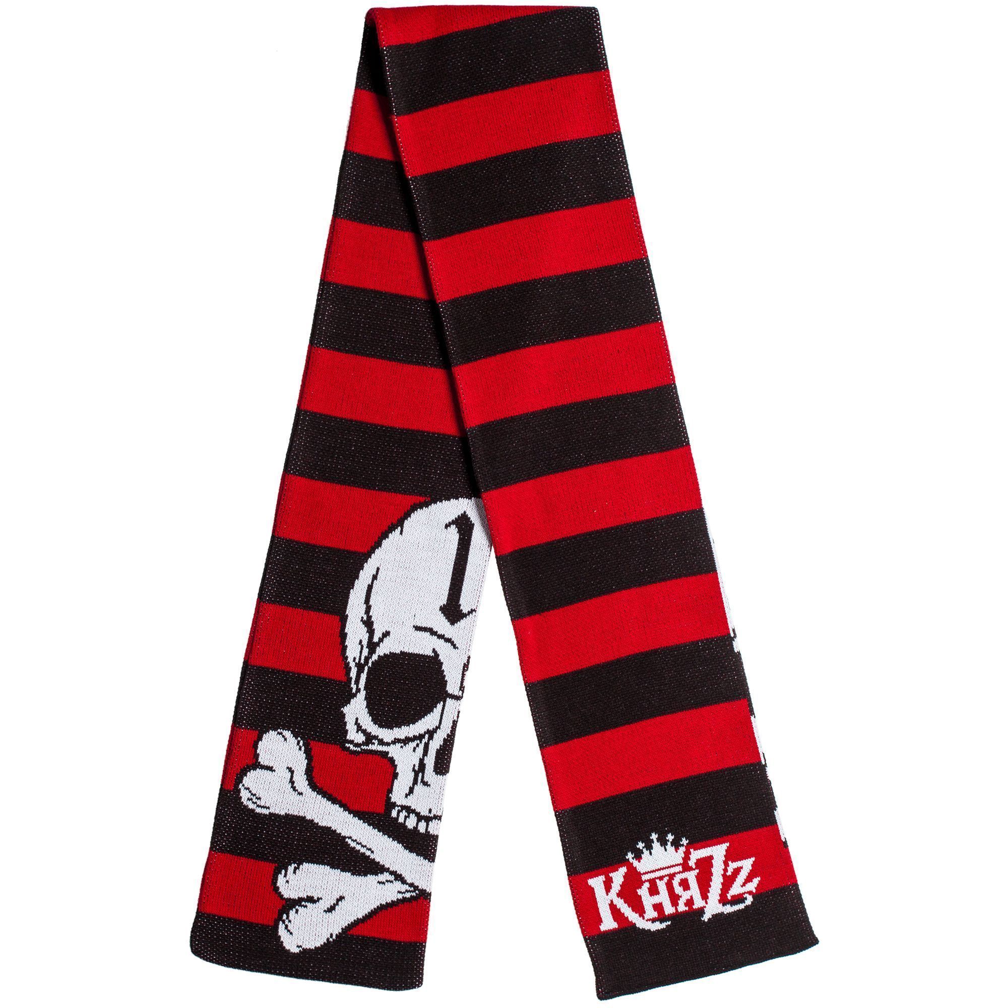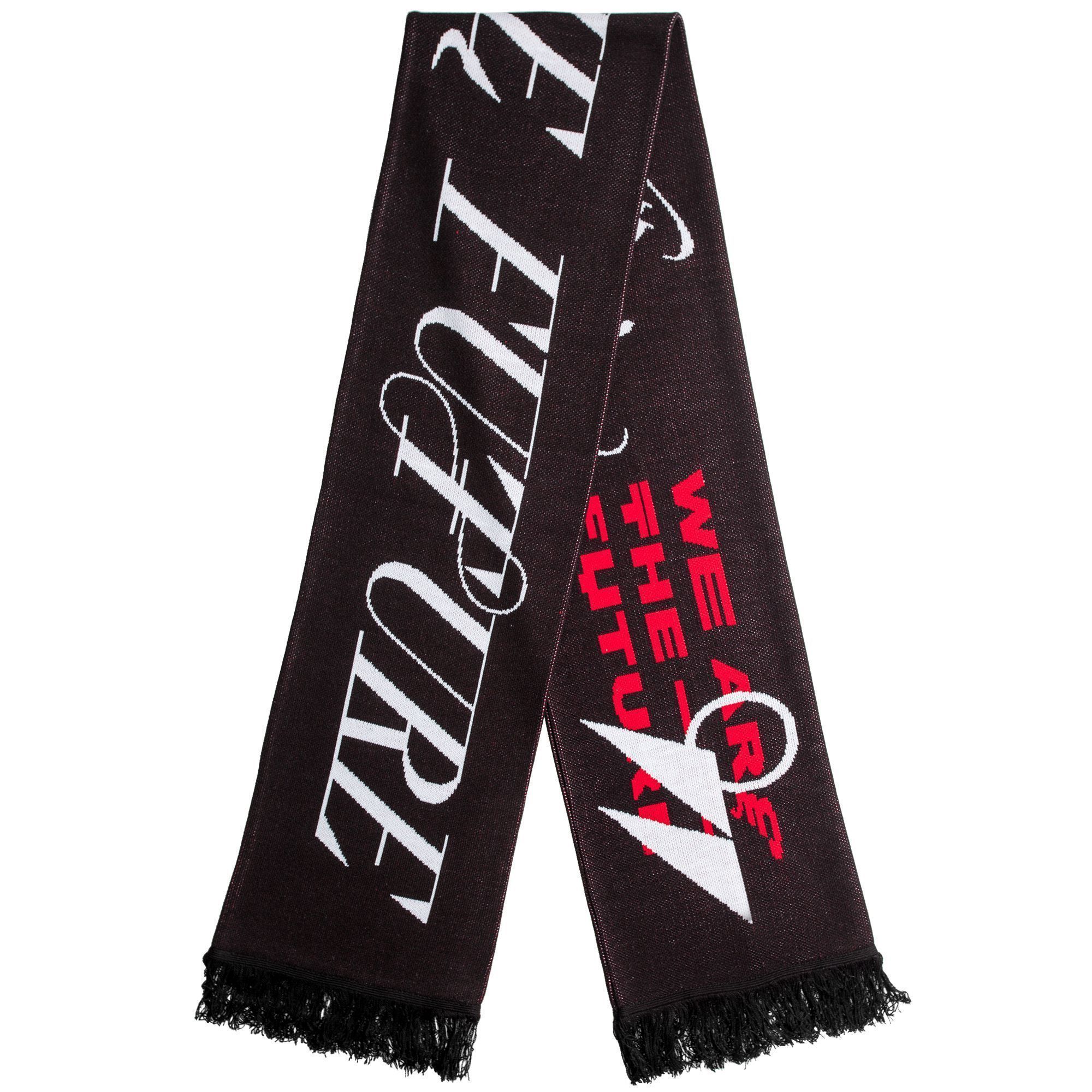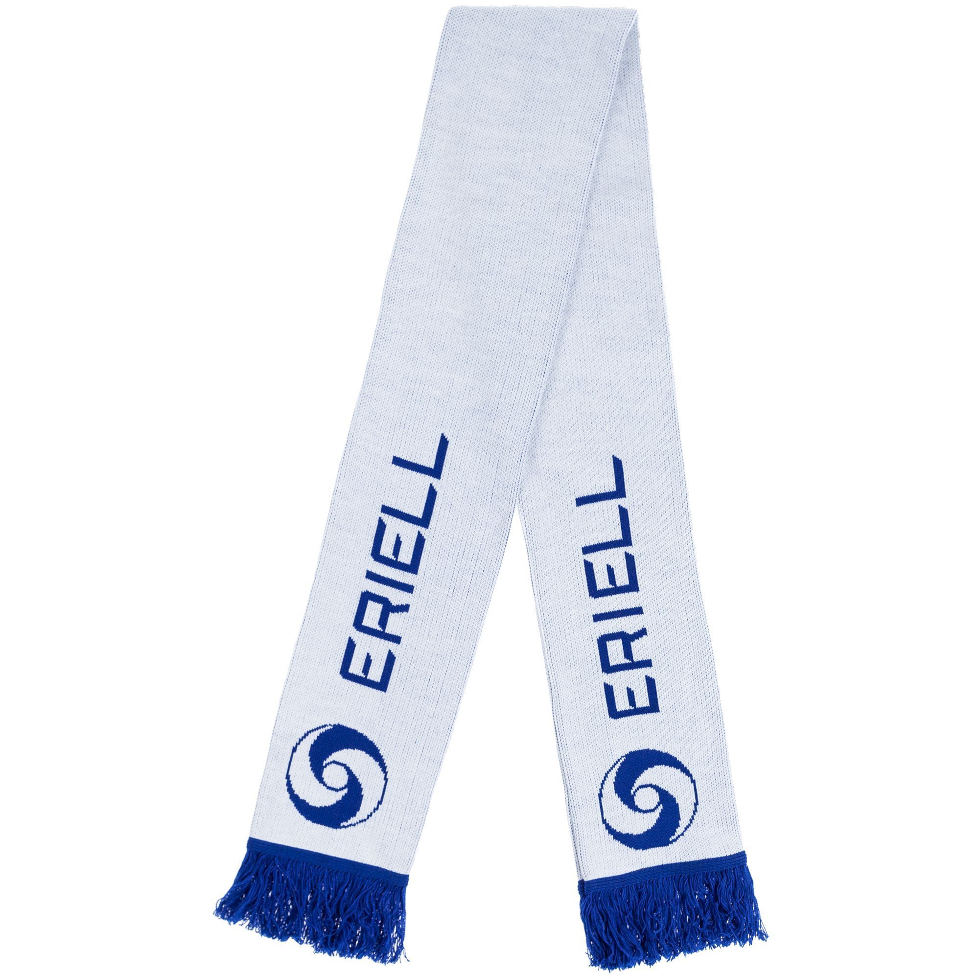 Шарф с вывязанным логотипом и индивидуальным рисунком в фирменной цветовой гамме.
