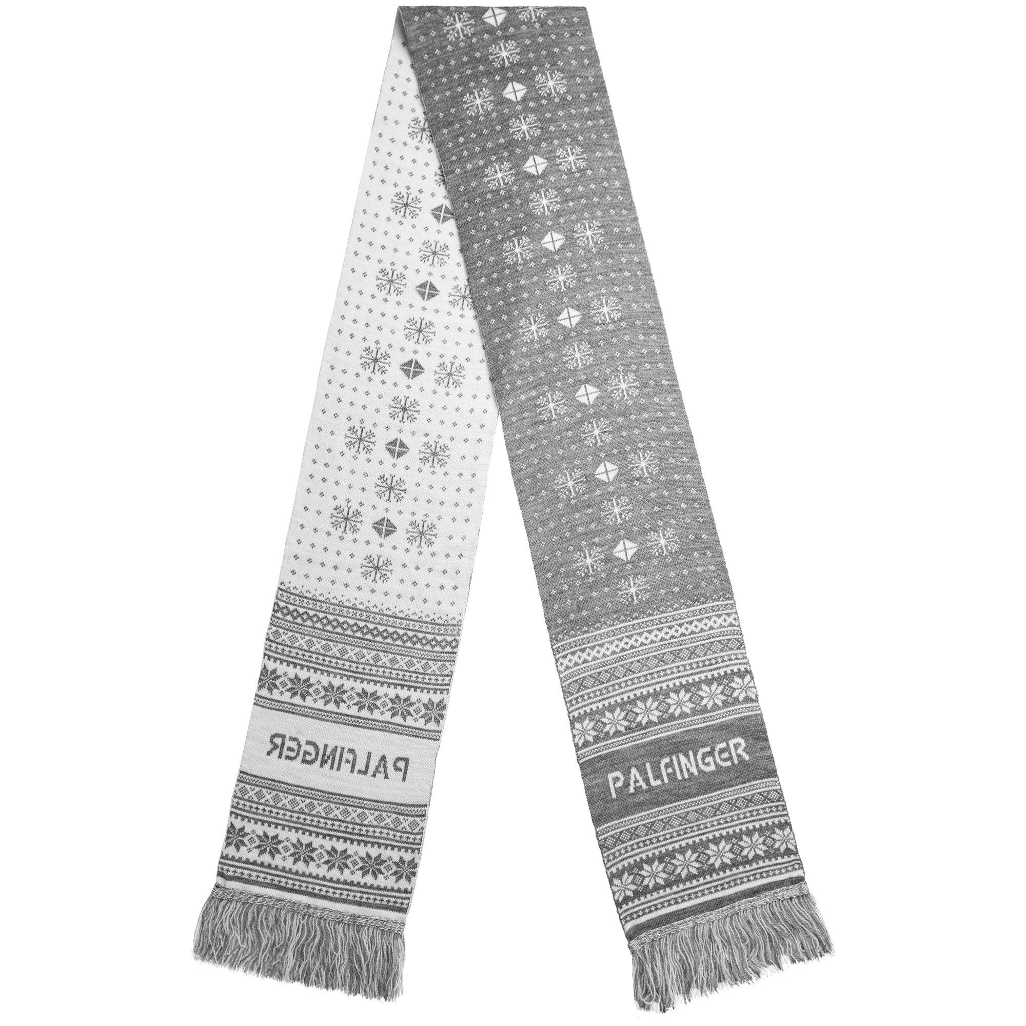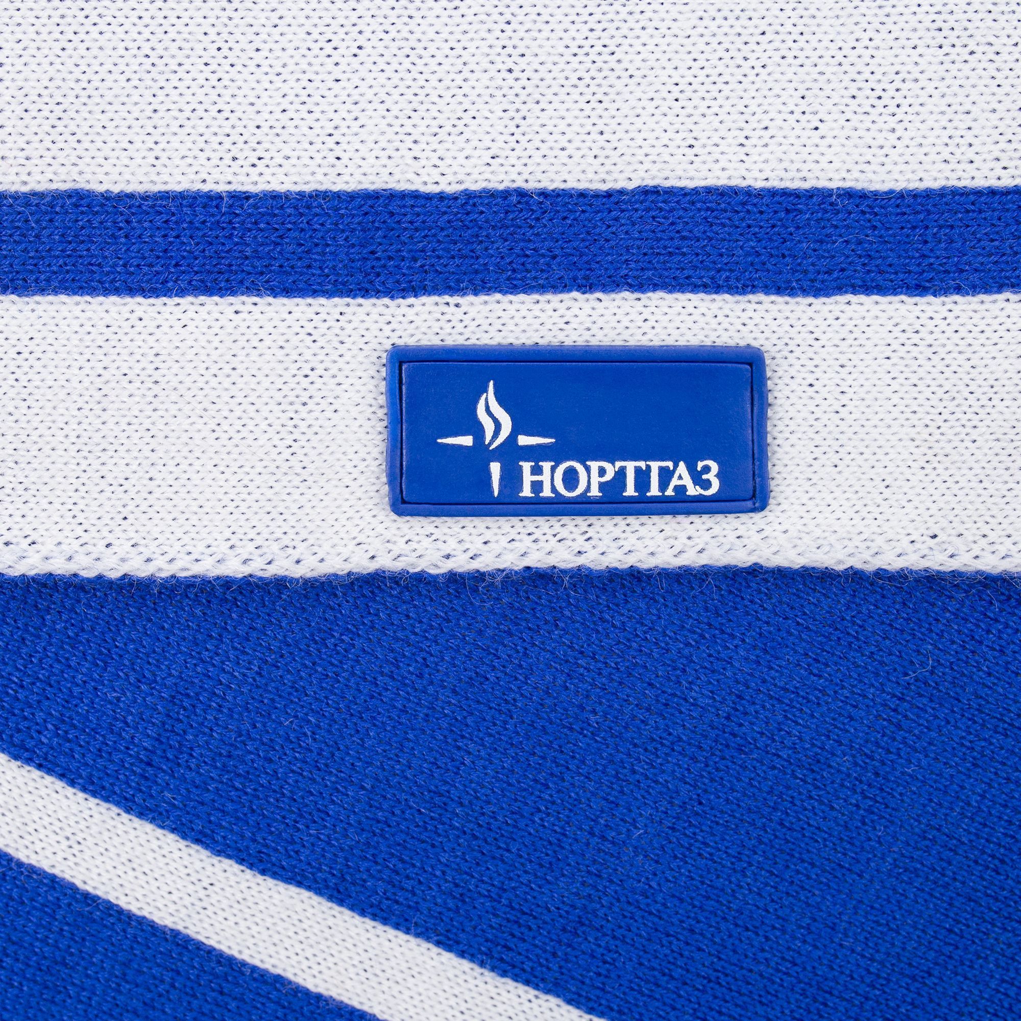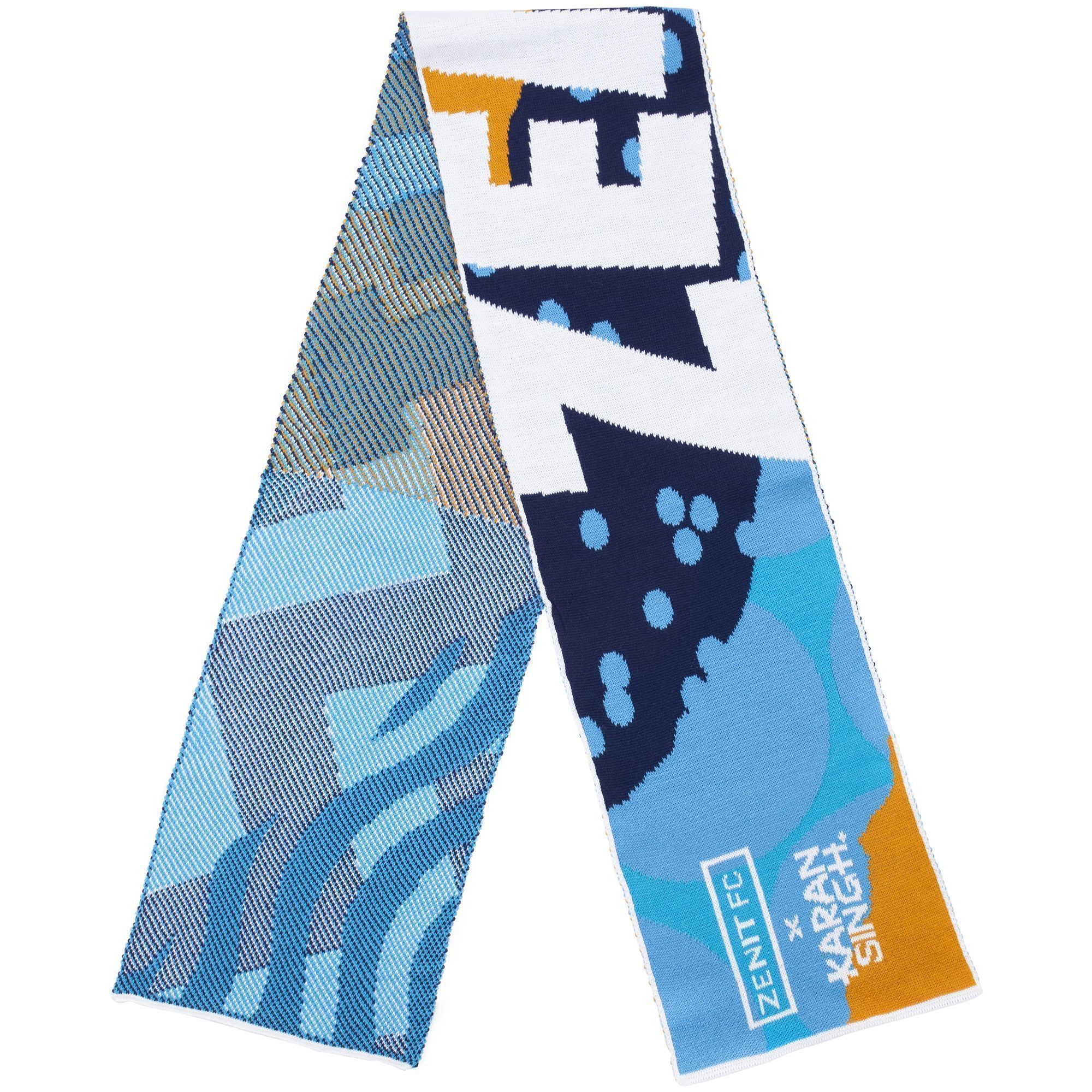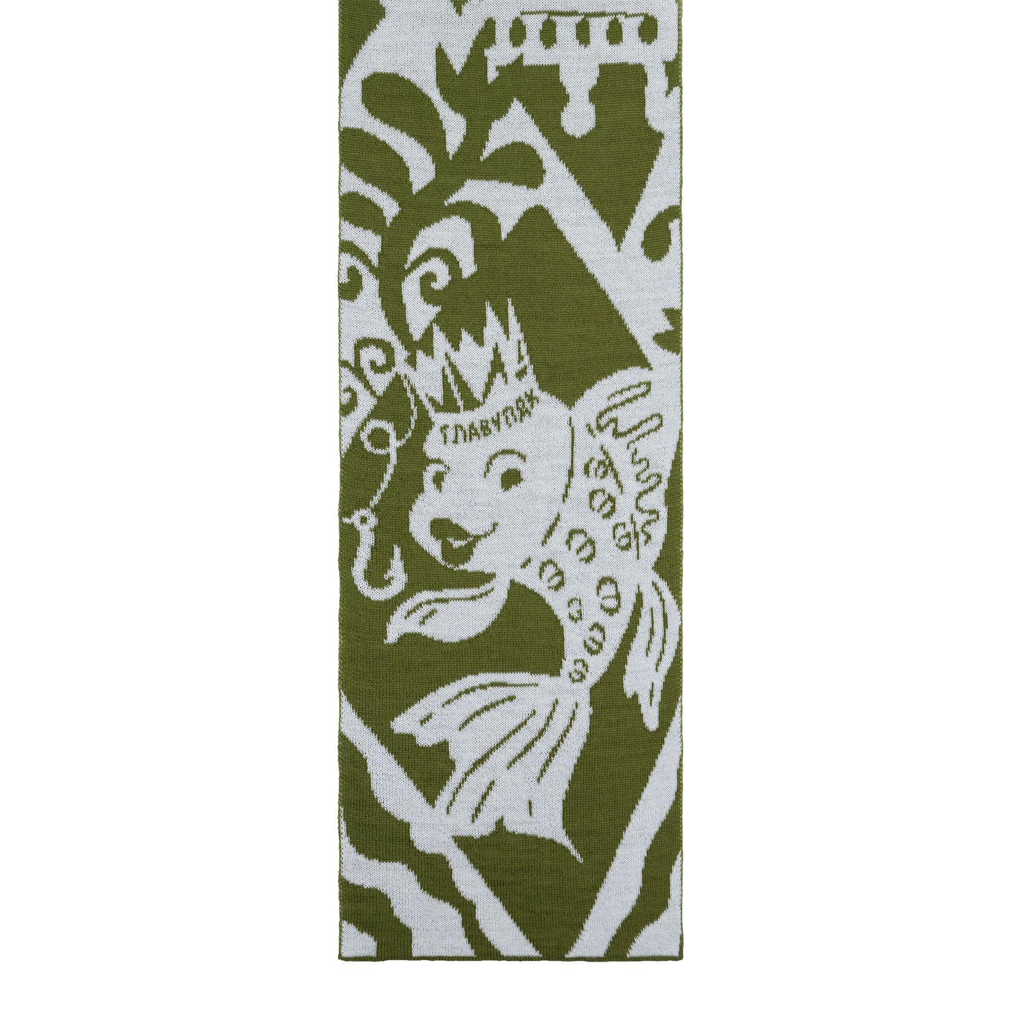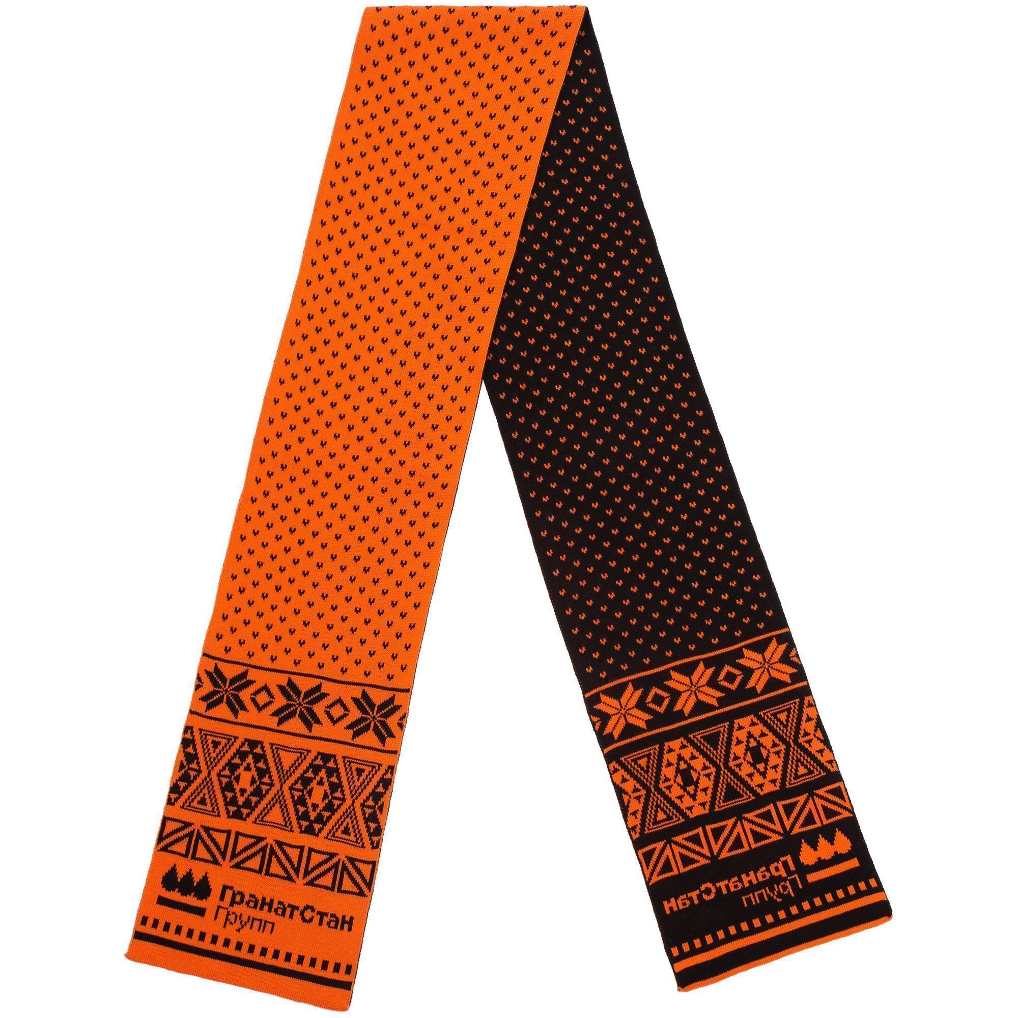 Шарф с вывязанным логотипом и индивидуальным рисунком в фирменной цветовой гамме.