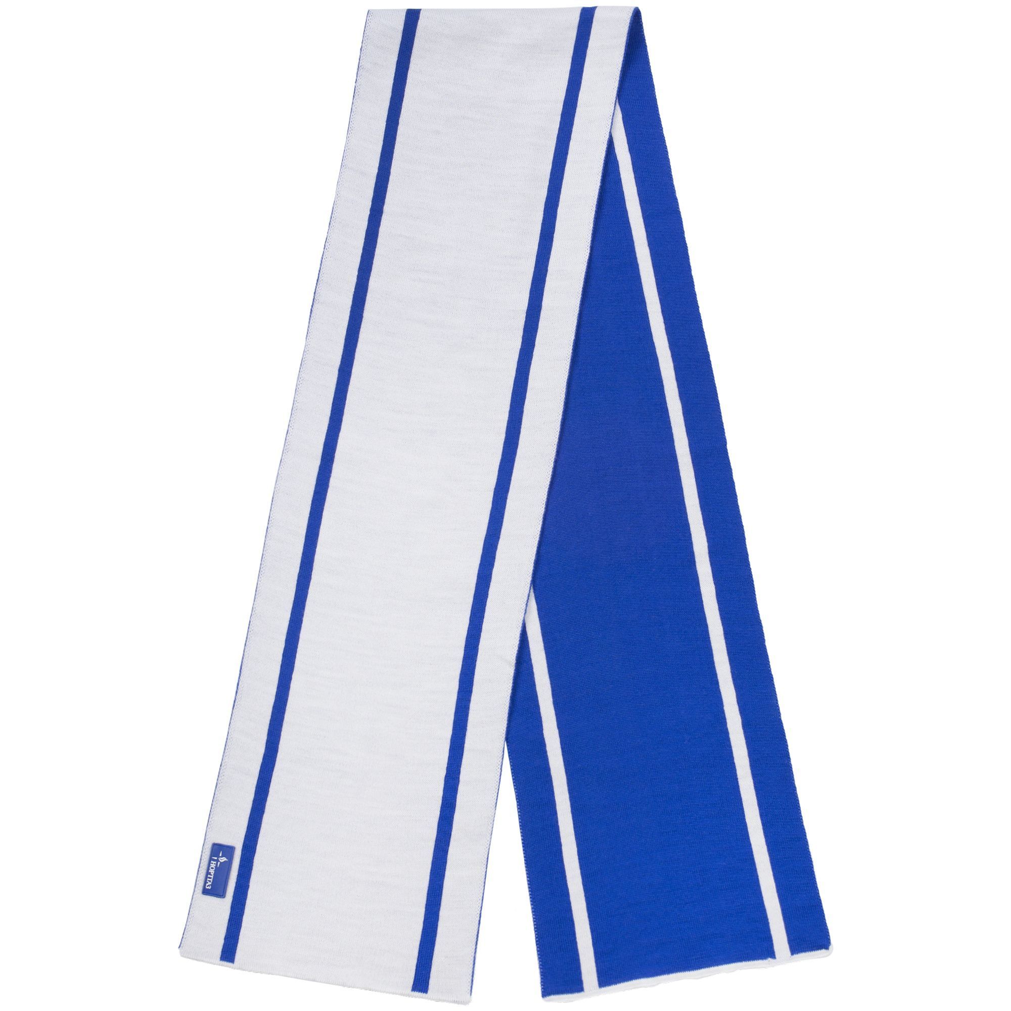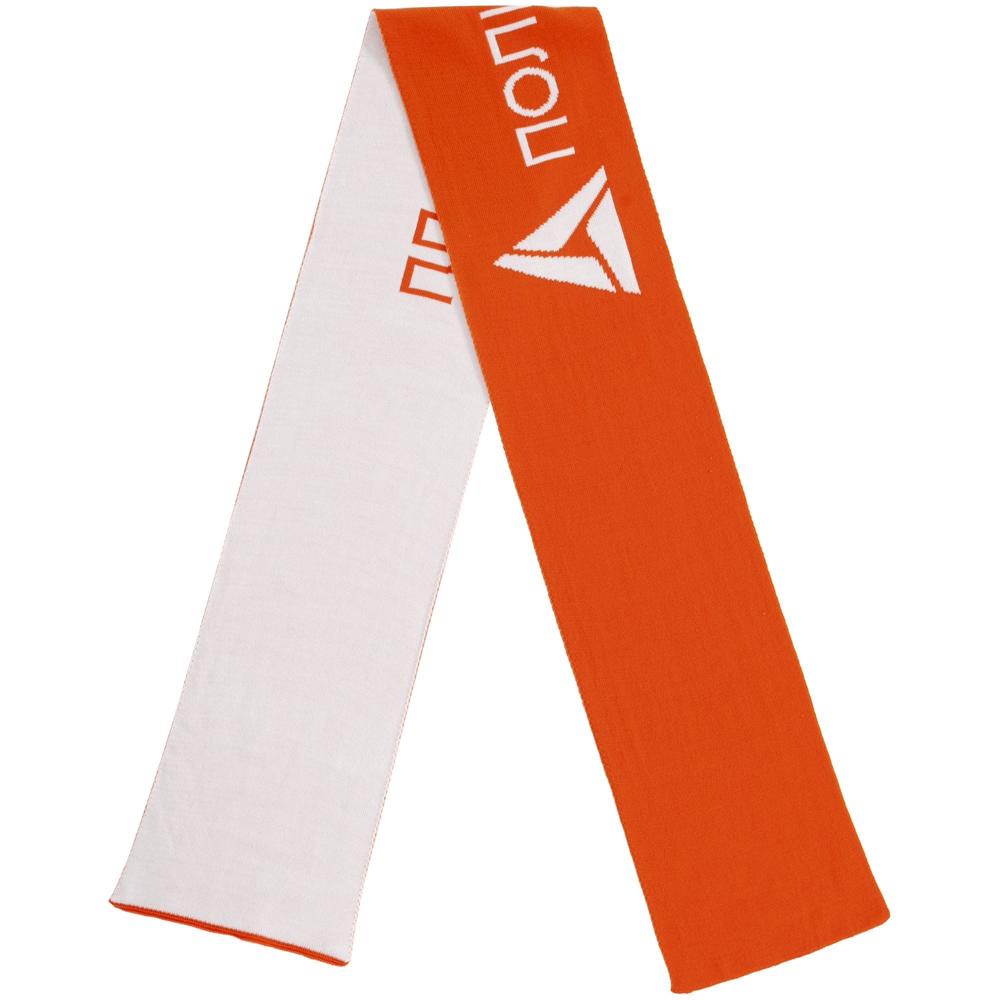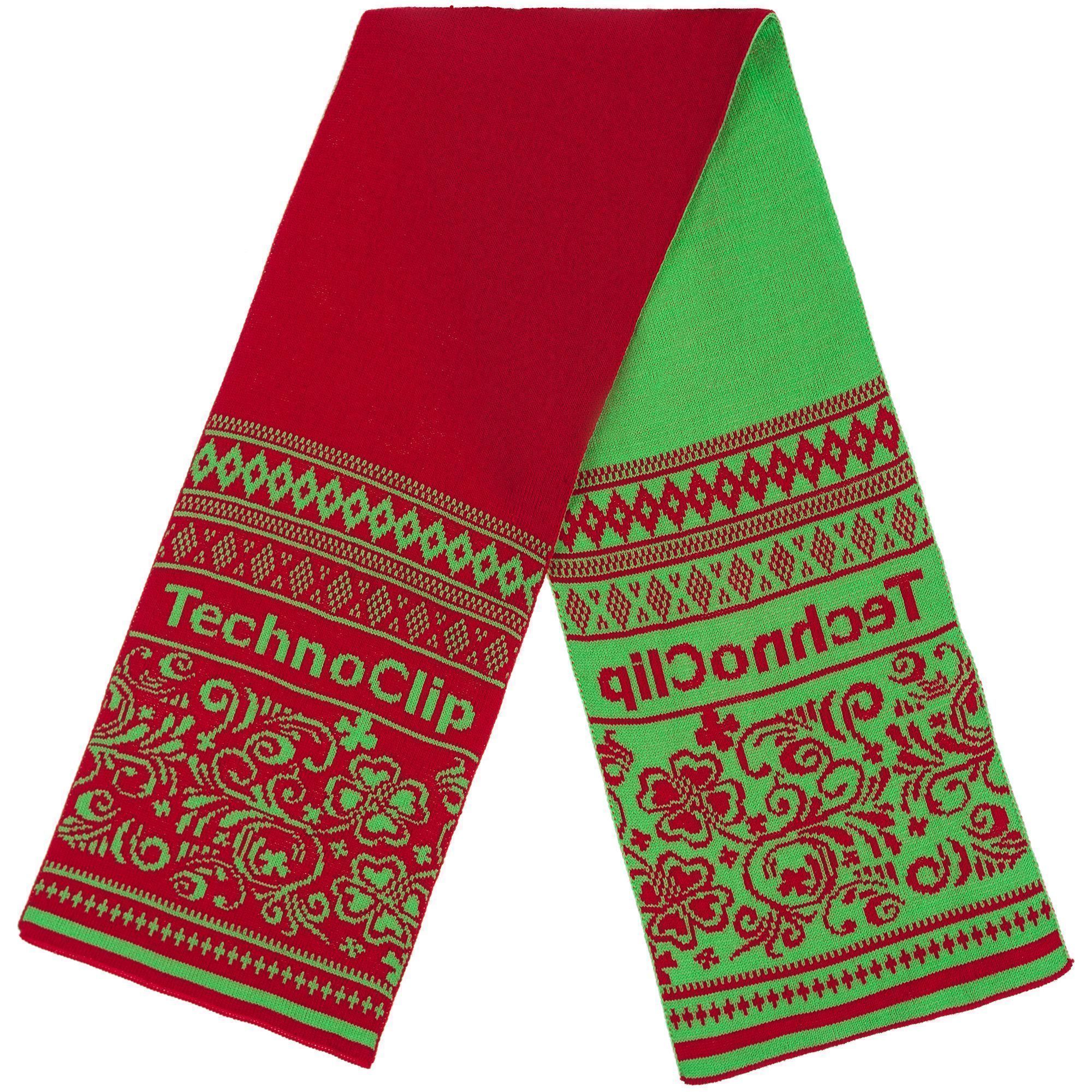 Шарф с вывязанным логотипом и индивидуальным рисунком в фирменной цветовой гамме.