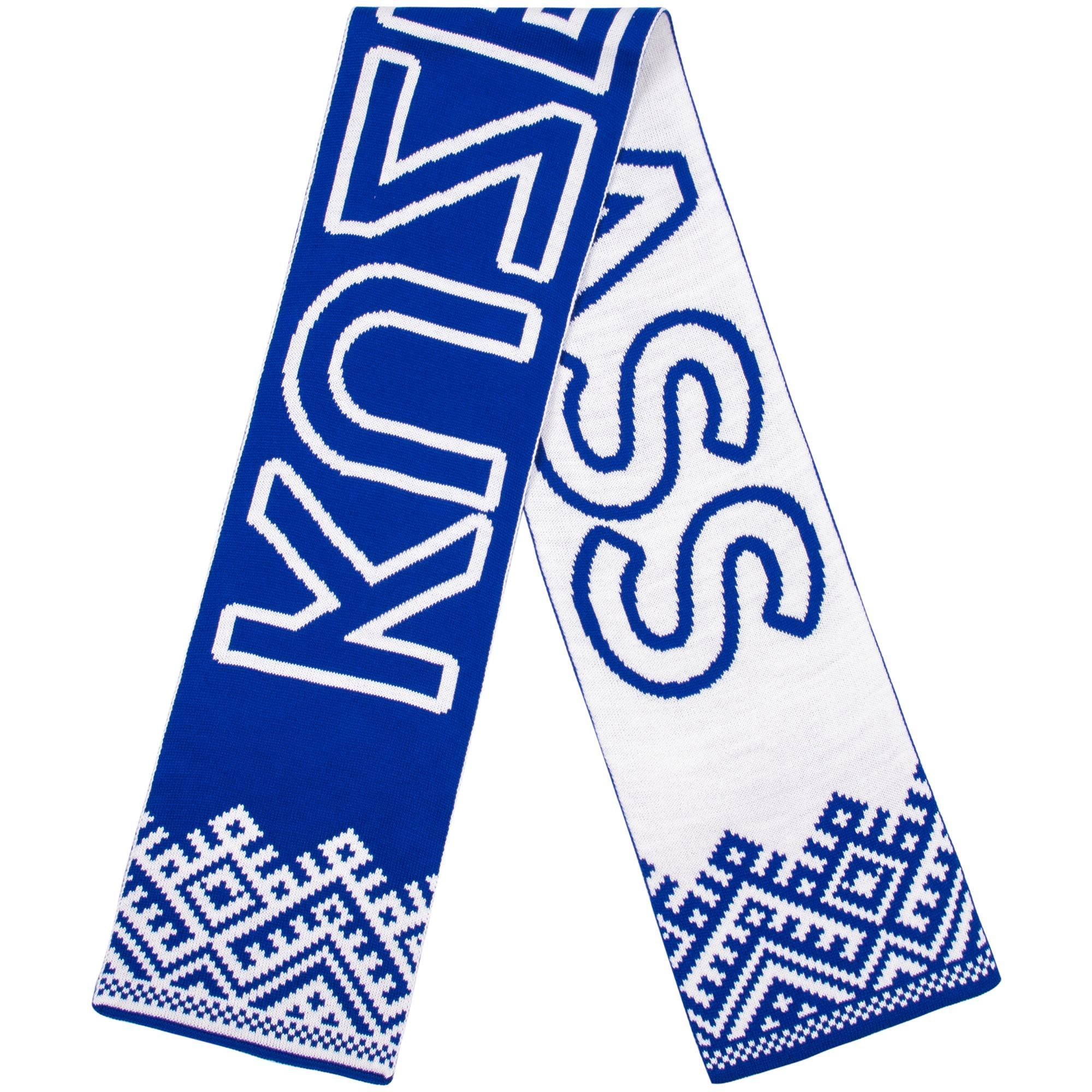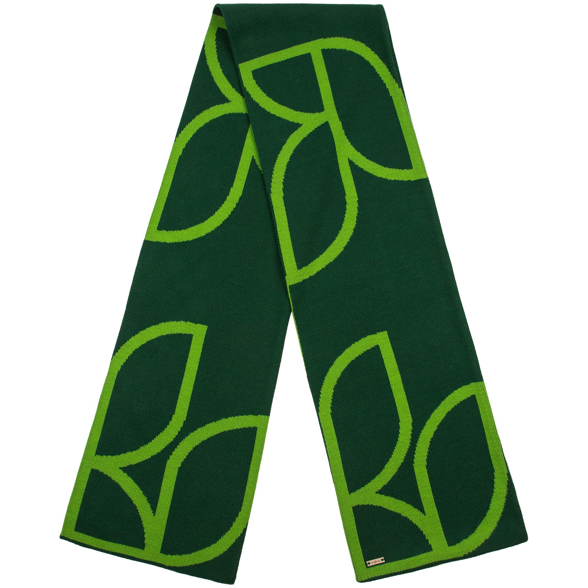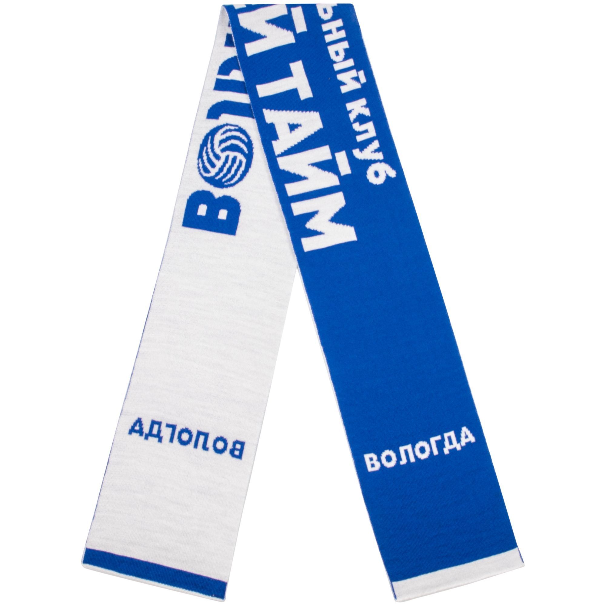 Шарф с вывязанным логотипом и индивидуальным рисунком в фирменной цветовой гамме.