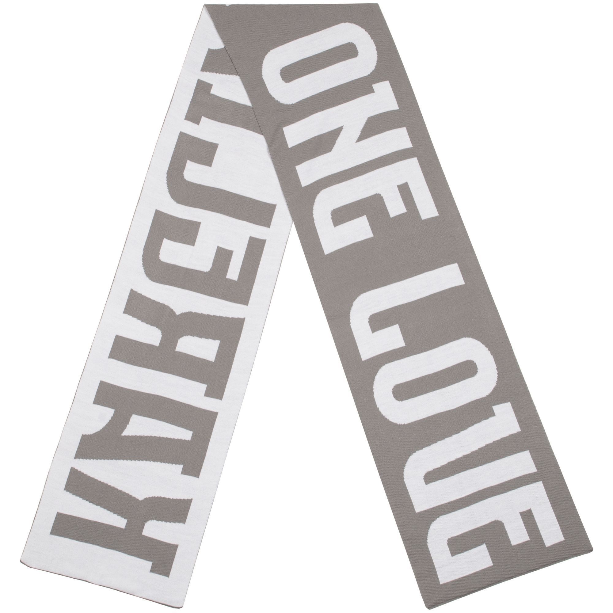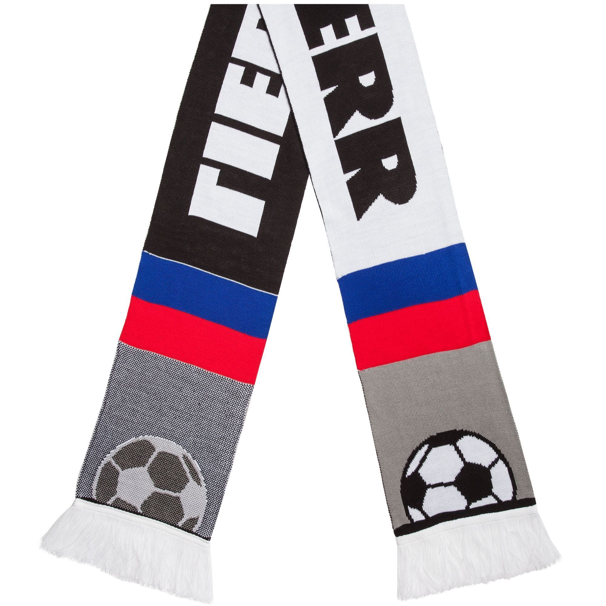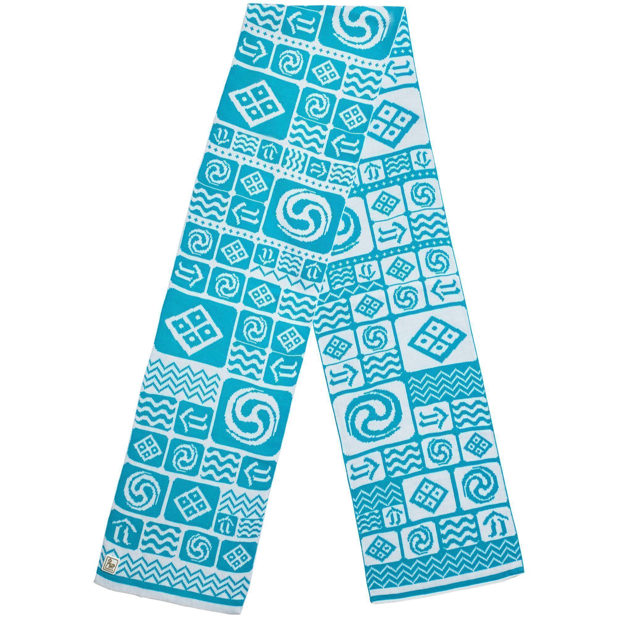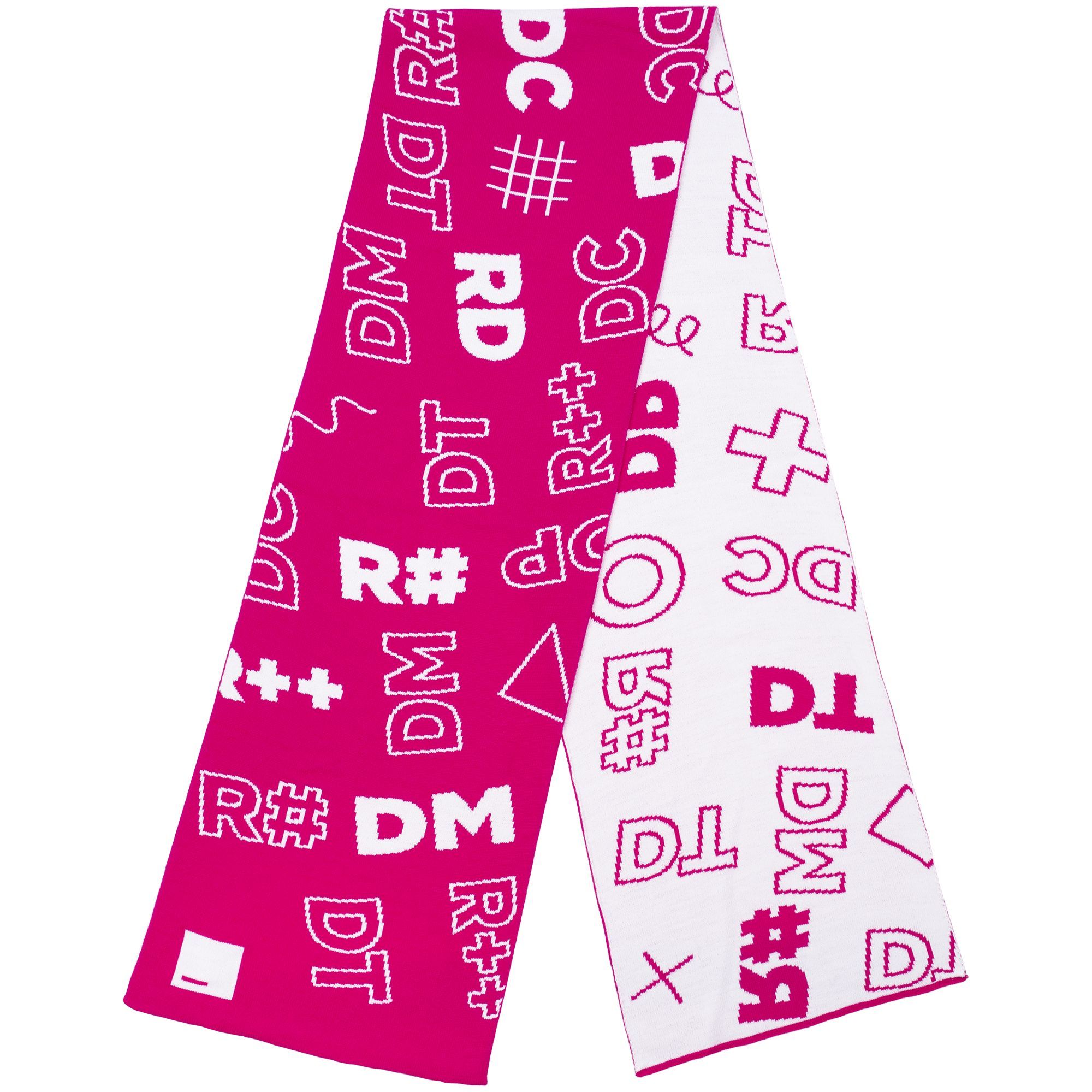 Шарф с вывязанным логотипом и индивидуальным рисунком в фирменной цветовой гамме.