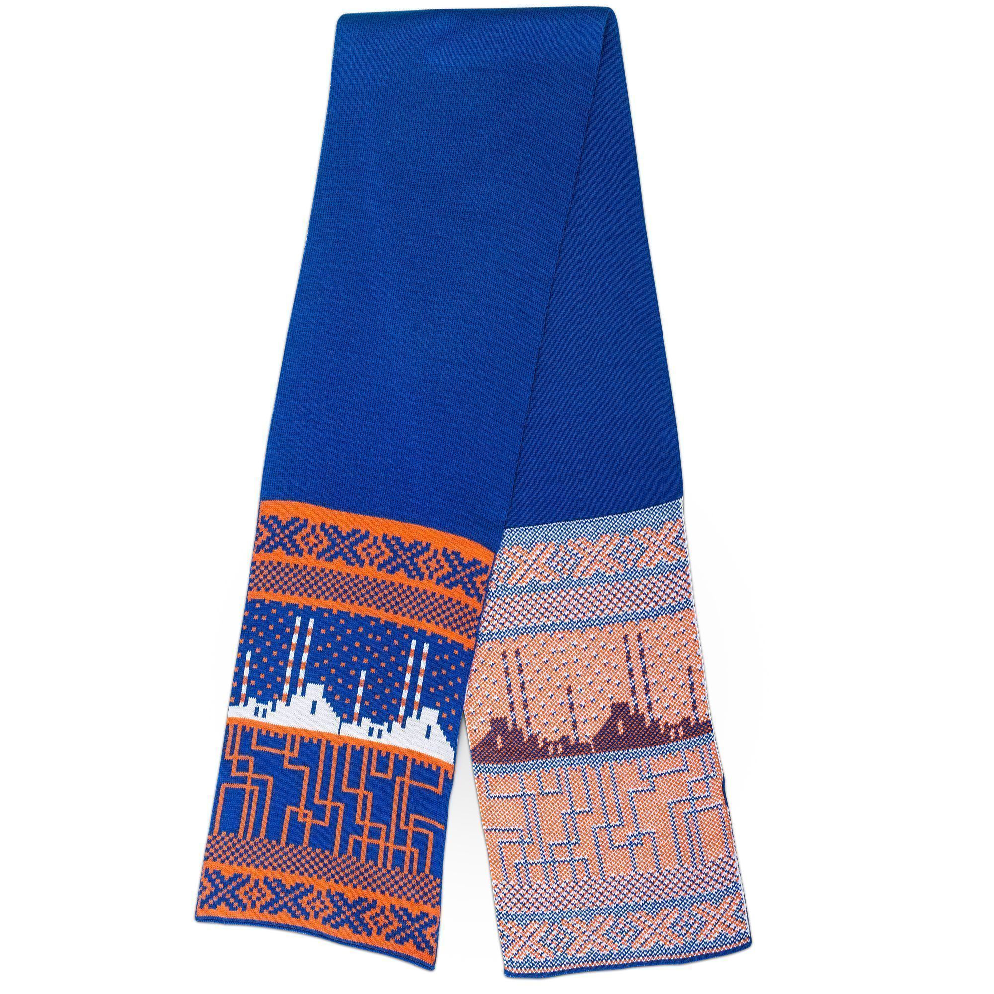 Однотонная середина шарфа тактильно чуть тоньше, чем края шарфа с жаккардовым узором.