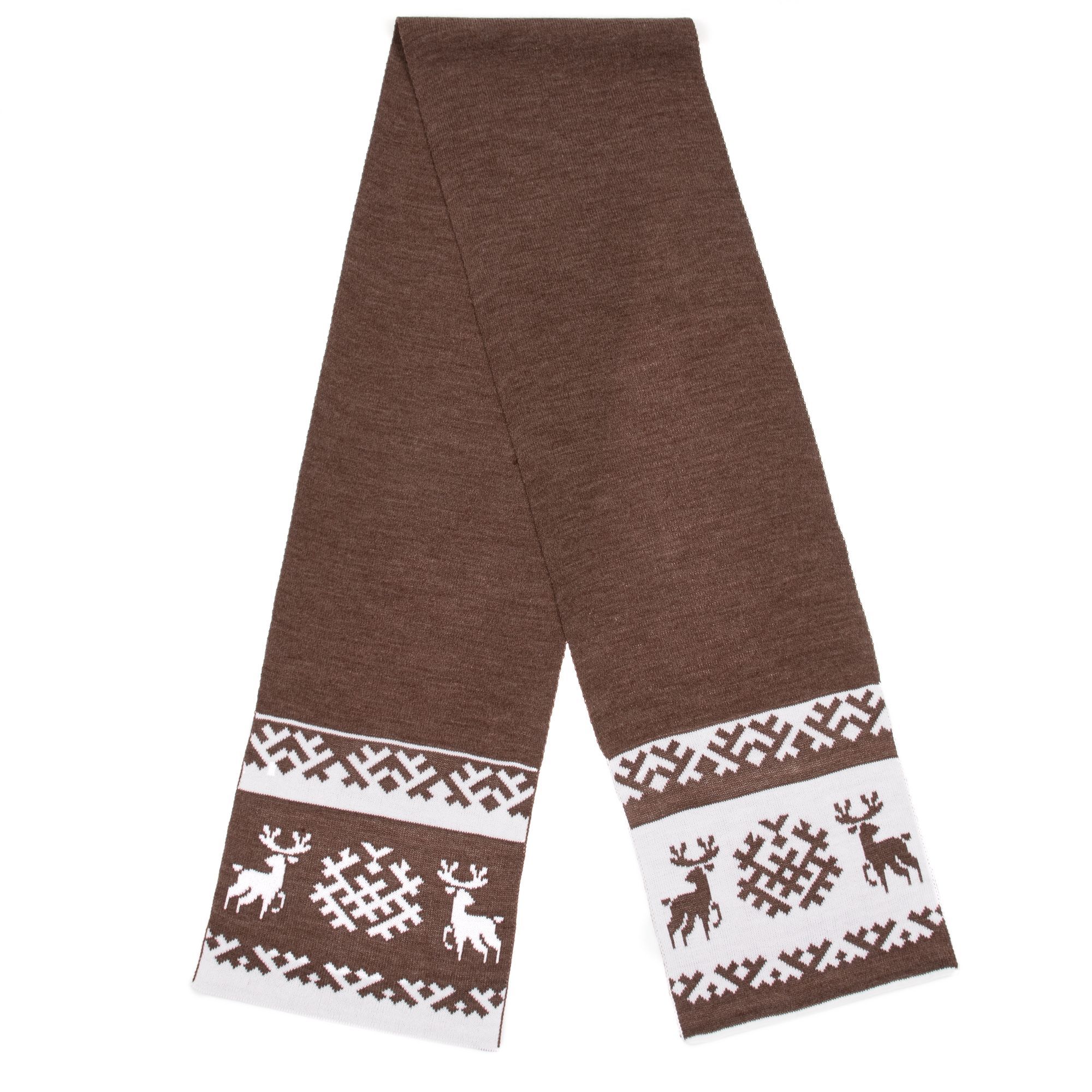 Модель: однотонный гладкий шарф с жаккардовым узором в 2-3 цвета по краям (длина узора 15-25 см).