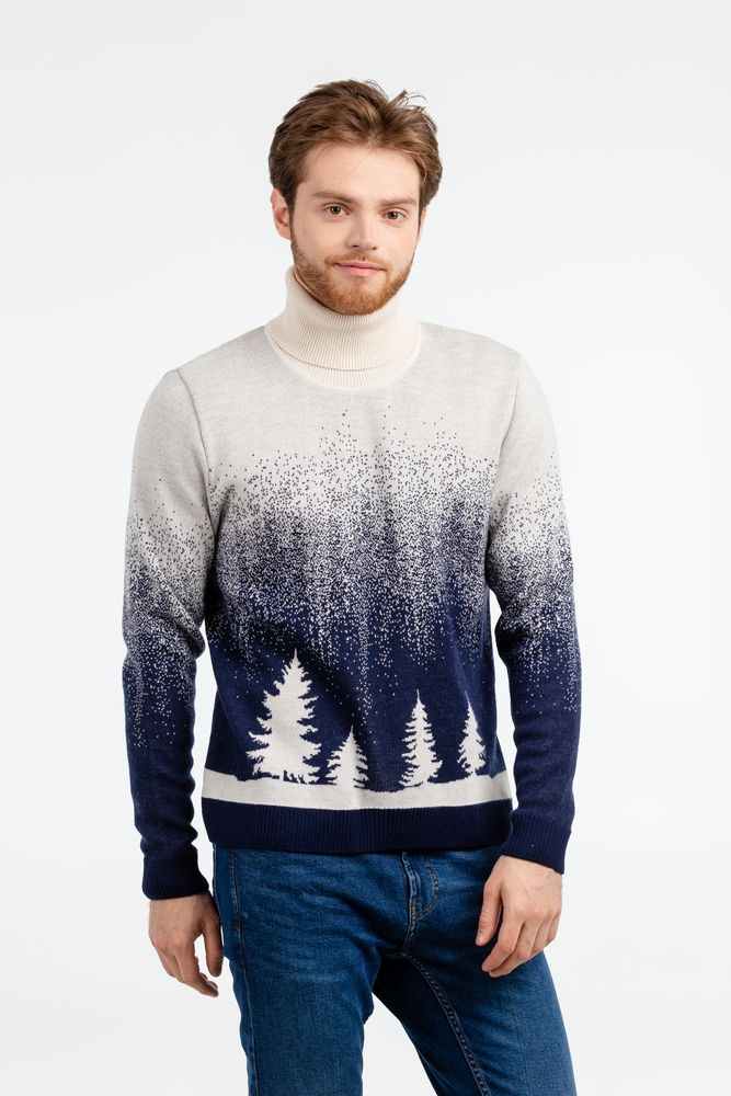 Модель: свитер жаккардовой вязки, плотный и теплый, 2–3 цвета нитей, гладкая поверхность.
