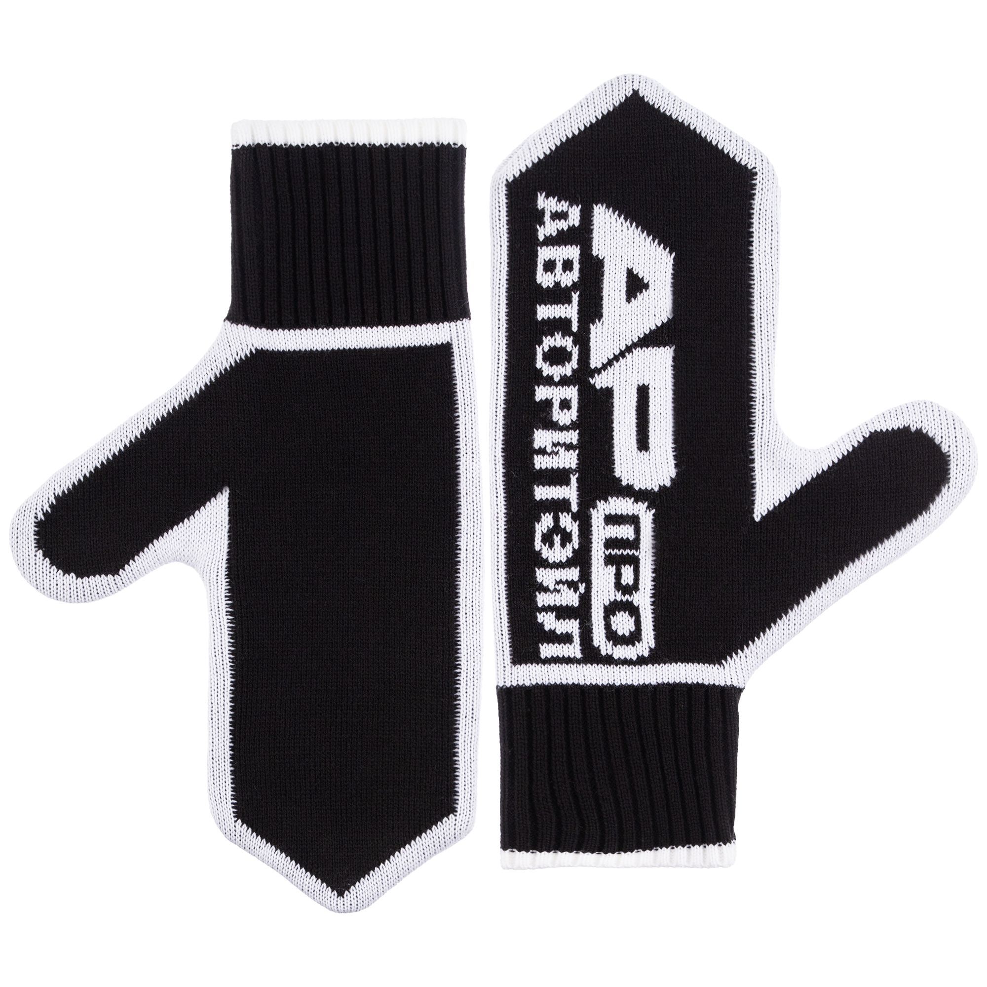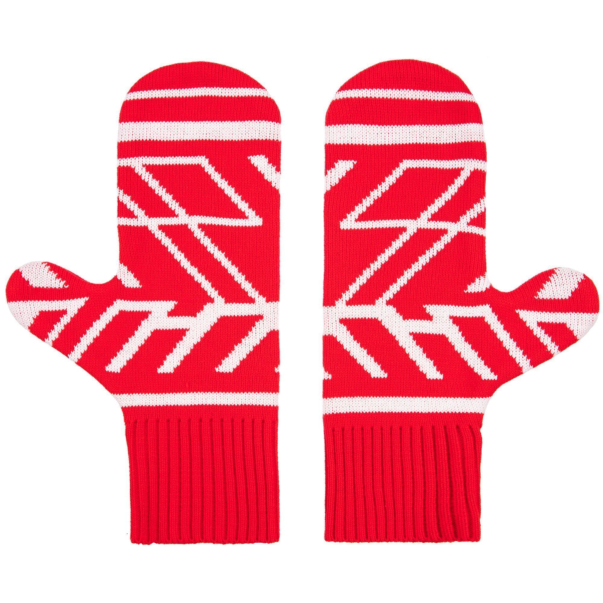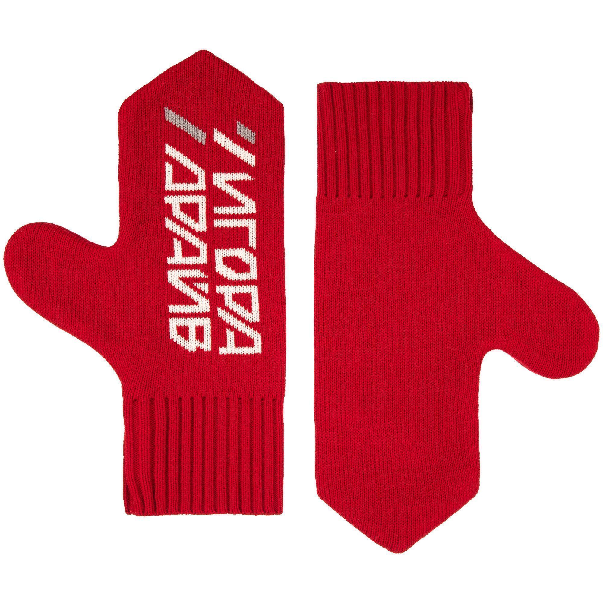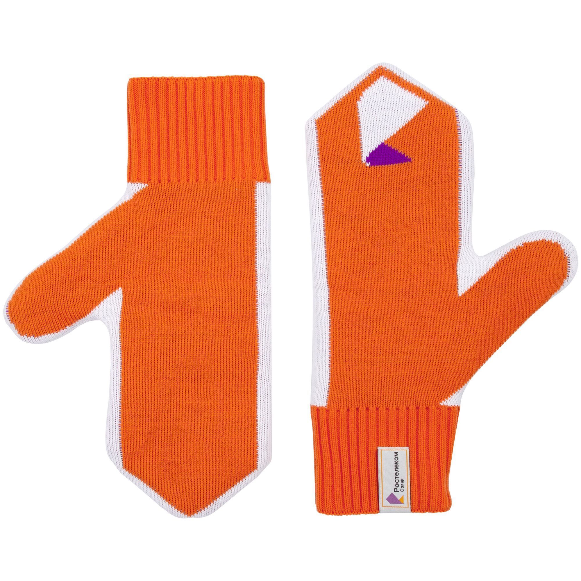 Варежки с вывязанным логотипом и индивидуальным рисунком в фирменной цветовой гамме.
