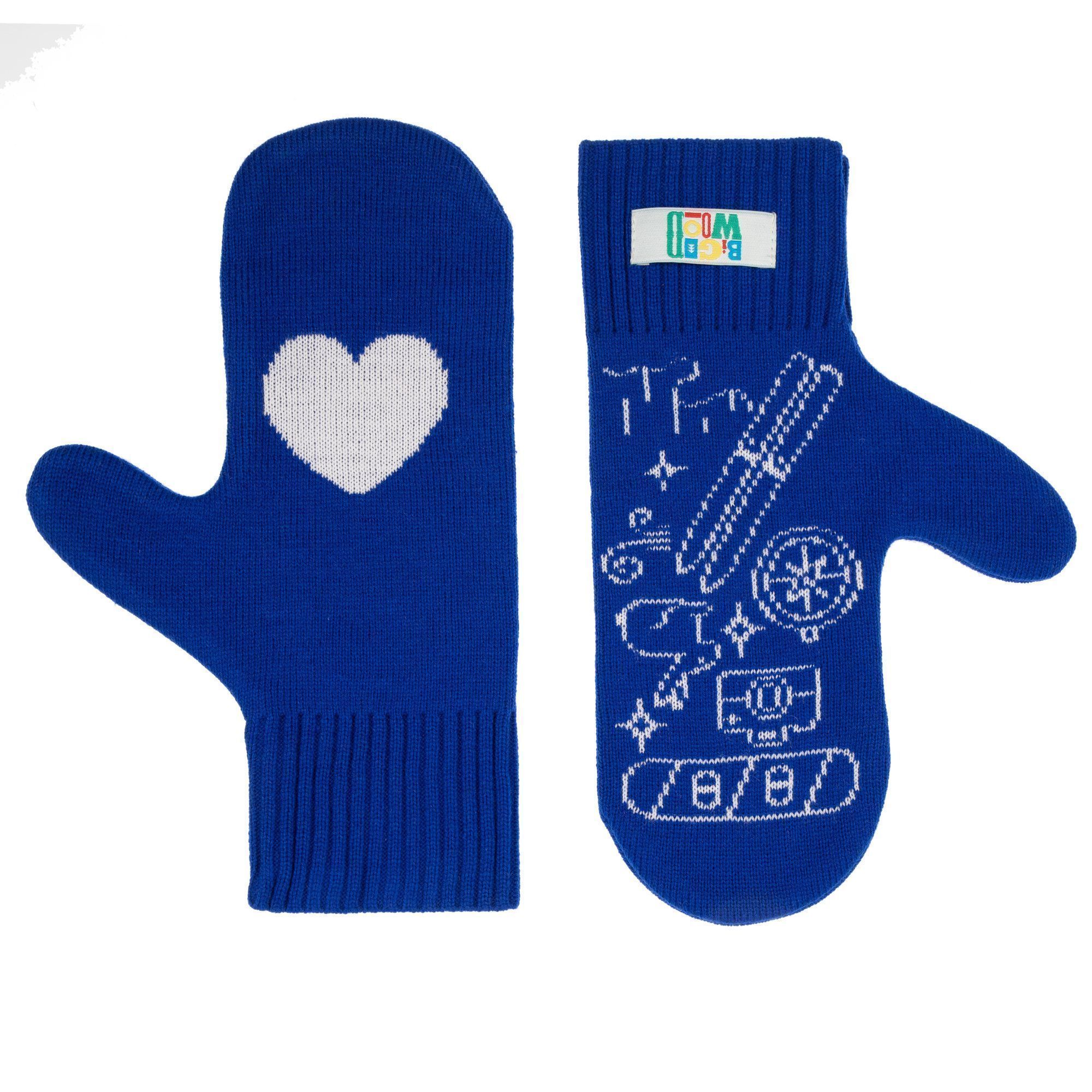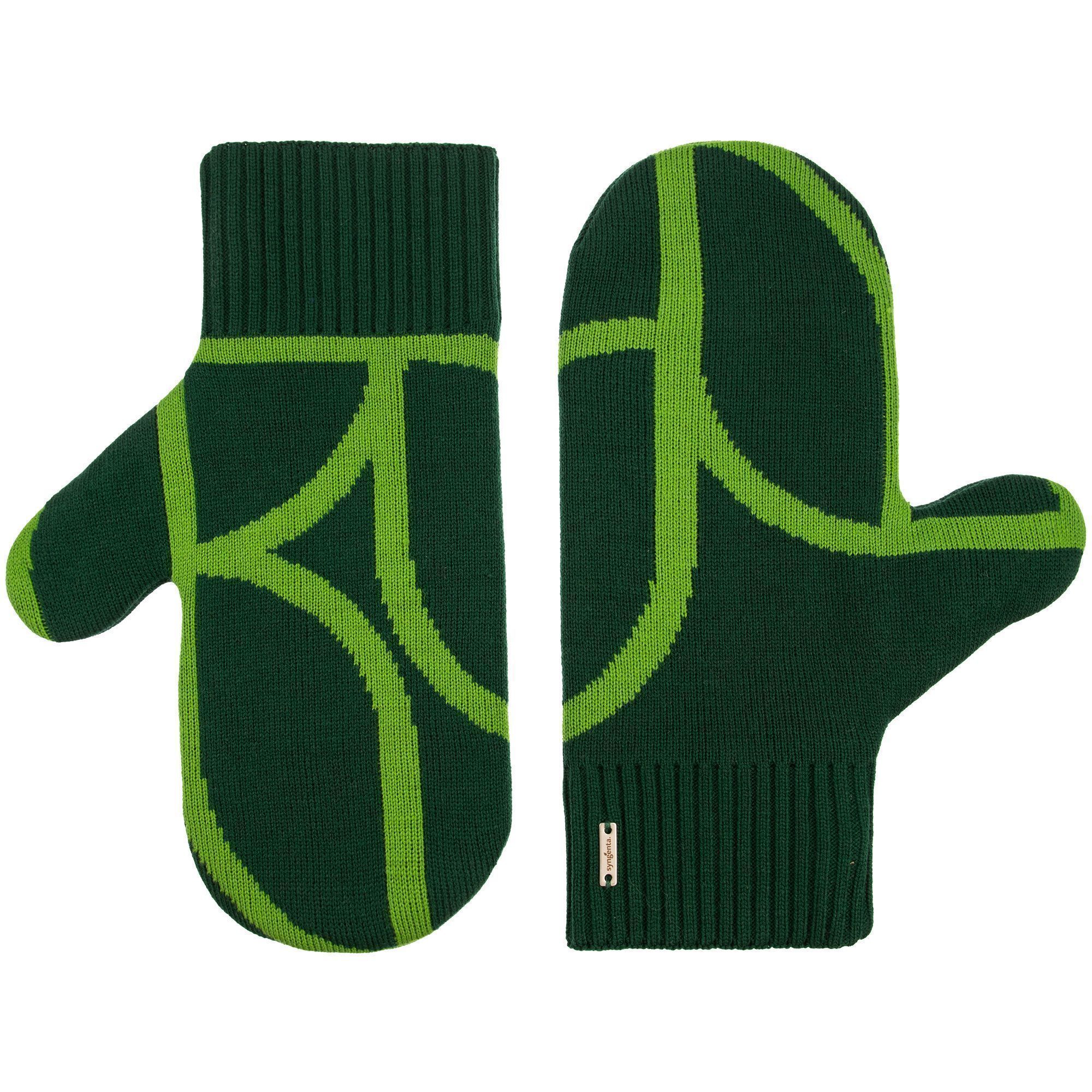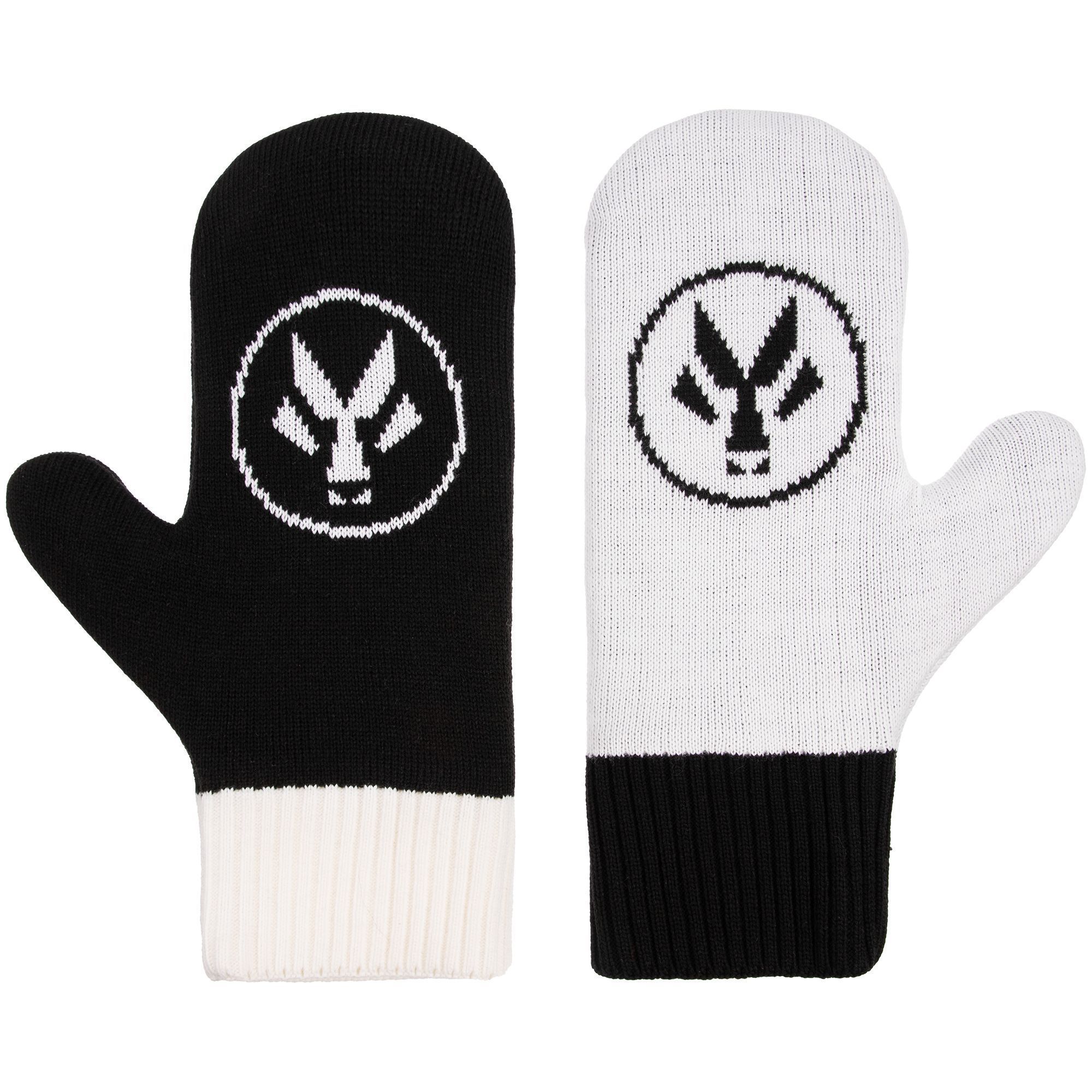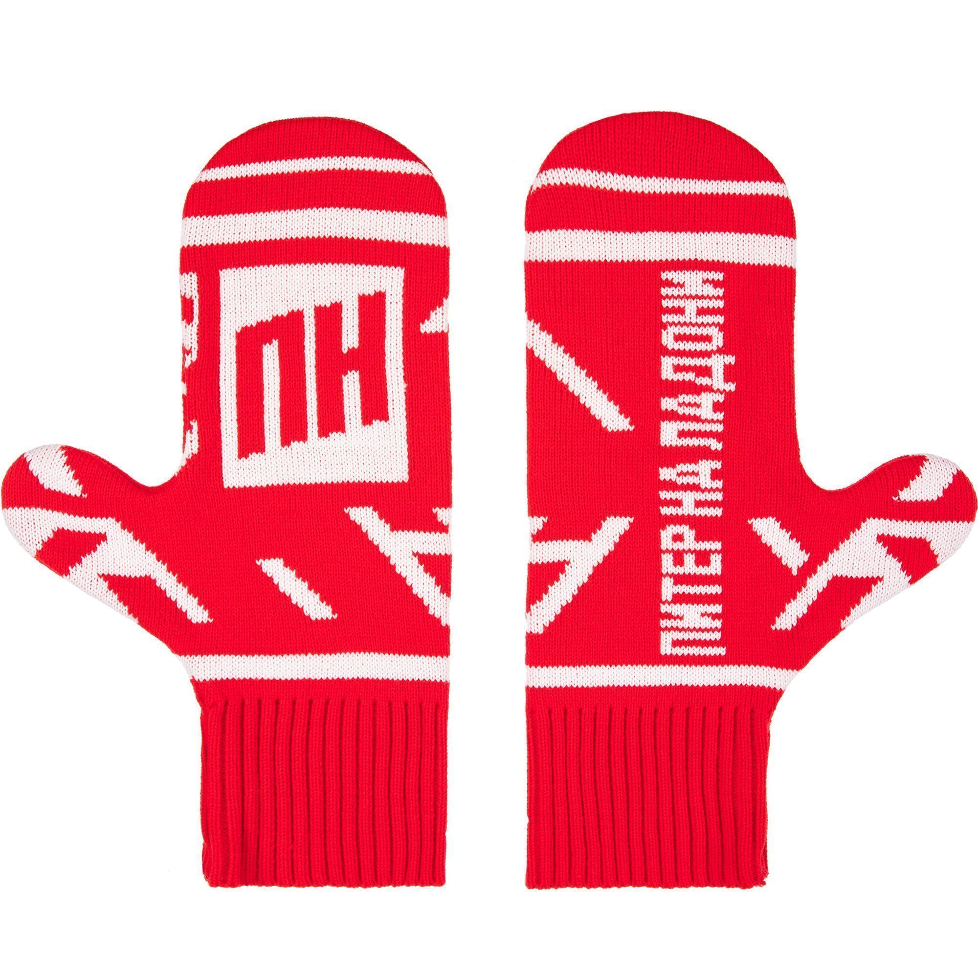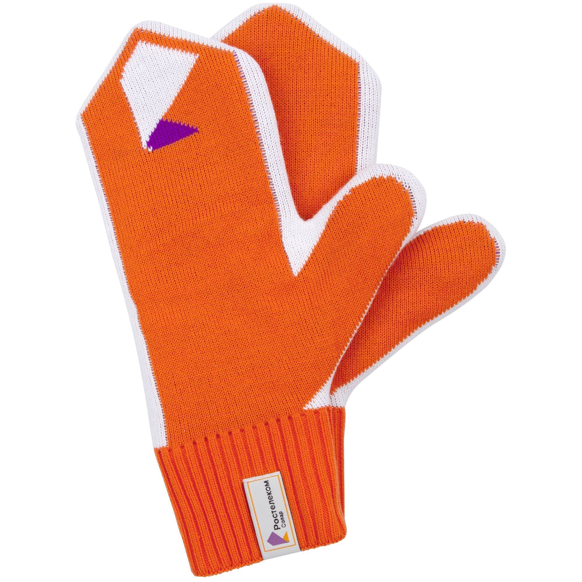 Варежки с вывязанным логотипом и индивидуальным рисунком в фирменной цветовой гамме.