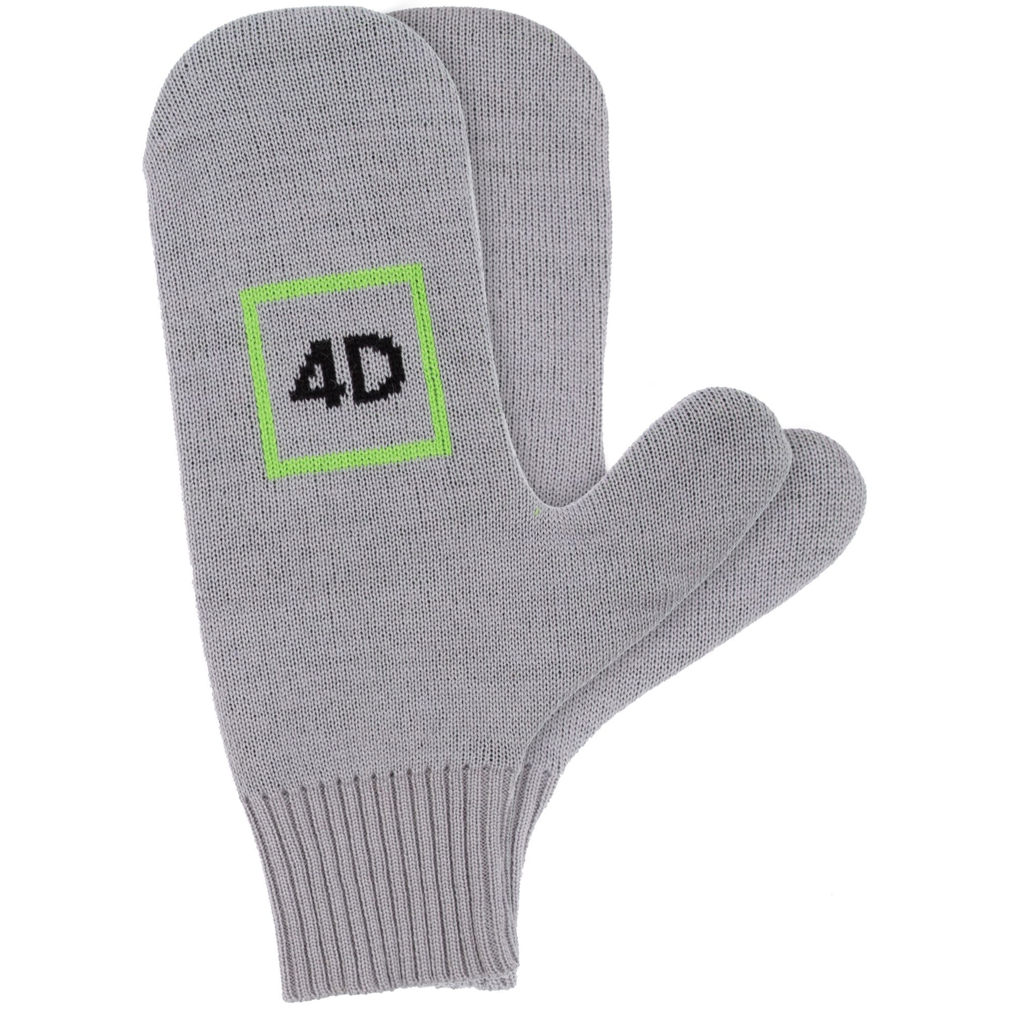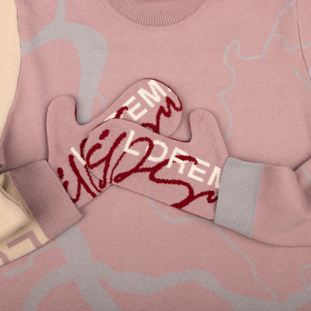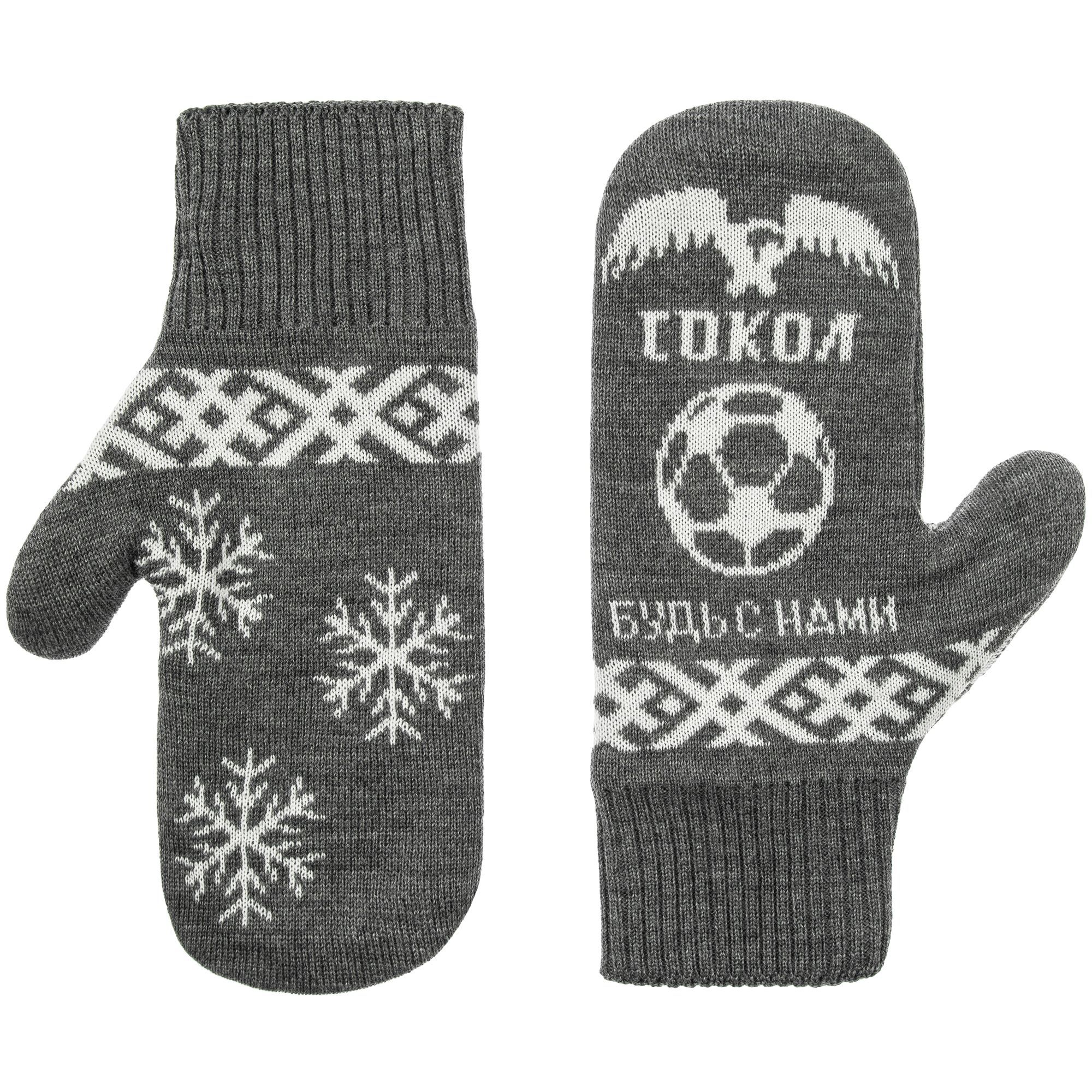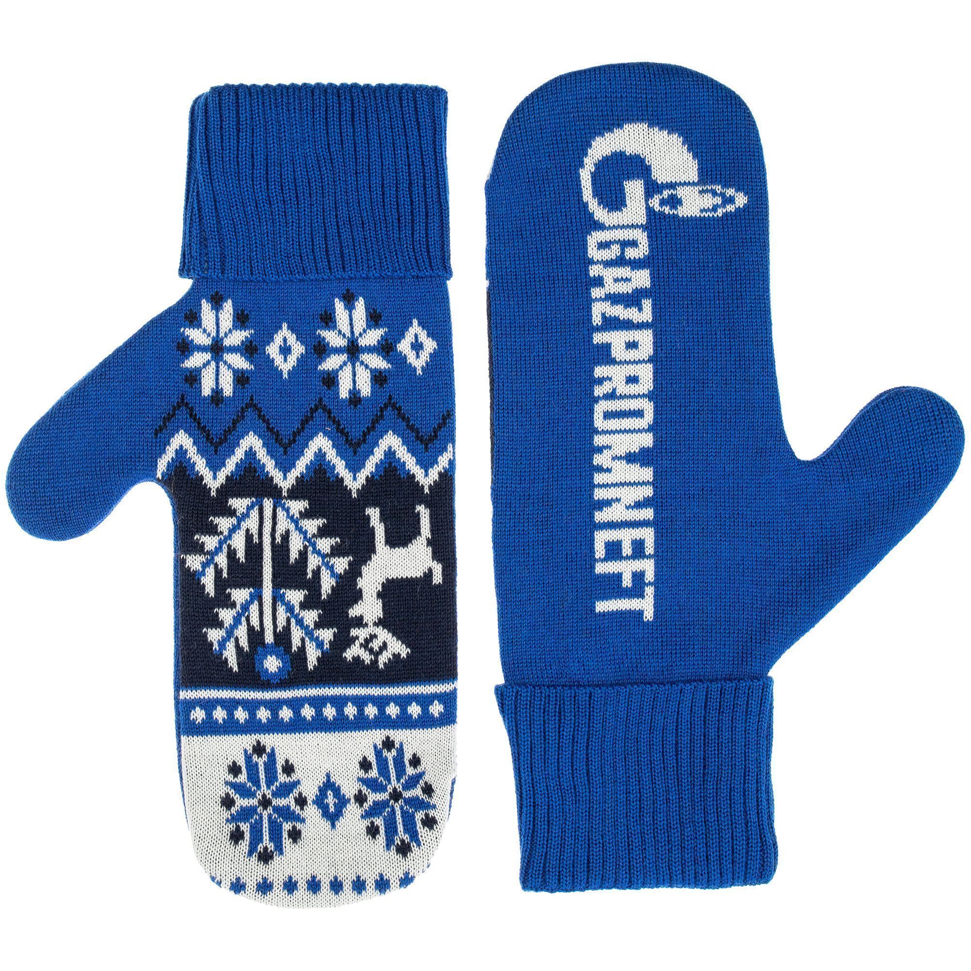 Варежки с вывязанным логотипом и индивидуальным рисунком в фирменной цветовой гамме.