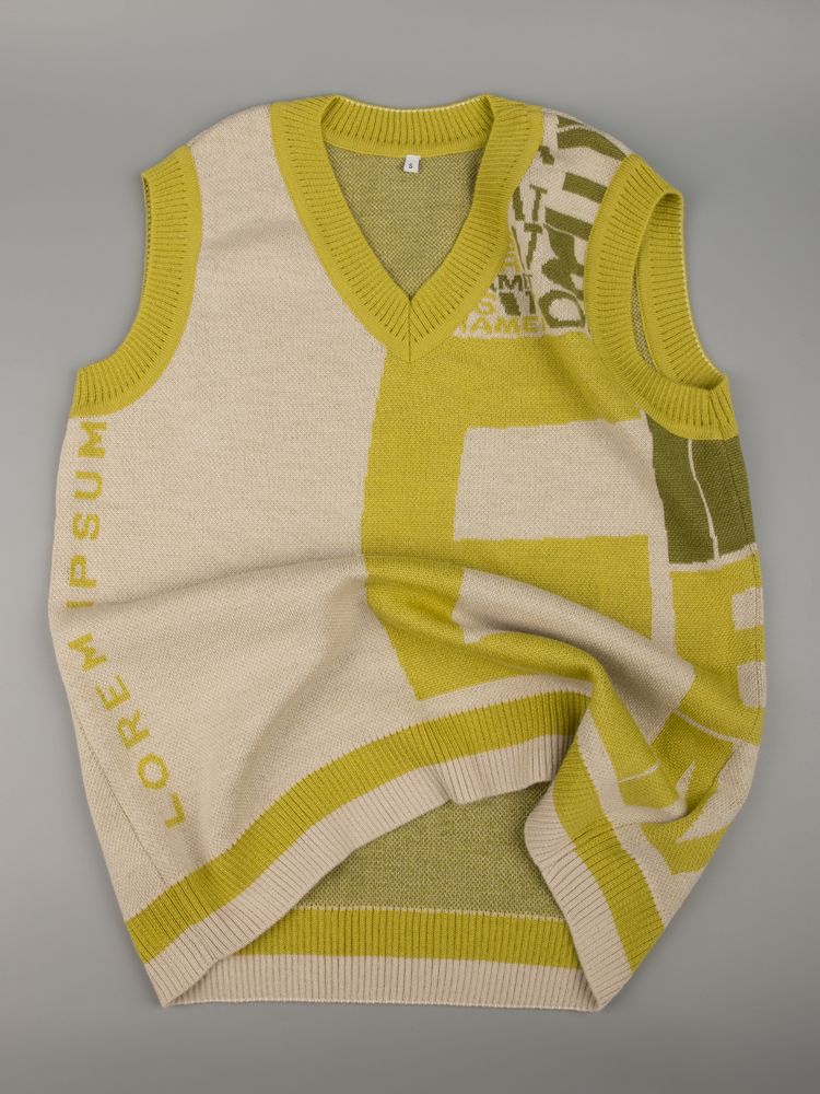 Жилет с вывязанным логотипом и индивидуальным рисунком в фирменной цветовой гамме.
