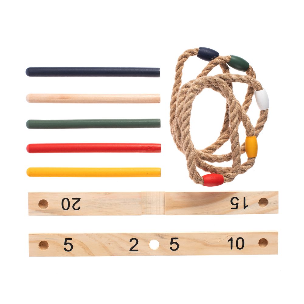 Задача игры очень простая — накинуть кольца на колышки. Можно выбрать простые правила: кто закинет больше колец, тот и победил. Но можно и усложнить, например, считать очки по цифрам рядом с колышками или ввести правило удвоения, если цвет колышка и метки на кольце совпадают.