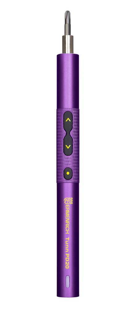 Электрическая отвертка в металлическом корпусе с магнитным патроном. Работает от аккумулятора емкостью 350 мАч, который полностью заряжается через кабель USB примерно за 70 минут. На корпусе есть светодиодный индикатор зарядки. Отвертка комплектуется 24 битами, подходящими для ремонта смартфонов, планшетов, ноутбуков и ПК, включая iPhone, iPad, MacBook Air и MacBook Pro, а также игровых консолей и контроллеров от Nintendo, PlayStation или XBox.